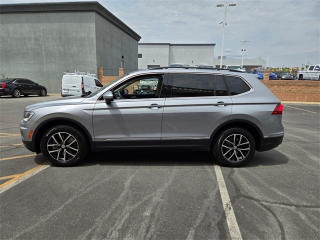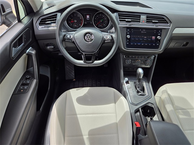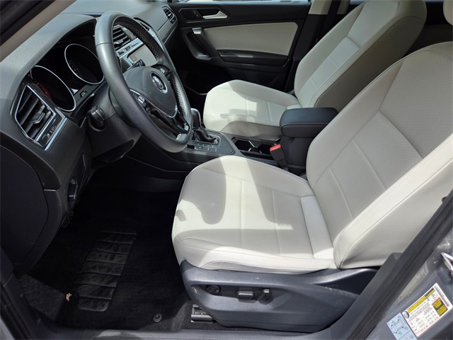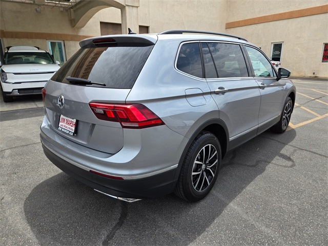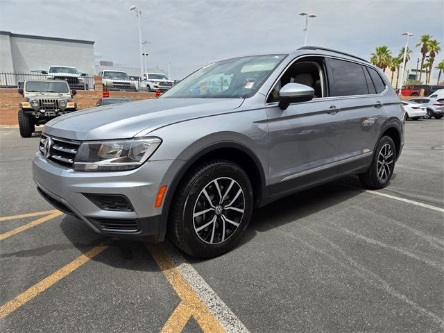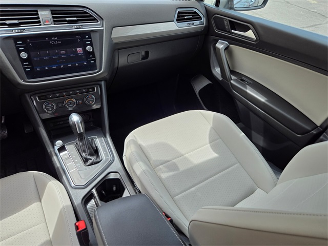Priced below KBB Fair Purchase Price!Odometer is 21567 miles below market average!23/29 City/Highway MPGSilver 2021 Volkswagen Tiguan 2.0T SE FWD 8-Speed Automatic with Tiptronic 2.0L TSI DOHCIf you don't drive here, you can't save here!Price may not include recon fee. 3.33 Axle Ratio, 3rd row seats: bench, 4-Wheel Disc Brakes, 4-Wheel Independent Suspension, 6 Speakers, ABS brakes, Air Conditioning, Alloy wheels, AM/FM radio: SiriusXM with 360L, Automatic temperature control, Brake assist, Bumpers: body-color, Compass, Delay-off headlights, Driver door bin, Driver vanity mirror, Dual front impact airbags, Dual front side impact airbags, Electronic Stability Control, Emergency communication system: VW Car-Net services (capabilities require enrollment or subscription), Exterior Parking Camera Rear, Forward collision: FCW w/Autonomous Emergency Braking mitigation, Four wheel independent suspension, Front anti-roll bar, Front Bucket Seats, Front Center Armrest, Front dual zone A/C, Front reading lights, Fully automatic headlights, Heated door mirrors, Heated Front Comfort Seats, Heated front seats, Illuminated entry, Leather Shift Knob, Low tire pressure warning, Occupant sensing airbag, Outside temperature display, Overhead airbag, Overhead console, Panic alarm, Passenger door bin, Passenger vanity mirror, Perforated V-Tex Leatherette Seating Surfaces, Power door mirrors, Power driver seat, Power steering, Power windows, Radio data system, Rear anti-roll bar, Rear reading lights, Rear seat center armrest, Rear window defroster, Rear window wiper, Remote keyless entry, Roof rack: rails only, Security system, Speed control, Speed-sensing steering, Split folding rear seat, Spoiler, Steering wheel mounted audio controls, Tachometer, Telescoping steering wheel, Tilt steering wheel, Traction control, Trip computer, Turn signal indicator mirrors, and Variably intermittent wipers.