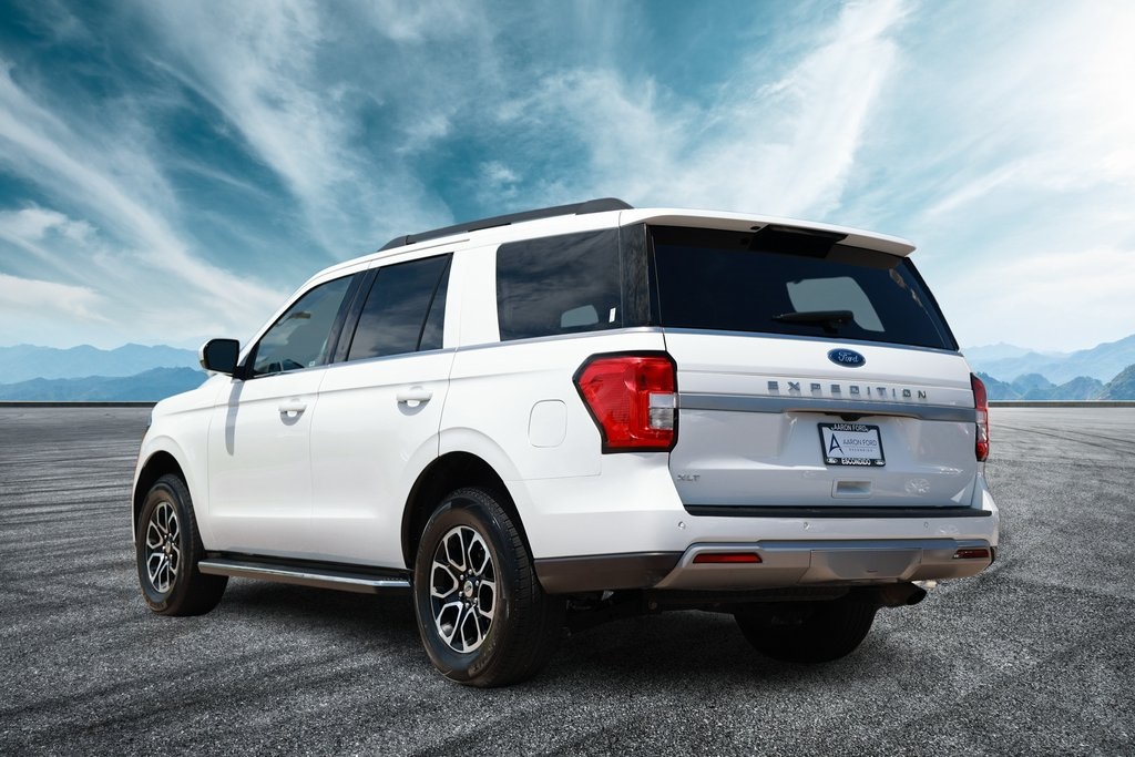 Oxford White 2023 Ford Expedition XLT 4WD 10-Speed Automatic EcoBoost 3.5L V6 GTDi DOHC 24V Twin Turbocharged 4WD, 110V/150W AC Power Outlet, 18" Machined-Face Aluminum Wheels, 2nd Row Power-Folding Captain's Chairs, 3rd row seats: split-bench, 3rd Row Vinyl Head Restraints, 4-Door Intelligent Access (Lock/Unlock), 6 Speakers, Accent Color Painted Rear Bumper, ActiveX-Trimmed 1st & 2nd Row Seats, Advanced Security Pack, Air Conditioning, Ambient Lighting, Bright Chrome Plated Accent Platform Running Boards, Equipment Group 202A High Package, Exterior Parking Camera Rear, Fully automatic headlights, Heated Steering Wheel, Heated/Ventilated Front Seats, Navigation system: Connected Navigation, Power Liftgate, Power Tilt/Telescopic Steering Wheel w/Memory, Power-Adjustable Pedals w/Memory, Power-Folding Sideview Mirrors w/Autofold, Radio: AM/FM Stereo w/MP3 Capable, Rear air conditioning, Remote Start, SecuriCode Keyless Entry Pad, SiriusXM w/360L, SYNC 4 w/Enhanced Voice Recognition, Wireless Charging Pad.Recent Arrival!
