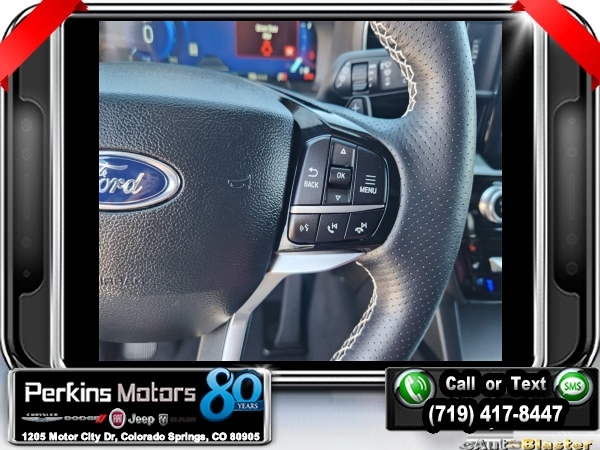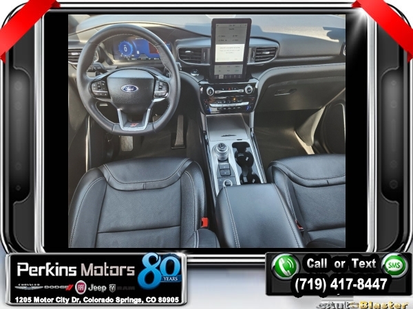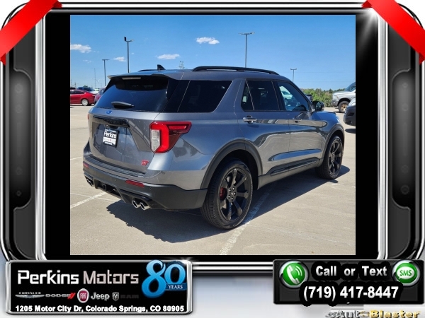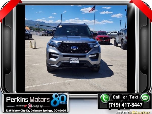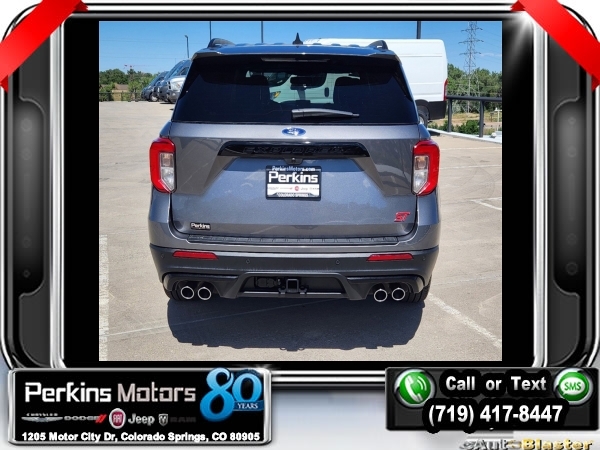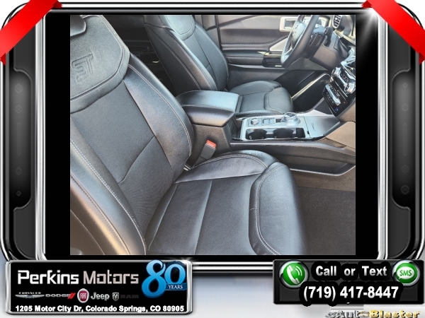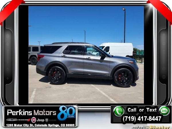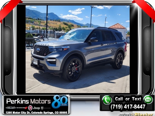 Gray Metallic 4WD 3.0L EcoBoost V6 10-Speed Automatic<br><br>4WD, 10.1 LCD Capacitive Portrait Touchscreen, 110V/150W AC Power Outlet, 2 Additional Speakers, 360-Degree Camera w/Split View, Auto-Dimming Rearview Mirror (Interior), Equipment Group 401A, Ford Co-Pilot360 Assist+, Front Parking Sensors, Front Rain-Sensing Wipers, Memory Driver's Seat, Navigation System, Performance Front & Rear Brakes, Power Tilt/Telescoping Steering Column, Radio: B&O Sound System by Bang & Olufsen, Radio: B&O Sound w/14 Speakers/HD Radio (DISC), Reverse Brake Assist, Second Row Heated Seats, Sideview Mirrors w/Gloss Black Caps, ST High Package, ST Street Pack, Technology Package, Third Row PowerFold (Folds Flat), Twin Panel Moonroof, Universal Garage Door Opener (UGDO), Wheels: 21 Aluminum, Wireless Charging Pad.<br><br><br>Clean CARFAX.<br><br>Check us out at www.perkinsmotors.com to see our specials! Since opening our doors in 1944, we’ve been proud to serve Colorado Springs, CO, and the surrounding areas of Pueblo, Castle Rock and Denver, CO. Throughout this time of being family owned for 80 years, we’ve maintained a firm commitment to our customers: to offer a wide selection of New Chrysler, Dodge, Fiat, Jeep, and Ram vehicles and quality pre-owned vehicles, and provide a quick, no-hassle car-buying process that ensures everyone drives off the lot satisfied with their purchase.<br><br><br>Equipment Group 401A, Ford Co-Pilot360 Assist+ (Evasive Steering Assist, Intelligent Adaptive Cruise Control, Speed Sign Recognition, and Voice-Activated Touchscreen Navigation System), ST High Package (110V/150W AC Power Outlet, 360-Degree Camera w/Split View, Auto-Dimming Rearview Mirror (Interior), Front Parking Sensors, Front Rain-Sensing Wipers, Memory Driver's Seat, Power Tilt/Telescoping Steering Column, Radio: B&O Sound System by Bang & Olufsen, Reverse Brake Assist, Second Row Heated Seats, Sideview Mirrors w/Gloss Black Caps, Third Row PowerFold (Folds Flat), Universal Garage Door Opener (UGDO), and Wireless Charging Pad), ST Street Pack (Performance Front & Rear Brakes and Wheels: 21 Aluminum), Technology Package (10.1 LCD Capacitive Portrait Touchscreen and 2 Additional Speakers), 4WD, Navigation System, Radio: B&O Sound w/14 Speakers/HD Radio (DISC), Twin Panel Moonroof, 20 Machined Aluminum w/Painted Pockets Wheels, 3.58 Non-Limited-Slip Rear Axle Ratio, 3rd row seats: bench, 4-Wheel Disc Brakes, 4G LTE Wi-Fi Hotspot Credit, 6 Speakers, ABS brakes, Air Conditioning, Alloy wheels, AM/FM radio: SiriusXM, AM/FM Stereo, Auto High-beam Headlights, Automatic temperature control, Brake assist, Bumpers: body-color, Compass, Cruise Control, Delay-off headlights, Driver door bin, Driver vanity mirror, Dual front impact airbags, Dual front side impact airbags, Electronic Stability Control, Emergency communication system: SYNC 3 911 Assist, Exterior Parking Camera Rear, FordPass Connect, Four wheel independent suspension, Front anti-roll bar, Front Bucket Seats, Front Center Armrest, Front dual zone A/C, Front fog lights, Front reading lights, Fully automatic headlights, Heated door mirrors, Heated front seats, Heated steering wheel, Illuminated entry, Knee airbag, Leather Htd/Ventilated Sport Captain's Chairs, Leather steering wheel, Low tire pressure warning, Memory seat, Occupant sensing airbag, Outside temperature display, Overhead airbag, Overhead console, Panic alarm, Passenger door bin, Passenger vanity mirror, Power door mirrors, Power driver seat, Power Liftgate, Power passenger seat, Power steering, Power windows, Rear air conditioning, Rear anti-roll bar, Rear reading lights, Rear window defroster, Rear window wiper, Remote keyless entry, Security system, SelectShift Capability w/Paddle Shifters, Speed-sensing steering, Speed-Sensitive Wipers, Split folding rear seat, Spoiler, Sport steering wheel, Steering wheel mounted audio controls, SYNC 3 Communications & Entertainment System, SYNC 3/Apple CarPlay/Android Auto, Tachometer, Telesc