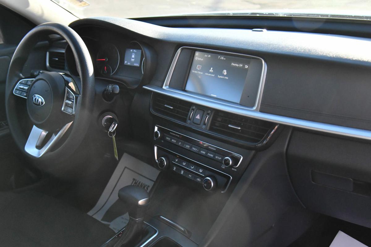 Boasts 32 Highway MPG and 24 City MPG! This Kia Optima boasts a Regular Unleaded I-4 2.4 L/144 engine powering this Automatic transmission. SNOW WHITE PEARL, CARPET FLOOR MATS, BLACK, CLOTH SEAT TRIM -inc: anti-soiling fabric.*This Kia Optima Features the Following Options *Wheels: 6.5J x 16 Silver Alloy, Variable Intermittent Wipers, Urethane Gear Shifter Material, Turn-By-Turn Navigation Directions, Trunk Rear Cargo Access, Trip Computer, Transmission: 6-Speed Automatic w/Sportmatic -inc: drive mode select system (comfort, eco, sport), Tires: P205/65R16, Tire mobility kit, Strut Front Suspension w/Coil Springs.