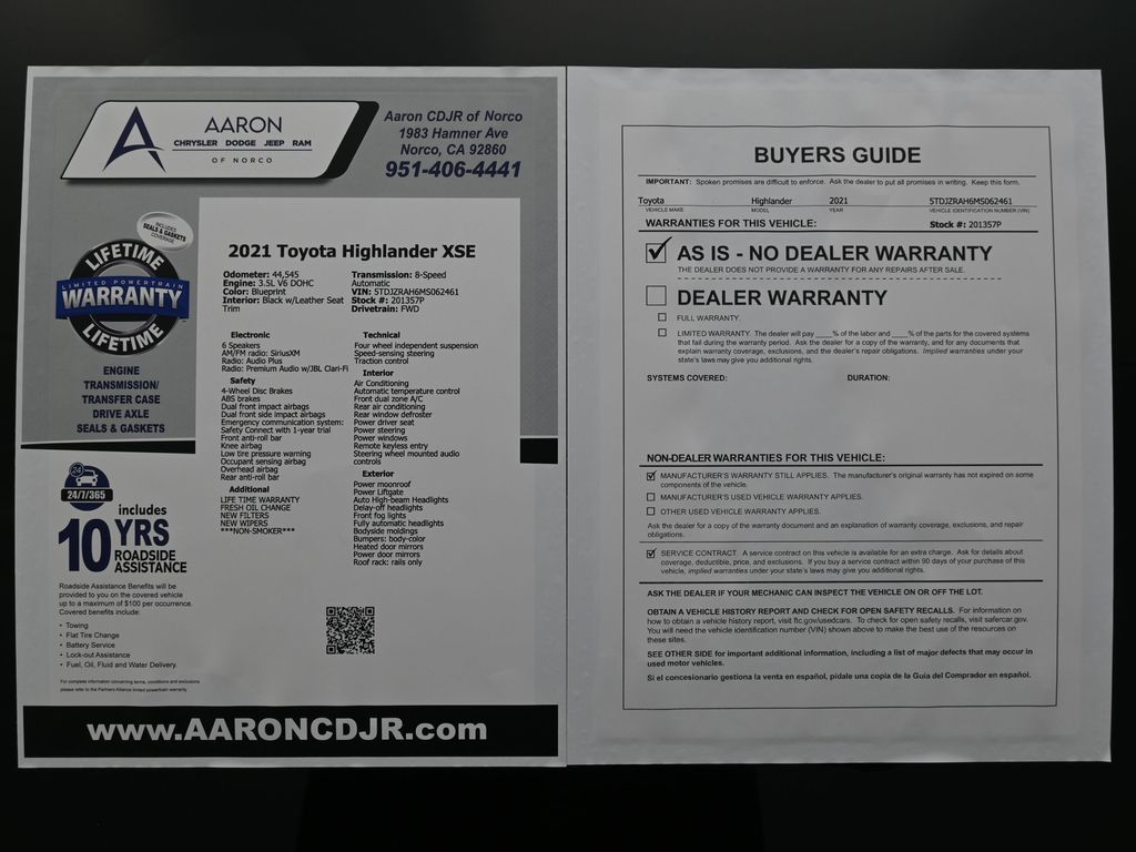 Priced below KBB Fair Purchase Price!LIFE TIME WARRANTY, FRESH OIL CHANGE, NEW FILTERS, NEW WIPERS, Highlander XSE, 4D Sport Utility, 3.5L V6 DOHC, 8-Speed Automatic, FWD, Black w/Leather Seat Trim, 3rd row seats: split-bench, Air Conditioning, Alloy wheels, Apple CarPlay/Android Auto, Exterior Parking Camera Rear, Front dual zone A/C, Fully automatic headlights, Heated Front Bucket Seats, Knee airbag, Low tire pressure warning, Power Liftgate, Power moonroof, Radio: Premium Audio w/JBL Clari-Fi, Remote keyless entry, Roof rack: rails only, Wheels: 20" Machined Alloy.CARFAX One-Owner.Awards: * ALG Residual Value Awards, Residual Value Awards