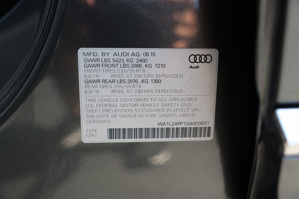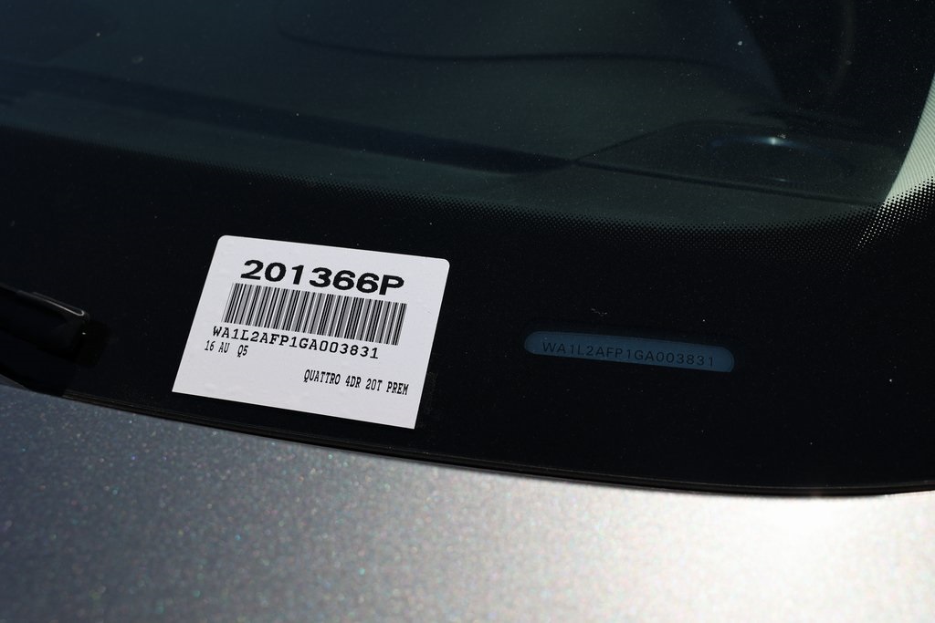 Priced below KBB Fair Purchase Price!BELOW AVERAGE ODOMETER, FRESH OIL CHANGE, NEW FILTERS, NEW WIPERS, TIPTRONIC, Q5 2.0T Premium Plus quattro, 4D Sport Utility, 2.0L 4-Cylinder TFSI, 8-Speed Automatic with Tiptronic, quattro, 10 Speakers, 2-Position Driver Side Memory, 3-Step Heated Front Seats, Alloy wheels, Aluminum Trunk Edge Trim & Door Sills, Audi Advanced Key, Audi Connect w/Online Services, Audi Parking System Plus w/Rear View Camera, Audi Side Assist, Auto-Dimming Interior Mirror w/Digital Compass, CD player, Color Driver Information System w/Trip Computer, Front dual zone A/C, Heated Auto-Dimming & Power-Adjustable Mirrors, Low tire pressure warning, Overhead airbag, Power Liftgate, Power moonroof, Premium Plus Package, Radio: MMI Navigation Plus System, Rear fog lights, Technology Package.Awards: * 2016 IIHS Top Safety Pick+