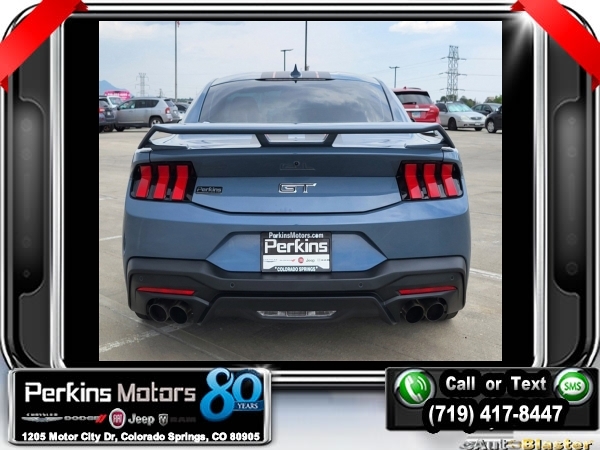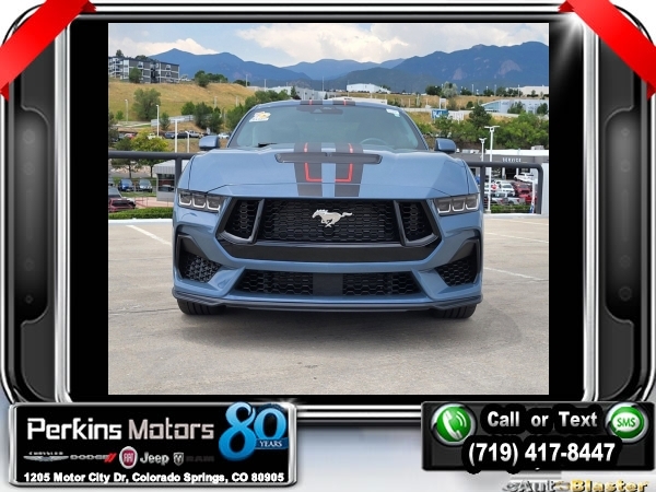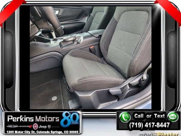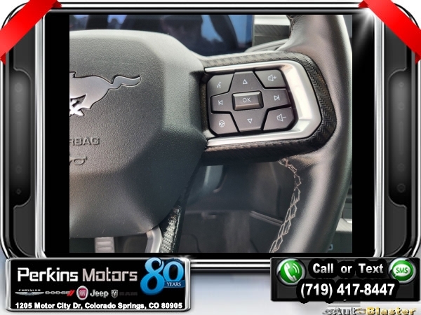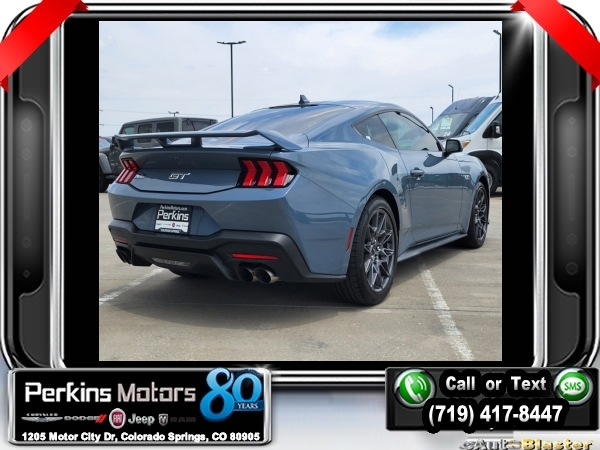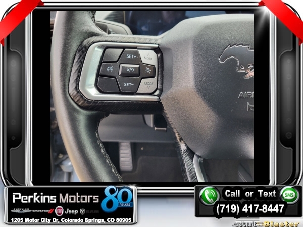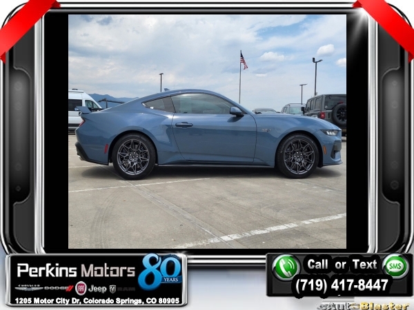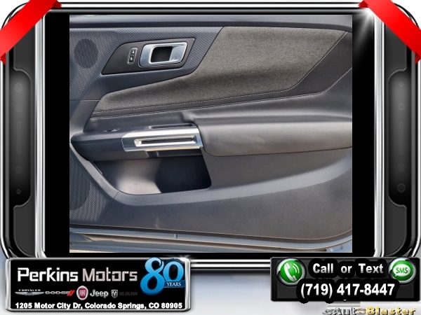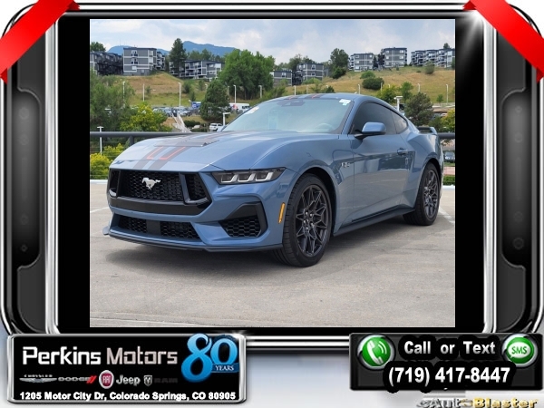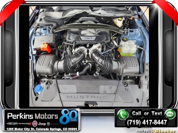 Vapor Blue Metallic RWD 5.0L V8 Ti-VCT 10-Speed Automatic<br><br>19 Brembo Brake System w/Performance Linings, 3.55 TORSEN Limited Slip Rear Axle, Active Valve Performance Exhaust, Automatic temperature control, Black Painted Strut-Tower Brace, Ebony Black Grille, Electric Hand-Operated Parking Brake (Drift Brake), Equipment Group 300A Standard Package, Front Towing Hooks, GT Performance Package, Heavy-Duty Front Springs, Matte Black Stripe w/Red Accent, Over-the-Top Racing Stripe, Performance Raised Rear Wing, SiriusXM w/360L & HD Radio, Unique Chassis Tuning, Unique Stability Control, Upsized Rear Sway Bars, Wheels: 19 x 9 Fr/19 x 9.5 Rr Carbonized.<br><br><br>Clean CARFAX.<br><br>Check us out at www.perkinsmotors.com to see our specials! Since opening our doors in 1944, we’ve been proud to serve Colorado Springs, CO, and the surrounding areas of Pueblo, Castle Rock and Denver, CO. Throughout this time of being family owned for 80 years, we’ve maintained a firm commitment to our customers: to offer a wide selection of New Chrysler, Dodge, Fiat, Jeep, and Ram vehicles and quality pre-owned vehicles, and provide a quick, no-hassle car-buying process that ensures everyone drives off the lot satisfied with their purchase.<br><br><br>Equipment Group 300A Standard Package, GT Performance Package (19 Brembo Brake System w/Performance Linings, Black Painted Strut-Tower Brace, Ebony Black Grille, Electric Hand-Operated Parking Brake (Drift Brake), Front Towing Hooks, Heavy-Duty Front Springs, Performance Raised Rear Wing, Unique Chassis Tuning, Unique Stability Control, Upsized Rear Sway Bars, and Wheels: 19 x 9 Fr/19 x 9.5 Rr Carbonized), 3.55 TORSEN Limited Slip Rear Axle, Active Valve Performance Exhaust, Automatic temperature control, Matte Black Stripe w/Red Accent, Over-the-Top Racing Stripe, SiriusXM w/360L & HD Radio, 4-Wheel Disc Brakes, ABS brakes, Air Conditioning, Alloy wheels, AM/FM Stereo, Auto High-beam Headlights, Brake assist, Bumpers: body-color, Compass, Cruise Control, Delay-off headlights, Driver door bin, Driver vanity mirror, Dual front impact airbags, Dual front side impact airbags, Electronic Stability Control, Emergency communication system: 911 Assist, Exterior Parking Camera Rear, Four wheel independent suspension, Front anti-roll bar, Front Bucket Seats, Front Center Armrest, Front reading lights, Fully automatic headlights, Illuminated entry, Knee airbag, Leather Shift Knob, Leather steering wheel, Low tire pressure warning, Occupant sensing airbag, Outside temperature display, Overhead airbag, Overhead console, Panic alarm, Passenger door bin, Passenger vanity mirror, Power door mirrors, Power steering, Power windows, Radio data system, Rain sensing wipers, Rear anti-roll bar, Rear Parking Sensors, Rear window defroster, Remote keyless entry, Speed-sensing steering, Speed-Sensitive Wipers, Split folding rear seat, Spoiler, Sport steering wheel, Steering wheel mounted audio controls, SYNC 4.0 QNX, Tachometer, Telescoping steering wheel, Tilt steering wheel, Traction control, Trip computer, Variably intermittent wipers, and Voltmeter.