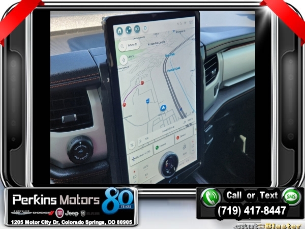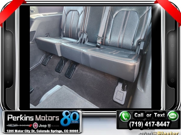 Dark Matter Metallic 4WD 3.5L V6 10-Speed Automatic<br><br>4WD, 15.5 LCD Capacitive Touchscreen, 2nd Row Leather Trimmed Pwr-Folding Captain's Chairs, 2nd Row Power Windows, Ambient Lighting, Automatic temperature control, Equipment Group 501A High Package, Front & Rear Upgraded Carpet Floor Mats, Front dual zone A/C, Heated & Ventilated Leather Front Captain's Chairs, Heated front seats, Heated Steering Wheel, Heavy-Duty Trailer Tow Package, Instrument Panel Cluster, Integrated Trailer Brake Controller, Navigation system: Connected Navigation, Panoramic Vista Roof, Power Liftgate, Power-Folding Sideview Mirrors w/Autofold, Pro Trailer Backup Assist, Radio: B&O Sound System by Bang & Olufsen, Rain-Sensing Wipers (Front Only), Rear air conditioning, SYNC 4 w/Enhanced Voice Recognition, Ventilated front seats, Vinyl Center Console, Wheels: 18 Ebony-Painted.<br><br><br>CARFAX One-Owner. Clean CARFAX.<br><br>Check us out at www.perkinsmotors.com to see our specials! Since opening our doors in 1944, we’ve been proud to serve Colorado Springs, CO, and the surrounding areas of Pueblo, Castle Rock and Denver, CO. Throughout this time of being family owned for 80 years, we’ve maintained a firm commitment to our customers: to offer a wide selection of New Chrysler, Dodge, Fiat, Jeep, and Ram vehicles and quality pre-owned vehicles, and provide a quick, no-hassle car-buying process that ensures everyone drives off the lot satisfied with their purchase.<br><br><br>Equipment Group 501A High Package (15.5 LCD Capacitive Touchscreen, 2nd Row Leather Trimmed Pwr-Folding Captain's Chairs, 2nd Row Power Windows, Ambient Lighting, Front & Rear Upgraded Carpet Floor Mats, Heated & Ventilated Leather Front Captain's Chairs, Heated Steering Wheel, Instrument Panel Cluster, Panoramic Vista Roof, Power-Folding Sideview Mirrors w/Autofold, Radio: B&O Sound System by Bang & Olufsen, Rain-Sensing Wipers (Front Only), SYNC 4 w/Enhanced Voice Recognition, Vinyl Center Console, and SiriusXM w/360L), Heavy-Duty Trailer Tow Package (Integrated Trailer Brake Controller and Pro Trailer Backup Assist), 4WD, Automatic temperature control, Front dual zone A/C, Heated front seats, Navigation system: Connected Navigation, Power Liftgate, Rear air conditioning, Ventilated front seats, Wheels: 18 Ebony-Painted, 360-Degree Camera w/Split View, 3rd row seats: split-bench, 4-Wheel Disc Brakes, 6 Speakers, ABS brakes, Adjustable pedals, Air Conditioning, Alloy wheels, AM/FM radio: SiriusXM with 360L, Auto High-beam Headlights, Auto Start-Stop Removal (DISC), Auto-dimming door mirrors, Auto-dimming Rear-View mirror, Brake assist, Bumpers: body-color, Compass, Connected Built-In Navigation, ControlTrac w/3.73 Axle Ratio, Cruise Control, Delay-off headlights, Driver door bin, Driver vanity mirror, Dual front impact airbags, Dual front side impact airbags, Electronic Stability Control, Emergency communication system: SYNC 4 911 Assist, Exterior Parking Camera Rear, Four wheel independent suspension, Front anti-roll bar, Front Bucket Seats, Front Center Armrest, Front fog lights, Front reading lights, Fully automatic headlights, Garage door transmitter, Hands-Free Foot-Activated Liftgate Removal (DISC), Heated & Vent Cloth/Vinyl Front Captain's Chairs, Heated door mirrors, Heated steering wheel, Illuminated entry, Leather steering wheel, Low tire pressure warning, Memory seat, Occupant sensing airbag, Outside temperature display, Overhead airbag, Overhead console, Panic alarm, Passenger door bin, Passenger vanity mirror, Pedal memory, Power door mirrors, Power driver seat, Power passenger seat, Power steering, Power windows, Radio data system, Radio: AM/FM Stereo w/MP3 Capable, Rear anti-roll bar, Rear reading lights, Rear window defroster, Rear window wiper, Reclining 3rd row seat, Remote keyless entry, Reverse Brake Assist, Roof rack: rails only, Second Row Power Windows Removal, Security system, Speed-sensing steering, Speed-Sensitive Wipers, Split folding rear sea