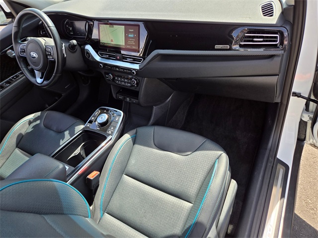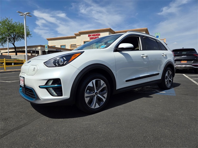 Priced below KBB Fair Purchase Price!Odometer is 18214 miles below market average!123/102 City/Highway MPGSnow White Pearl 2021 Kia Niro EV EX Premium FWD 1-Speed Automatic Electric MotorIf you don't drive here, you can't save here!Price may not include recon fee. 17" Alloy Wheels, 4-Wheel Disc Brakes, 8 Speakers, 8.21 Axle Ratio, ABS brakes, Air Conditioning, Alloy wheels, AM/FM radio: SiriusXM, Apple CarPlay & Android Auto, Artificial Leather Seat Trim, Auto High-beam Headlights, Automatic temperature control, Bodyside moldings, Brake assist, Bumpers: body-color, Cargo Net, Carpeted Floor Mats, Delay-off headlights, Driver door bin, Driver vanity mirror, Dual front impact airbags, Dual front side impact airbags, Electronic Stability Control, Emergency communication system: UVO link 911 Connect, Exterior Parking Camera Rear, Four wheel independent suspension, Front anti-roll bar, Front Bucket Seats, Front Center Armrest, Front fog lights, Front reading lights, Fully automatic headlights, Heated & Ventilated Front Bucket Seats, Heated door mirrors, Heated front seats, Illuminated entry, Knee airbag, Low tire pressure warning, Navigation System, Occupant sensing airbag, Outside temperature display, Overhead airbag, Overhead console, Panic alarm, Passenger door bin, Passenger vanity mirror, Power door mirrors, Power driver seat, Power moonroof, Power steering, Power windows, Radio: harman/kardon Premium Audio System, Rear anti-roll bar, Rear seat center armrest, Rear window defroster, Rear window wiper, Remote keyless entry, Roof rack: rails only, Security system, Speed control, Speed-sensing steering, Split folding rear seat, Spoiler, Steering wheel mounted audio controls, Telescoping steering wheel, Tilt steering wheel, Traction control, Trip computer, Turn signal indicator mirrors, Variably intermittent wipers, Ventilated front seats, and Wheel Locks.