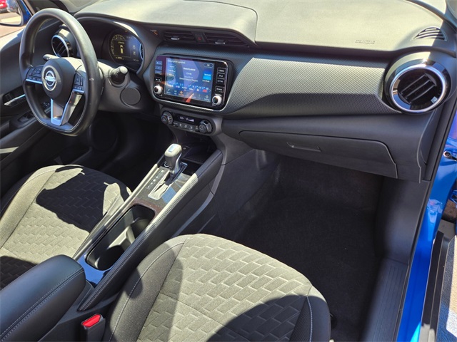Priced below KBB Fair Purchase Price!Odometer is 25978 miles below market average!31/36 City/Highway MPGElectric Blue Metallic 2022 Nissan Kicks SV FWD CVT with Xtronic 1.6L 4-Cylinder DOHC 16VIf you don't drive here, you can't save here!Price may not include recon fee. 3.927 Axle Ratio, 4-Wheel Disc Brakes, 6 Speakers, ABS brakes, Air Conditioning, Alloy wheels, AM/FM radio: SiriusXM, Apple CarPlay/Android Auto, Auto High-beam Headlights, Automatic temperature control, Blind Spot Warning, Brake assist, Bumpers: body-color, Carpeted Floor Mats w/Cargo Mat, Cloth Seat Trim, Compass, Driver door bin, Driver vanity mirror, Dual front impact airbags, Dual front side impact airbags, Electronic Stability Control, Front anti-roll bar, Front Bucket Seats, Front Center Armrest, Front reading lights, Front wheel independent suspension, Fully automatic headlights, Heated door mirrors, Illuminated entry, Knee airbag, Low tire pressure warning, Occupant sensing airbag, Outside temperature display, Overhead airbag, Panic alarm, Passenger door bin, Passenger vanity mirror, Power door mirrors, Power steering, Power windows, Radio data system, Radio: AM/FM Audio System, Rear Parking Sensors, Rear reading lights, Rear side impact airbag, Rear window defroster, Rear window wiper, Remote keyless entry, Roof rack: rails only, Speed control, Splash Guards Grain (4 Piece), Split folding rear seat, Sport steering wheel, Steering wheel mounted audio controls, Tachometer, Telescoping steering wheel, Tilt steering wheel, Traction control, Trip computer, Variably intermittent wipers, and Wheels: 17" 5-Hole Alloy.
