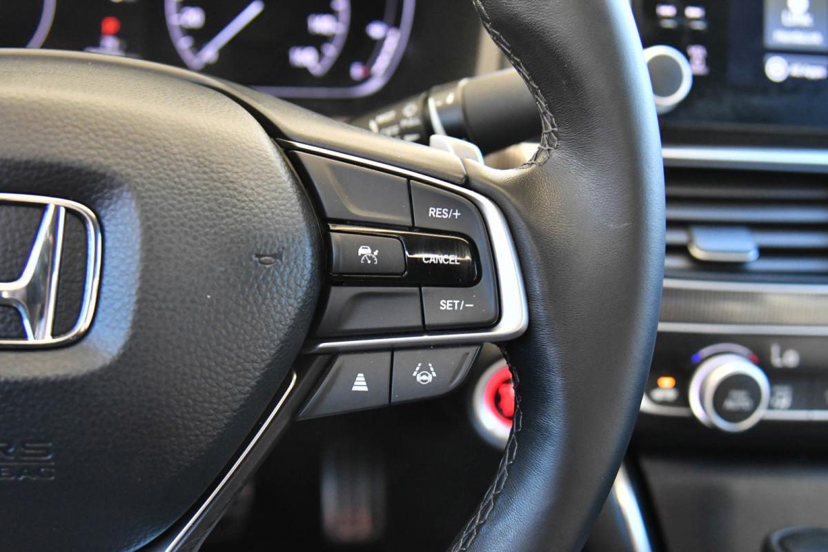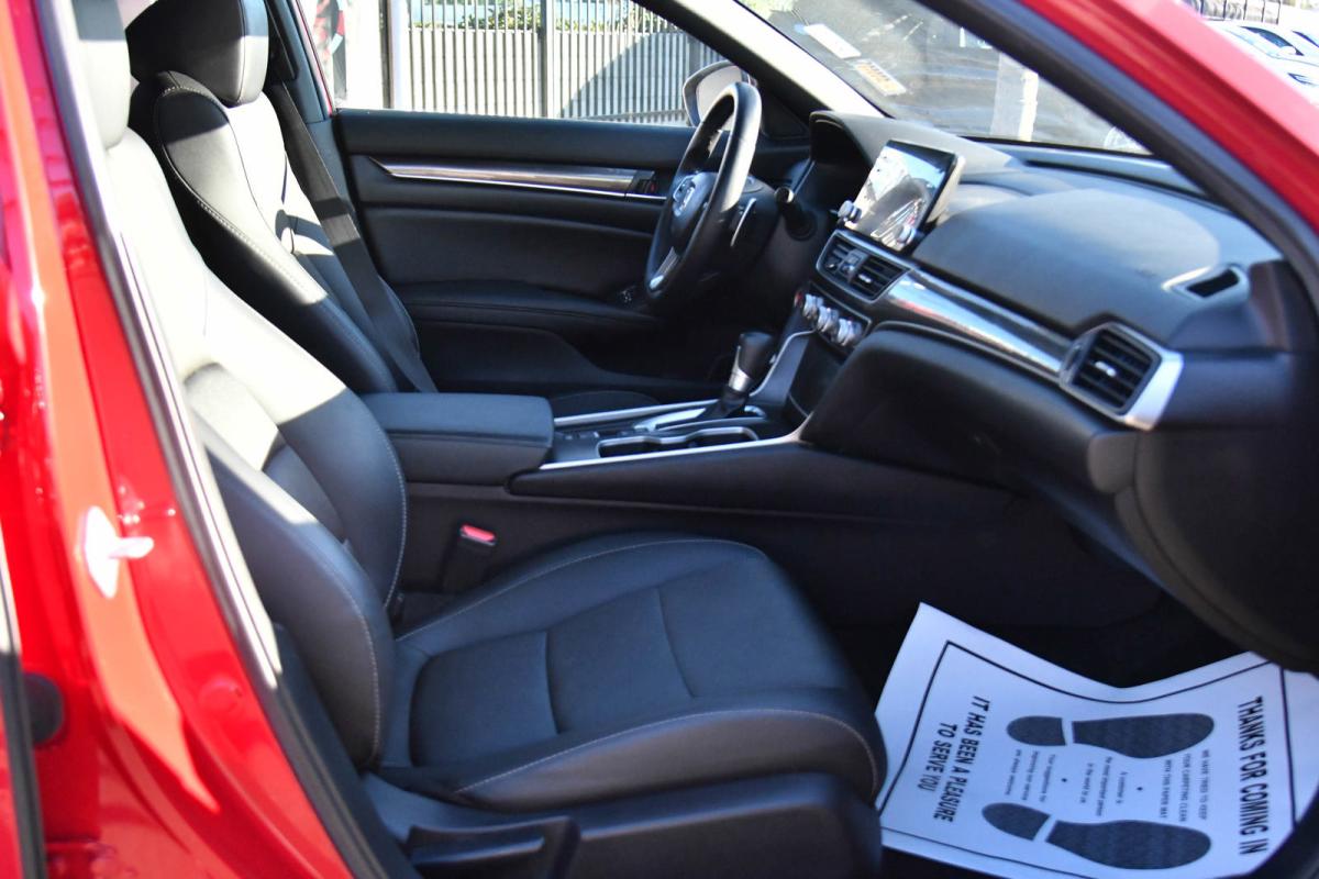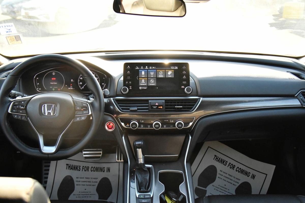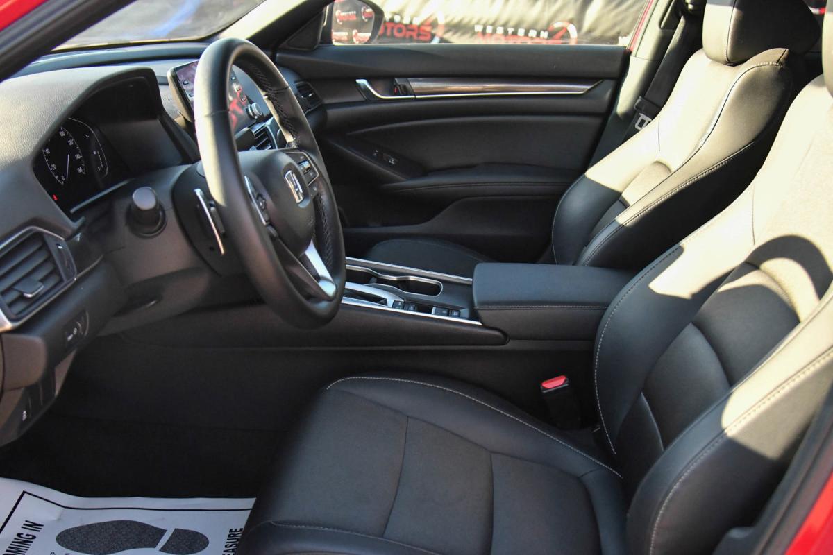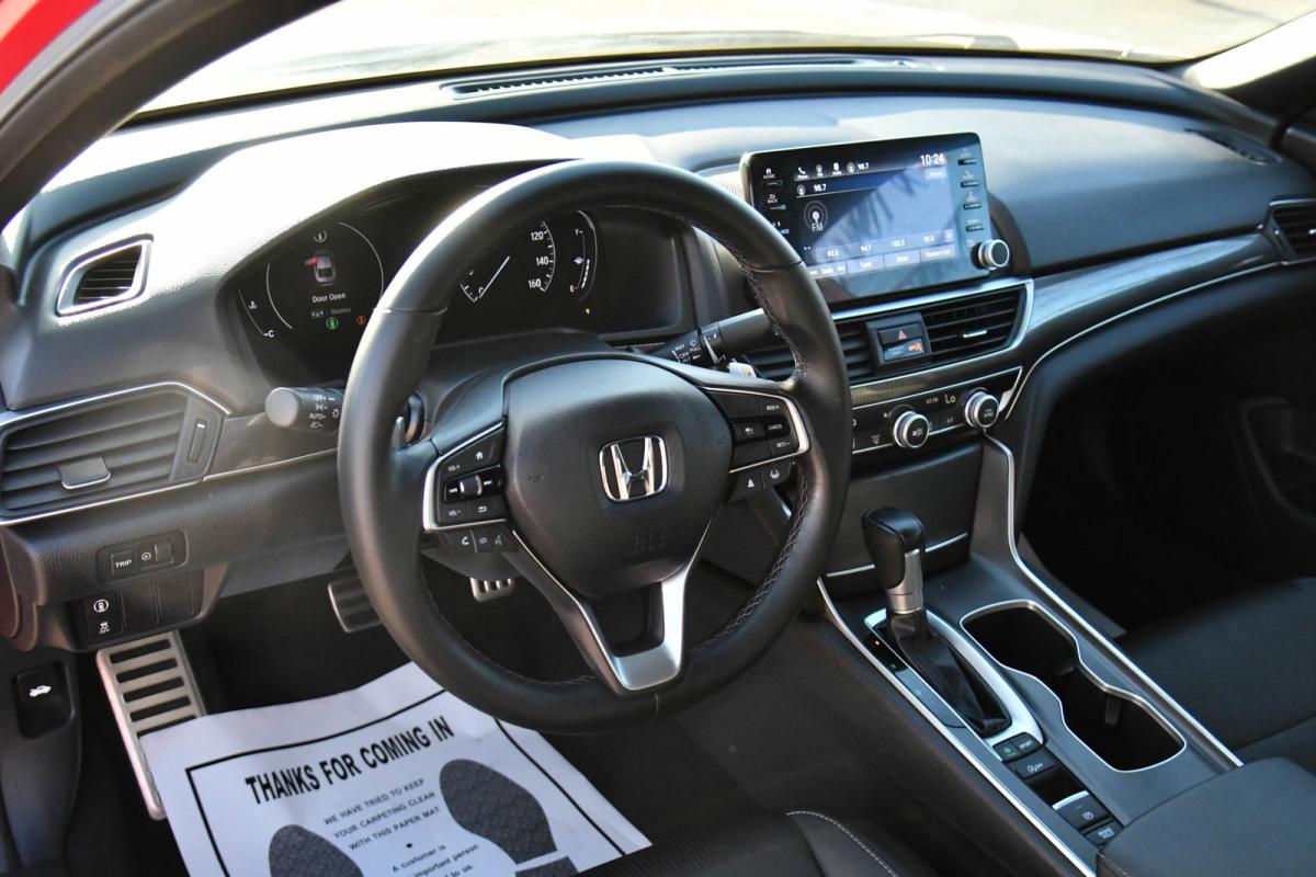 Boasts 35 Highway MPG and 29 City MPG! This Honda Accord Sedan boasts a Intercooled Turbo Regular Unleaded I-4 1.5 L/91 engine powering this Variable transmission. Wheels: 19 Machine-Finished Alloy w/Black Inserts, Vehicle Stability Assist (VSA) Electronic Stability Control (ESC), Valet Function.*This Honda Accord Sedan Comes Equipped with These Options *Trunk Rear Cargo Access, Trip Computer, Transmission: Continuously Variable -inc: sport mode and paddle shifters, Tires: 235/40R19 AS, Strut Front Suspension w/Coil Springs, Steel Spare Wheel, Speed Sensitive Variable Intermittent Wipers, Side Impact Beams, Seats w/Leatherette Back Material, Remote Releases -Inc: Power Cargo Access.