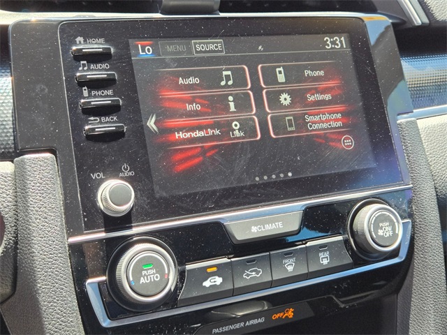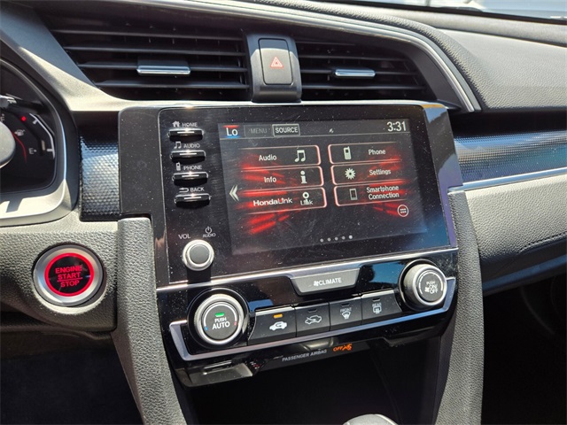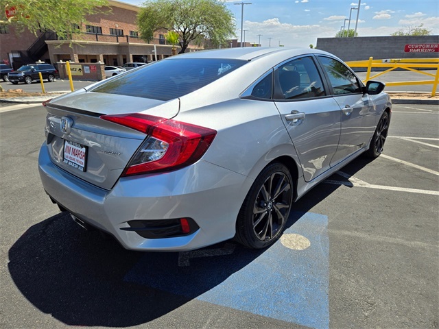 Priced below KBB Fair Purchase Price!Odometer is 10979 miles below market average!29/37 City/Highway MPG2019 Honda Civic Sport FWD CVT 2.0L I4 DOHC 16V i-VTEC Cloth.If you don't drive here, you can't save here!Price may not include recon fee. Cloth, 4-Wheel Disc Brakes, 8 Speakers, ABS brakes, Air Conditioning, Alloy wheels, AM/FM radio, Apple CarPlay/Android Auto, Auto High-beam Headlights, Automatic temperature control, Brake assist, Bumpers: body-color, Cloth Seat Trim, Delay-off headlights, Driver door bin, Driver vanity mirror, Dual front impact airbags, Dual front side impact airbags, Electronic Stability Control, Emergency communication system: HondaLink, Exterior Parking Camera Rear, Forward collision: Collision Mitigation Braking System (CMBS) + FCW mitigation, Four wheel independent suspension, Front anti-roll bar, Front Bucket Seats, Front Center Armrest, Front fog lights, Front reading lights, Fully automatic headlights, Illuminated entry, Lane departure: Lane Keeping Assist System (LKAS) active, Leather Shift Knob, Low tire pressure warning, Occupant sensing airbag, Outside temperature display, Overhead airbag, Panic alarm, Passenger door bin, Passenger vanity mirror, Power door mirrors, Power steering, Power windows, Radio data system, Radio: 180-Watt AM/FM Audio System, Rear anti-roll bar, Rear window defroster, Remote keyless entry, Security system, Speed control, Speed-sensing steering, Split folding rear seat, Spoiler, Steering wheel mounted audio controls, Tachometer, Telescoping steering wheel, Tilt steering wheel, Traction control, Trip computer, and Wheels: 18" Alloy w/Gloss Black Inserts.