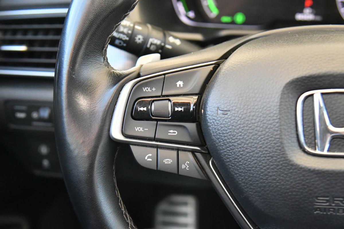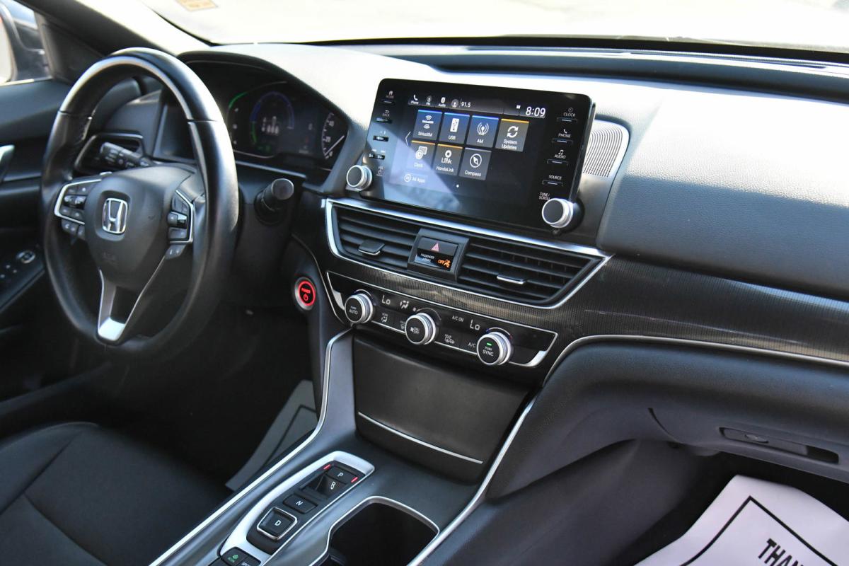 Delivers 41 Highway MPG and 44 City MPG! This Honda Accord Hybrid delivers a Gas/Electric I-4 2.0 L/122 engine powering this Variable transmission. Wheels: 19 Machine-Finished Alloy w/Black Inserts, Vehicle Stability Assist (VSA) Electronic Stability Control (ESC), Valet Function.*This Honda Accord Hybrid Comes Equipped with These Options *Trunk Rear Cargo Access, Trip Computer, Transmission: Electronic Continuously Variable -inc: sport mode and deceleration selectors, Tires: 235/40R19 96V AS, Tire mobility kit, Strut Front Suspension w/Coil Springs, Speed Sensitive Variable Intermittent Wipers, Single Stainless Steel Exhaust, Side Impact Beams, Seats w/Cloth Back Material.