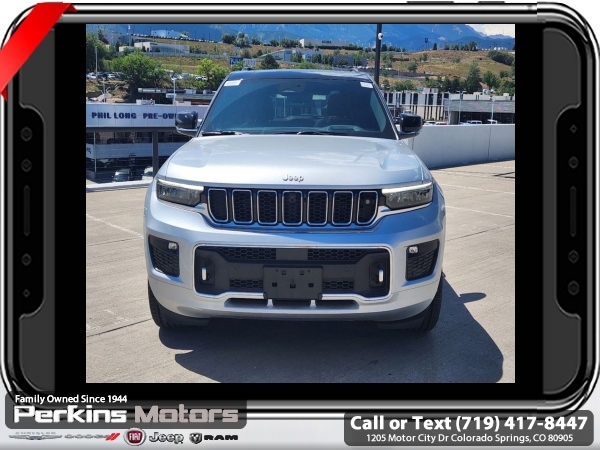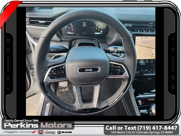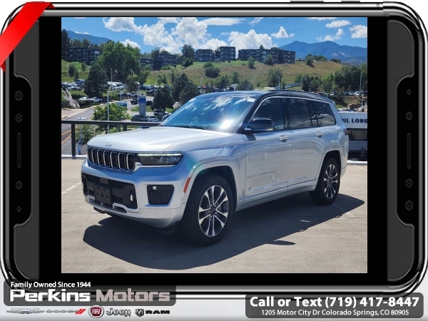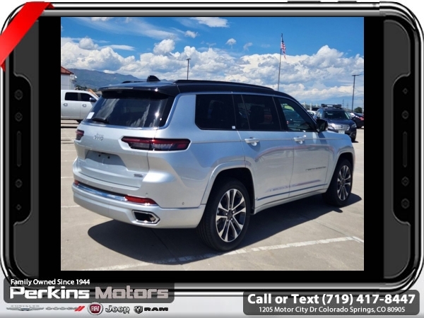 Factory MSRP: $76,430 $11,729 off MSRP! Silver Zynith 2024 Jeep Grand Cherokee L Overland 4WD 8-Speed Automatic 3.6L V6 24V VVT<br><br>Check us out at www.perkinsmotors.com to see our specials! Since opening our doors in 1944, we’ve been proud to serve Colorado Springs, CO, and the surrounding areas of Pueblo, Castle Rock and Denver, CO. Throughout this time of being family owned for 80 years, we’ve maintained a firm commitment to our customers: to offer a wide selection of New Chrysler, Dodge, Fiat, Jeep, and Ram vehicles and quality pre-owned vehicles, and provide a quick, no-hassle car-buying process that ensures everyone drives off the lot satisfied with their purchase.<br><br>Advanced Protech Group III (Active Driving Assist System, Heads-Up Display, Integrated Off-Road Camera, Interior Rear Facing Camera, Intersection Collision Assist System, Leather Wrapped Steering Wheel, Map-In-Cluster Display, Night Vision/Pedestrian-Animal Detection, Rear Back Up Camera Washer, and Surround View Camera System), Luxury Tech Group IV (2nd Row Manual Window Shades, Driver Power Seat Back Massage, Front Passenger Power Seat Back Massage, Nappa Leather Seats (TL), Passenger Seat Memory, Power Adjust 12-Way Driver Seat, Power Adjust 12-Way Front Passenger Seat, Rearview Autodim Digital Display Mirror, and Wireless Charging Pad), Quick Order Package 23N, Trailer Tow Package (7 & 4 Pin Wiring Harness and Class IV Receiver Hitch), 10 Speakers, 3.45 Rear Axle Ratio, 3rd row seats: split-bench, 4-Wheel Disc Brakes, ABS brakes, Active Noise Control System, Adaptive suspension, Air Conditioning, Alloy wheels, AM/FM radio: SiriusXM with 360L, Anti-whiplash front head restraints, Audio memory, Auto High-beam Headlights, Auto-dimming door mirrors, Auto-dimming Rear-View mirror, Auto-leveling suspension, Automatic temperature control, Aux Battery, Brake assist, Bumpers: body-color, Compass, Cruise Control, Delay-off headlights, Driver door bin, Driver vanity mirror, Dual front impact airbags, Dual front side impact airbags, Electronic Stability Control, Emergency communication system, Four wheel independent suspension, Front anti-roll bar, Front Bucket Seats, Front Center Armrest w/Storage, Front dual zone A/C, Front fog lights, Front License Plate Bracket, Front reading lights, Fully automatic headlights, Garage door transmitter, Hands-Free Active Driving Assist System, Heated door mirrors, Heated front seats, Heated rear seats, Heated steering wheel, Illuminated entry, Knee airbag, Low tire pressure warning, Memory seat, Nappa Leather Seats, Navigation System, Normal Duty Suspension, Occupant sensing airbag, Outside temperature display, Overhead airbag, Overhead console, Panic alarm, Passenger door bin, Passenger vanity mirror, Power door mirrors, Power driver seat, Power Fold Seatbacks, Power Liftgate, Power moonroof, Power passenger seat, Power steering, Power windows, Radio data system, Radio: Uconnect 5 Nav w/10.1 Display, Rain sensing wipers, Rear air conditioning, Rear anti-roll bar, Rear reading lights, Rear window defroster, Rear window wiper, Reclining 3rd row seat, Remote keyless entry, Security system, Speed-Sensitive Wipers, Split folding rear seat, Spoiler, Steering wheel memory, Steering wheel mounted audio controls, Tachometer, Telescoping steering wheel, Tilt steering wheel, Traction control, Trip computer, Turn signal indicator mirrors, Variably intermittent wipers, Ventilated front seats, Voltmeter, and Wheels: 20 x 8.5 Machined Face Aluminum.