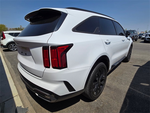 Recent Arrival!Priced below KBB Fair Purchase Price!22/29 City/Highway MPGGlacial White Pearl 2023 Kia Sorento SX FWD 8-Speed DCT 2.5L I4 DGI Turbocharged DOHC 16V LEV3-ULEV70 281hpIf you don't drive here, you can't save here!Price may not include recon fee. 3.316 Axle Ratio, 3rd row seats: split-bench, 4-Wheel Disc Brakes, 6 Speakers, ABS brakes, Air Conditioning, Alloy wheels, AM/FM radio: SiriusXM, Apple CarPlay & Android Auto, Auto High-beam Headlights, Auto-dimming Rear-View mirror, Automatic temperature control, Brake assist, Bumpers: body-color, Carpet Floor Mats, Delay-off headlights, Driver door bin, Driver vanity mirror, Dual front impact airbags, Dual front side impact airbags, Electronic Stability Control, Emergency communication system, Exterior Parking Camera Rear, Four wheel independent suspension, Front anti-roll bar, Front Bucket Seats, Front Center Armrest, Front dual zone A/C, Front fog lights, Front reading lights, Fully automatic headlights, Heated door mirrors, Heated Front Bucket Seats, Heated front seats, Illuminated entry, Knee airbag, Leather steering wheel, Low tire pressure warning, Navigation System, Occupant sensing airbag, Outside temperature display, Overhead airbag, Overhead console, Panic alarm, Passenger door bin, Passenger vanity mirror, Power door mirrors, Power driver seat, Power Liftgate, Power moonroof, Power passenger seat, Power steering, Power windows, Radio data system, Radio: AM/FM Audio System, Rain sensing wipers, Rear air conditioning, Rear anti-roll bar, Rear reading lights, Rear window defroster, Rear window wiper, Remote keyless entry, Roof rack: rails only, Security system, Smart Key w/ Push Button and Remote Start, Speed control, Speed-sensing steering, Split folding rear seat, Spoiler, Steering wheel mounted audio controls, SynTex Artificial Leather Seat Trim, Tachometer, Telescoping steering wheel, Tilt steering wheel, Traction control, Trip computer, Turn signal indicator mirrors, Variably intermittent wipers, and Wheels: 8.5J x 20" Gloss Black Alloy.