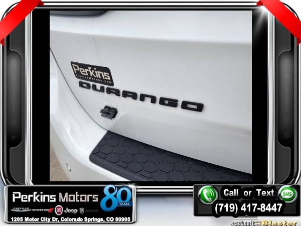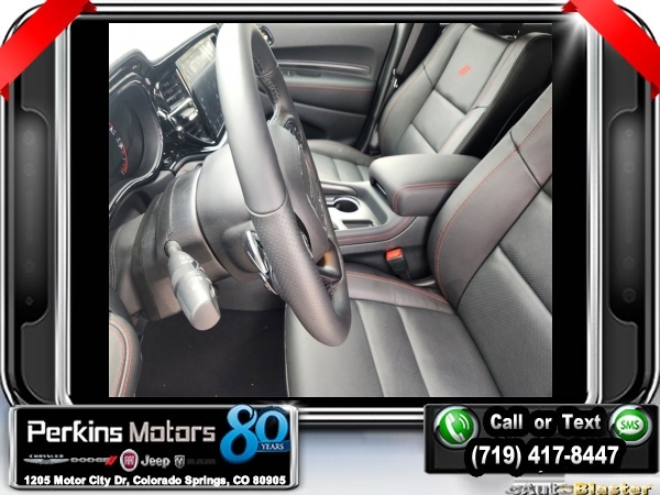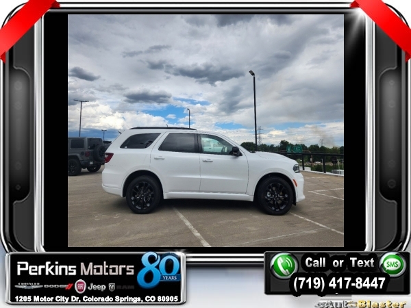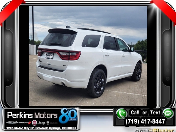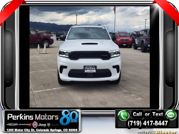 Factory MSRP: $52,505 $8,036 off MSRP! Priced below KBB Fair Purchase Price! White Knuckle Clearcoat 2024 Dodge Durango GT AWD 8-Speed Automatic 3.6L V6 24V VVT<br>AWD.<br>Check us out at www.perkinsmotors.com to see our specials! Since opening our doors in 1944, we’ve been proud to serve Colorado Springs, CO, and the surrounding areas of Pueblo, Castle Rock and Denver, CO. Throughout this time of being family owned for 80 years, we’ve maintained a firm commitment to our customers: to offer a wide selection of New Chrysler, Dodge, Fiat, Jeep, and Ram vehicles and quality pre-owned vehicles, and provide a quick, no-hassle car-buying process that ensures everyone drives off the lot satisfied with their purchase.<br><br>Blacktop Package (Black Roof Rails, Gloss Black Badges, GT Gloss Black Badging, Integrated Roof Rail Crossbars, Satin Black Dodge Tail Lamp Badge, and Wheels: 20 x 8.0 Black Noise Aluminum), Quick Order Package 2BG GT Plus (1-Year Trial (Registration Required), 10.1 Touchscreen Display, 115V Auxiliary Power Outlet, 180 Amp Alternator, 4G LTE Wi-Fi Hot Spot, 7 & 4 Pin Wiring Harness, Adaptive Cruise Control w/Stop, Apple CarPlay, Auto-Dimming Exterior Driver Mirror, Blind Spot w/Trailer Detection, Class IV Receiver Hitch, Connected Travel & Traffic Services, Disassociated Touchscreen Display, Dual Remote USB Port - Charge Only, Exterior Mirrors w/Heating Element, Exterior Mirrors w/Memory, Exterior Mirrors w/Supplemental Signals, Floor Console w/Leather Armrest, For Details Visit DriveUconnect.com, Full Speed Forward Collision Warning Plus, Global Telematics Box Module (TBM), Gloss Black Exterior Mirrors, Google Android Auto, GPS Antenna Input, GPS Navigation, HD Radio, Heated Second Row Seats, Heavy-Duty Engine Cooling, Integrated Center Stack Radio, Integrated Voice Command w/Bluetooth, Leather Trimmed Bucket Seats, Leather Wrapped Door Panels, LED Auxiliary Low Beam & Turn Signal, Power 6x9 Multi-Function Foldaway Mirrors, Power 8-Way Driver Memory 8-Way Passenger Seats, Power Driver/Passenger 4-Way Lumbar Adjust, Power Sunroof, Power Tilt & Telescopic Steering Column, Radio: Uconnect 5 Nav w/10.1 Display, Radio/Driver Seat/Mirrors Memory, Rear Load Leveling Suspension, Red Accent Stitching, SiriusXM Guardian - Included Trial (B), SiriusXM w/360L, Trailer Brake Control, USB Host Flip, and Ventilated Front Seats), AWD, 2nd Row Fold/Tumble Captain Chairs, 2nd Row Mini Console w/Cupholders, 2nd Row Seat Mounted Inboard Armrests, 3.45 Rear Axle Ratio, 3rd Row Floor Mat & Mini Console, 3rd row seats: split-bench, 4-Wheel Disc Brakes, 6 Speakers, 6-Passenger Seating, ABS brakes, Air Conditioning, Alloy wheels, AM/FM radio: SiriusXM, Anti-whiplash front head restraints, Apple CarPlay/Android Auto, Auto-dimming Rear-View mirror, Automatic temperature control, Brake assist, Bumpers: body-color, Cloth Bucket Seats w/Shift Insert, Compass, Cruise Control, Delay-off headlights, Driver door bin, Driver vanity mirror, Dual front impact airbags, Dual front side impact airbags, Electronic Stability Control, Four wheel independent suspension, Front anti-roll bar, Front Bucket Seats, Front Center Armrest w/Storage, Front dual zone A/C, Front License Plate Bracket, Front reading lights, Fully automatic headlights, Garage door transmitter, Heated door mirrors, Heated front seats, Heated steering wheel, Illuminated entry, Knee airbag, Leather steering wheel, Low tire pressure warning, Occupant sensing airbag, Outside temperature display, Overhead airbag, Overhead console, Panic alarm, ParkView Rear Back-Up Camera, Passenger door bin, Passenger vanity mirror, Power door mirrors, Power driver seat, Power Liftgate, Power steering, Power windows, Radio data system, Radio: Uconnect 4 w/8.4 Display, Rear a Sale price includes all manufacture's incentives and dealer discounts. Sale price not available on lease or compatible with special APR. $2950 - 2024 National Power Dollars Retail Bonus Cash . Exp. 09/30/2024 $2,000 - Exp.