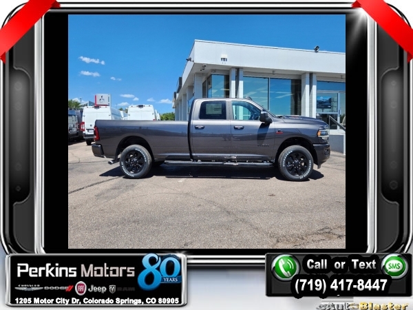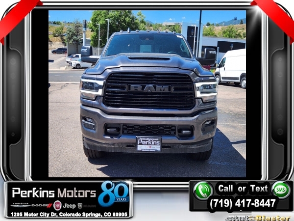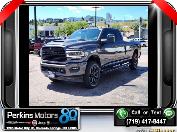 Factory MSRP: $93,455 $12,000 off MSRP! Granite Crystal Metallic Clearcoat 2024 Ram 3500 Laramie 4WD 6-Speed Automatic I6<br><br>Check us out at www.perkinsmotors.com to see our specials! Since opening our doors in 1944, we’ve been proud to serve Colorado Springs, CO, and the surrounding areas of Pueblo, Castle Rock and Denver, CO. Throughout this time of being family owned for 80 years, we’ve maintained a firm commitment to our customers: to offer a wide selection of New Chrysler, Dodge, Fiat, Jeep, and Ram vehicles and quality pre-owned vehicles, and provide a quick, no-hassle car-buying process that ensures everyone drives off the lot satisfied with their purchase.<br><br>Bed Utility Group (LED Bed Lighting and MOPAR Spray In Bedliner), Cold Weather Group (Engine Block Heater and MOPAR Winter Front Grille Cover), Laramie Level 1 Equipment Group (2nd Row In Floor Storage Bins, 4G LTE Wi-Fi Hot Spot, Alexa Built-In, Apple CarPlay, Auto-Dimming Exterior Mirrors, Blind Spot & Cross Path Detection, Center Hub, Connected Travel & Traffic Services, Connectivity - US/Canada, Disassociated Touchscreen Display, Exterior Mirrors Courtesy Lamps, Exterior Mirrors w/Heating Element, Exterior Mirrors w/Supplemental Signals, For Details Visit DriveUconnect.com, For More Info, Call 800-643-2112, Global Telematics Box Module (TBM), Google Android Auto, GPS Antenna Input, GPS Navigation, HD Radio, Integrated Voice Command w/Bluetooth, Off-Road Information Pages, Power Adjust Mirrors, Power-Adjustable Convex Aux Mirrors, Radio: Uconnect 5 Nav w/12.0 Display, Remote Tailgate Release, Selectable Tire Fill Alert, SiriusXM Radio Service, SiriusXM w/360L, and Trailer Tow Pages), Night Edition (Body Color Grille Surround), Protection Group, Quick Order Package 21H Laramie, Safety Group (Adaptive Cruise Control w/Stop, Adaptive Steering System, and Lane Keep Assist), Snow Chief Group (Auxiliary Switches Prep, Clearance Lamps, and I/P Mounted Auxiliary Switches), Towing Technology Group (CTR Stop Lamp w/Cargo View Camera and Trailer Reverse Guidance), 10 Speakers, 115V Auxiliary Rear Power Outlet, 2 Way Rear Headrest Seat, 220 Amp Alternator, 3.73 Axle Ratio, 4 Way Front Headrests, 4-Wheel Disc Brakes, 50 Gallon Fuel Tank, 5th Wheel/Gooseneck Towing Prep Group, 8.4 Touchscreen Display, ABS brakes, Active Noise Control System, Air Conditioning, Alloy wheels, AM/FM radio: SiriusXM with 360L, Apple CarPlay/Android Auto, Auto Level Rear Air Suspension, Auto-dimming Rear-View mirror, Automatic temperature control, Brake assist, Bumpers: body-color, Compass, Cruise Control, Delay-off headlights, Driver door bin, Driver vanity mirror, Dual Alternators Rated At 440 Amps, Dual front impact airbags, Dual front side impact airbags, Electronic Stability Control, Electronically Controlled Throttle, Folding Flat Load Floor Storage, Front anti-roll bar, Front Center Armrest w/Storage, Front dual zone A/C, Front License Plate Bracket, Front reading lights, Front Seat Back Map Pockets, Fully automatic headlights, Garage door transmitter, Heated door mirrors, Heated Front Seats, Heated front seats, Heated Steering Wheel, Heated steering wheel, High Back Seats, Illuminated entry, Integrated Center Stack Radio, Leather steering wheel, Leather Trim 40/20/40 Bench Seat, Low tire pressure warning, Manufacturer's Statement of Origin, MOPAR Front & Rear Rubber Floor Mats, Occupant sensing airbag, Outside temperature display, Overhead airbag, Overhead console, Painted Flat Wheel-to-Wheel Side Steps, Panic alarm, ParkView Rear Back-Up Camera, Passenger door bin, Passenger vanity mirror, Power 8-Way Adjustable Passenger Seat, Power Adjust 8-Way Driver Seat, Power door mirrors, Power driver seat, Power passenger seat, Power steering, Power Sunroof, Power windows, Radio data syste Sale price includes all manufacture's incentives and dealer discounts. Sale price not available on lease or compatible with special APR. $1000 - 2024 Bonus Cash . Exp. 09/03/2024 $5,000 - Exp.