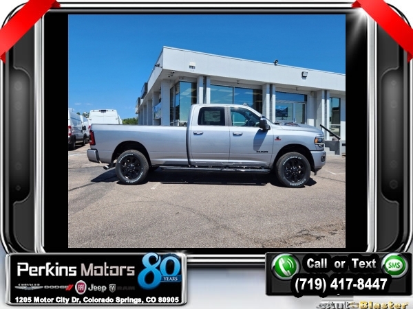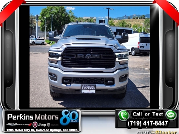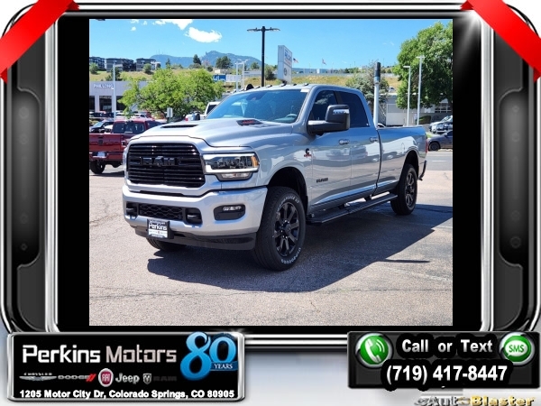 Factory MSRP: $93,455 $13,500 off MSRP! Billet Silver Metallic Clearcoat 2024 Ram 3500 Laramie 4WD 6-Speed Automatic I6<br><br>Check us out at www.perkinsmotors.com to see our specials! Since opening our doors in 1944, we’ve been proud to serve Colorado Springs, CO, and the surrounding areas of Pueblo, Castle Rock and Denver, CO. Throughout this time of being family owned for 80 years, we’ve maintained a firm commitment to our customers: to offer a wide selection of New Chrysler, Dodge, Fiat, Jeep, and Ram vehicles and quality pre-owned vehicles, and provide a quick, no-hassle car-buying process that ensures everyone drives off the lot satisfied with their purchase.<br><br>Bed Utility Group (LED Bed Lighting and MOPAR Spray In Bedliner), Cold Weather Group (Engine Block Heater), Laramie Level 1 Equipment Group (4G LTE Wi-Fi Hot Spot, Alexa Built-In, Apple CarPlay, Auto High Beam Headlamp Control, Auto Power-Folding Mirrors, Blind Spot & Cross Path Detection, Center Hub, Connected Travel & Traffic Services, Connectivity - US/Canada, Disassociated Touchscreen Display, Exterior Mirrors Courtesy Lamps, Exterior Mirrors w/Heating Element, Exterior Mirrors w/Supplemental Signals, For Details Visit DriveUconnect.com, For More Info, Call 800-643-2112, Forward & Reverse Utility Lights, Global Telematics Box Module (TBM), Google Android Auto, GPS Antenna Input, GPS Navigation, HD Radio, Integrated Voice Command w/Bluetooth, LED Reflector Headlamps, Mirror Running Lights, Off-Road Information Pages, Power Adjust Mirrors, Power Heat Fold Memory Telescopic Mirrors, Power-Adjustable Convex Aux Mirrors, Radio: Uconnect 5 Nav w/12.0 Display, Rear Window Defroster, Selectable Tire Fill Alert, SiriusXM Radio Service, SiriusXM w/360L, and Trailer Tow Pages), Night Edition (Black RAM Head Tailgate Badge and Gloss Black Grille Billets/Accents), Protection Group, Quick Order Package 21H Laramie, Safety Group (Adaptive Steering System), Snow Chief Group (Auxiliary Switches Prep, Clearance Lamps, and I/P Mounted Auxiliary Switches), Towing Technology Group (CTR Stop Lamp w/Cargo View Camera), 10 Speakers, 115V Auxiliary Rear Power Outlet, 2 Way Rear Headrest Seat, 220 Amp Alternator, 3.73 Axle Ratio, 4 Way Front Headrests, 4-Wheel Disc Brakes, 50 Gallon Fuel Tank, 5th Wheel/Gooseneck Towing Prep Group, 8.4 Touchscreen Display, ABS brakes, Active Noise Control System, Air Conditioning, Alloy wheels, AM/FM radio: SiriusXM with 360L, Apple CarPlay/Android Auto, Auto Level Rear Air Suspension, Auto-dimming Rear-View mirror, Automatic temperature control, Brake assist, Bumpers: body-color, Compass, Cruise Control, Delay-off headlights, Driver door bin, Driver vanity mirror, Dual Alternators Rated At 440 Amps, Dual front impact airbags, Dual front side impact airbags, Electronic Stability Control, Electronically Controlled Throttle, Folding Flat Load Floor Storage, Front anti-roll bar, Front Center Armrest w/Storage, Front dual zone A/C, Front License Plate Bracket, Front reading lights, Front Seat Back Map Pockets, Fully automatic headlights, Garage door transmitter, Heated door mirrors, Heated Front Seats, Heated front seats, Heated Steering Wheel, Heated steering wheel, High Back Seats, Illuminated entry, Integrated Center Stack Radio, Leather steering wheel, Leather Trim 40/20/40 Bench Seat, Low tire pressure warning, Manufacturer's Statement of Origin, MOPAR Front & Rear Rubber Floor Mats, Occupant sensing airbag, Outside temperature display, Overhead airbag, Overhead console, Painted Flat Wheel-to-Wheel Side Steps, Panic alarm, ParkView Rear Back-Up Camera, Passenger door bin, Passenger vanity mirror, Power 8-Way Adjustable Passenger Seat, Power Adjust 8-Way Driver Seat, Power door mirrors, Power driver seat, Power passenger seat, Power steering, Power Sunroof, Power window Sale price includes all manufacture's incentives and dealer discounts. Sale price not available on lease or compatible with special APR. $1000 - 2024 Bonus Cash . Exp. 1