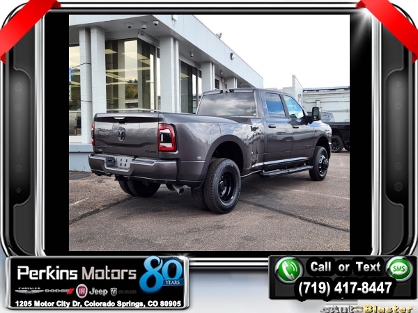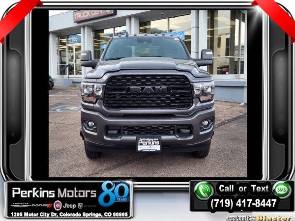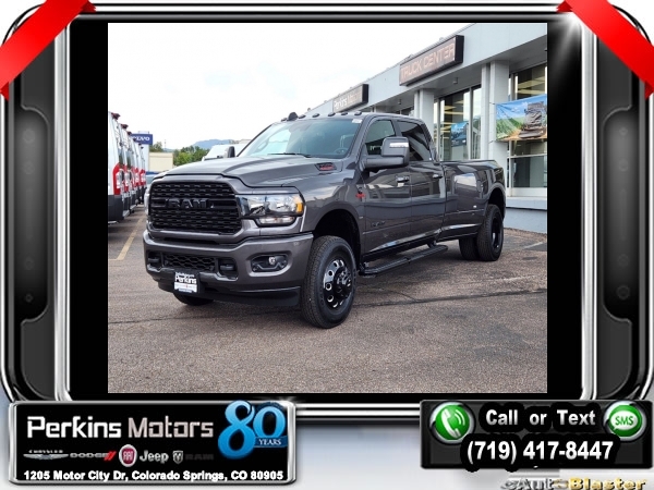 Factory MSRP: $89,590 $11,000 off MSRP! Granite Crystal Metallic Clearcoat 2024 Ram 3500 Big Horn 4WD 6-Speed Automatic I6<br><br>Check us out at www.perkinsmotors.com to see our specials! Since opening our doors in 1944, we’ve been proud to serve Colorado Springs, CO, and the surrounding areas of Pueblo, Castle Rock and Denver, CO. Throughout this time of being family owned for 80 years, we’ve maintained a firm commitment to our customers: to offer a wide selection of New Chrysler, Dodge, Fiat, Jeep, and Ram vehicles and quality pre-owned vehicles, and provide a quick, no-hassle car-buying process that ensures everyone drives off the lot satisfied with their purchase.<br><br>Bed Utility Group (MOPAR Spray In Bedliner), Cold Weather Group (Engine Block Heater), Heated Seats & Wheel Group (Leather Wrapped Steering Wheel and Steering Wheel Mounted Audio Controls), Heavy Duty Snow Plow Prep Group (220 Amp Alternator), Level 1 Equipment Group (2 Way Rear Headrest Seat, 2nd Row In Floor Storage Bins, 4 Way Front Headrests, 40/20/40 Split Bench Seat, Apple CarPlay, Auto Power-Folding Mirrors, Black Exterior Mirrors, Bluetooth Handsfree Phone & Audio, Center Hub, Exterior Mirrors Courtesy Lamps, Exterior Mirrors w/Heating Element, Exterior Mirrors w/Supplemental Signals, Footwell Courtesy Lamp, For Details Visit DriveUconnect.com, Front Armrest w/Cupholders, Front Fog Lamps, Global Telematics Box Module (TBM), Glove Box Lamp, GPS Antenna Input, Integrated Voice Command w/Bluetooth, Locking Lower Glove Box, Manual Adjust 4-Way Front Passenger Seat, Power Adjust Mirrors, Power Heated Fold Telescopic Mirrors, Power-Adjustable Convex Aux Mirrors, Remote USB Port - Charge Only, Storage Tray, and Wheels: 18 x 8.0 Polished Aluminum), Night Edition (Black Headlamp Bezels, Gloss Black Nostrils/Molded in Color Black Grille, and Painted Front Bumper), Protection Group, Quick Order Package 21Z Big Horn, Safety Group (Auto-Dimming Rear-View Mirror), Towing Technology Group (CTR Stop Lamp w/Cargo View Camera and Surround View Camera System), 115V Auxiliary Front Power Outlet, 3.73 Axle Ratio, 4-Wheel Disc Brakes, 4.10 Axle Ratio, 50 Gallon Fuel Tank, 5th Wheel/Gooseneck Towing Prep Group, 6 Speakers, 9 Alpine Speakers w/Subwoofer, ABS brakes, Active Noise Control System, Air Conditioning, Air Conditioning ATC w/Dual Zone Control, Alexa Built-In, Auto Level Rear Air Suspension, Blind Spot & Cross Path Detection, Brake assist, Bumpers: chrome, Clearance Lamps, Cloth 40/20/40 Bench Seat, Compass, Connected Travel & Traffic Services, Cruise Control, Dash Pass Thru Wire Circuits, Delay-off headlights, Driver door bin, Dual front impact airbags, Dual front side impact airbags, Dual Rear Wheels, Electronic Stability Control, Electronically Controlled Throttle, Emergency communication system: SiriusXM Guardian, Front anti-roll bar, Front Center Armrest w/Storage, Front License Plate Bracket, Front reading lights, Fully automatic headlights, Heated door mirrors, I/P Mounted Auxiliary Switches, Illuminated entry, LED Tail Lamps, Low tire pressure warning, Manual Adjust 4-Way Driver Seat, Manufacturer's Statement of Origin, MOPAR Front & Rear Rubber Floor Mats, Occupant sensing airbag, Off-Road Information Pages, Outside temperature display, Overhead airbag, Overhead console, Painted Flat Cab-Length Side Steps, Panic alarm, ParkSense Front/Rear Park Assist System, ParkView Rear Back-Up Camera, Passenger door bin, Passenger vanity mirror, Power door mirrors, Power steering, Power windows, Radio data system, Radio: Uconnect 3 w/5 Display, Radio: Uconnect 5 Nav w/12.0 Display, Rear Folding Seat, Rear seat center armrest, Rear step bumper, Rear Wheelhouse Liners, Rear Window Defroster, Remote keyless entry, Remote Start System, SiriusXM w/360L, Tachometer, Tilt steering wheel, Tip St Sale price includes all manufacture's incentives and dealer discounts. Sale price not available on lease or compatible with special APR. $1000 - 2024 Bonus Cash . Exp. 0