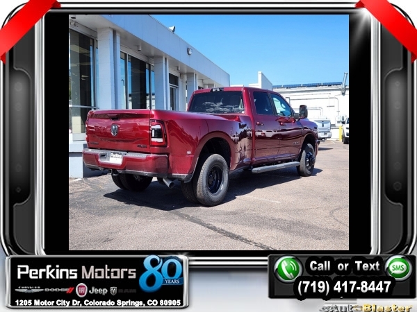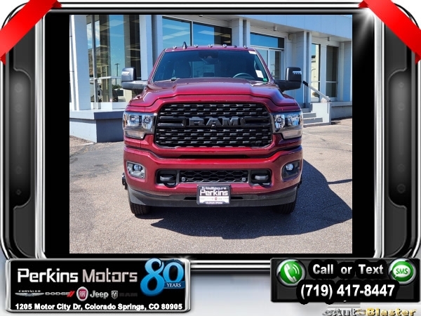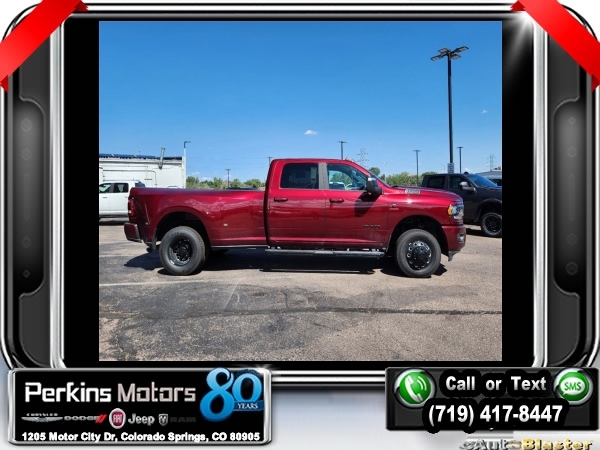 Factory MSRP: $89,540 $13,000 off MSRP! Delmonico Red Pearlcoat 2024 Ram 3500 Big Horn 4WD 6-Speed Automatic I6<br><br>Check us out at www.perkinsmotors.com to see our specials! Since opening our doors in 1944, we’ve been proud to serve Colorado Springs, CO, and the surrounding areas of Pueblo, Castle Rock and Denver, CO. Throughout this time of being family owned for 80 years, we’ve maintained a firm commitment to our customers: to offer a wide selection of New Chrysler, Dodge, Fiat, Jeep, and Ram vehicles and quality pre-owned vehicles, and provide a quick, no-hassle car-buying process that ensures everyone drives off the lot satisfied with their purchase.<br><br>Bed Utility Group (MOPAR Spray In Bedliner), Cold Weather Group (Engine Block Heater), Heated Seats & Wheel Group (Leather Wrapped Steering Wheel and Steering Wheel Mounted Audio Controls), Heavy Duty Snow Plow Prep Group (220 Amp Alternator), Level 1 Equipment Group (2 Way Rear Headrest Seat, 2nd Row In Floor Storage Bins, 4 Way Front Headrests, 40/20/40 Split Bench Seat, 8.4 Touchscreen Display, Apple CarPlay, Auto Power-Folding Mirrors, Black Exterior Mirrors, Bluetooth Handsfree Phone & Audio, Center Hub, Exterior Mirrors Courtesy Lamps, Exterior Mirrors w/Heating Element, Exterior Mirrors w/Supplemental Signals, Footwell Courtesy Lamp, For Details Visit DriveUconnect.com, For More Info, Call 800-643-2112, Front Armrest w/Cupholders, Front Fog Lamps, Global Telematics Box Module (TBM), Glove Box Lamp, GPS Antenna Input, Integrated Center Stack Radio, Integrated Voice Command w/Bluetooth, Locking Lower Glove Box, Manual Adjust 4-Way Front Passenger Seat, Power Adjust Mirrors, Power Heated Fold Telescopic Mirrors, Power-Adjustable Convex Aux Mirrors, Radio: Uconnect 5 w/8.4 Display, Remote USB Port - Charge Only, Selectable Tire Fill Alert, Storage Tray, and Wheels: 18 x 8.0 Polished Aluminum), Night Edition (Black Headlamp Bezels, Gloss Black Nostrils/Molded in Color Black Grille, and Painted Front Bumper), Protection Group, Quick Order Package 21Z Big Horn, Safety Group, Towing Technology Group (CTR Stop Lamp w/Cargo View Camera and Surround View Camera System), 115V Auxiliary Front Power Outlet, 3.73 Axle Ratio, 4-Wheel Disc Brakes, 4.10 Axle Ratio, 50 Gallon Fuel Tank, 5th Wheel/Gooseneck Towing Prep Group, 6 Speakers, 6000# Front Axle w/Hub Ext, 9 Alpine Speakers w/Subwoofer, ABS brakes, Active Noise Control System, Air Conditioning, Air Conditioning ATC w/Dual Zone Control, Alexa Built-In, Auto Level Rear Air Suspension, Blind Spot & Cross Path Detection, Brake assist, Bumpers: chrome, Clearance Lamps, Cloth 40/20/40 Bench Seat, Compass, Connected Travel & Traffic Services, Cruise Control, Dash Pass Thru Wire Circuits, Delay-off headlights, Driver door bin, Dual front impact airbags, Dual front side impact airbags, Dual Rear Wheels, Electronic Stability Control, Electronically Controlled Throttle, Emergency communication system: SiriusXM Guardian, Front anti-roll bar, Front Center Armrest w/Storage, Front License Plate Bracket, Front reading lights, Fully automatic headlights, Heated door mirrors, I/P Mounted Auxiliary Switches, Illuminated entry, LED Tail Lamps, Low tire pressure warning, Manual Adjust 4-Way Driver Seat, Manufacturer's Statement of Origin, MOPAR Front & Rear Rubber Floor Mats, Occupant sensing airbag, Off-Road Information Pages, Outside temperature display, Overhead airbag, Overhead console, Painted Flat Cab-Length Side Steps, Panic alarm, ParkSense Front/Rear Park Assist System, ParkView Rear Back-Up Camera, Passenger door bin, Passenger vanity mirror, Power door mirrors, Power steering, Power windows, Radio data system, Radio: Uconnect 3 w/5 Display, Radio: Uconnect 5 Nav w/12.0 Display, Rear Folding Seat, Rear seat center armrest, Rear step bumper, Rear Whe Sale price includes all manufacture's incentives and dealer discounts. Sale price not available on lease or compatible with special APR. $1000 - 2024 Bonus Cash . Exp. 0