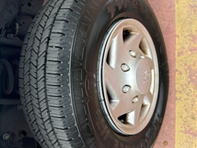 -- INSTALLED FEATURES: Front air conditioning, Front air conditioning zones: single, Front airbags: dual, Antenna type: mast, Auxiliary audio input: jack, Radio: AM/FM, Total speakers: 2, ABS: 4-wheel, Electronic brakeforce distribution, Front brake diameter: 13.0, Front brake type: ventilated disc, Rear brake diameter: 12.9, Rear brake type: ventilated disc, Armrests: front center, Floor material: rubber/vinyl, Ashtray, Cargo area light, Center console: front console with storage, Cupholders: front, Power outlet(s): 12V front, Power steering, Steering wheel: tilt, Storage: door pockets, Axle ratio: 3.73, Alternator: 120 amps, Battery: maintenance-free, Door handle color: black, Front bumper color: black, Mirror color: black, Rear bumper color: black, Rear trunk/liftgate: barn, Side door type: passenger-side hinged swing-out, Clock, Gauge: tachometer, Warnings and reminders: low fuel level, Side mirror adjustments: manual / manual telescoping, OEM roof height: undefined, Front seatbelts: 3-point, Seatbelt pretensioners: front, Driver seat manual adjustments: height, Front seat type: bucket, Passenger seat manual adjustments, Upholstery: vinyl, Roll stability control, Stability control, Traction control, Front shock type: gas, Front spring type: coil, Front stabilizer bar, Front suspension classification: independent, Front suspension type: twin I-beam, Rear shock type: gas, Rear spring type: leaf, Rear suspension classification: solid live axle, Rear suspension type: multi-leaf, Spare tire mount location: underbody, Spare tire size: full-size matching, Spare wheel type: steel, Tire Pressure Monitoring System, Tire type: all season, Wheel covers: full, Wheels: steel, Auxiliary transmission fluid cooler, Front wipers: intermittent, Tinted glass
