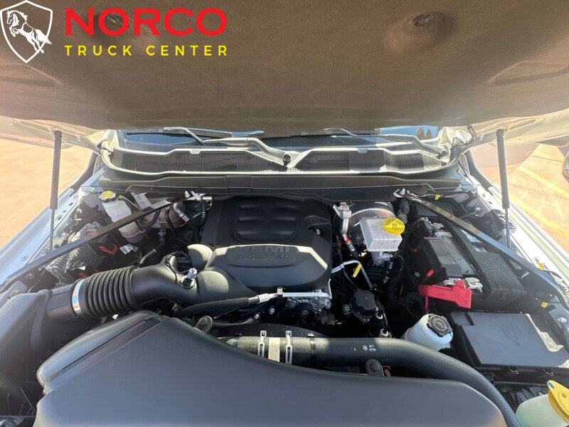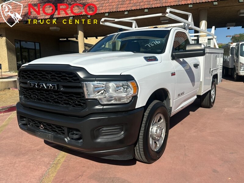 -- INSTALLED FEATURES: Air filtration, Front air conditioning, Front air conditioning zones: single, Airbag deactivation: occupant sensing passenger, Front airbags: dual, Side airbags: front, Side curtain airbags: front, Antenna type: mast, Auxiliary audio input: Bluetooth / USB / jack, Radio: AM/FM / touch screen display / voice operated, Radio data system, Speed sensitive volume control, Total speakers: 4, ABS: 4-wheel, Brake drying, Braking assist, Electronic brakeforce distribution, Emergency braking preparation, Front brake diameter: 14.2, Front brake type: ventilated disc, Front brake width: 1.54, Power brakes, Rear brake diameter: 14.1, Rear brake type: ventilated disc, Rear brake width: 1.34, Armrests: front center, Cargo area floor mat: rubber/vinyl, Door sill trim: scuff plate, Floor material: rubber/vinyl, Steering wheel trim: urethane, Assist handle: front, Cruise control, Cupholders: front, Power outlet(s): 12V front / USB front, Power steering, Push-button start, Reading lights: front, Rearview mirror: manual day/night, Steering wheel: tilt, Steering wheel mounted controls: cruise control / multi-function / phone / voice control, Storage: accessory hook / door pockets, Vanity mirrors: passenger, Axle ratio: 3.73, Alternator: 180 amps, Auxiliary oil cooler, Battery: maintenance-free, Battery rating: 730 CCA, Battery saver, Emissions: 50 state, Active grille shutters, Door handle color: black, Front bumper color: black, Grille color: black / black surround, Headlight bezel color: chrome, Mirror color: black, Pickup bed light: tailgate illumination, Rear bumper color: black, Tailgate: removable, Window trim: black, Infotainment: Uconnect, Infotainment screen size: 5 in., Clock, Compass, Digital odometer, External temperature display, Fuel economy display: MPG / range, Gauge: tachometer, Instrument cluster screen size: 3.5 in., Multi-function display, Powertrain hour meter, Trip odometer, Warnings and reminders: low fuel level / low oil level / maintenance due, Daytime running lights, Headlights: auto delay off / auto on/off / halogen / quad headlights, Side mirror adjustments: manual / manual folding, Camera system: rearview, Child seat anchors: LATCH system, Crumple zones: front, Rearview monitor: in dash, Emergency locking retractors: front, Front seatbelts: 3-point, Seatbelt force limiters: front, Seatbelt pretensioners: front, Seatbelt warning sensor: front, Driver seat manual adjustments: reclining / 4, Front headrests: adjustable / 2, Front seat type: 40-20-40 split bench, Passenger seat manual adjustments: reclining / 4, Upholstery: vinyl, Anti-theft system: vehicle immobilizer, Hill holder control, Roll stability control, Stability control, Traction control, Trailer stability control, Front shock type: gas, Front spring type: coil, Front stabilizer bar, Front suspension classification: solid axle, Front suspension type: multi-link, Rear shock type: gas, Rear spring type: coil, Rear stabilizer bar, Rear suspension classification: solid live axle, Rear suspension type: multi-link, Suspension control: frequency selective, Electronic messaging assistance: voice operated / with read function, Hands-free phone call integration: voice operated, Wireless data link: Bluetooth, Spare tire mount location: underbody, Spare tire size: full-size, Spare wheel type: steel, Tire Pressure Monitoring System, Tire type: all season, Wheels: steel, Auxiliary transmission fluid cooler, Pickup bed cargo management: tie-down anchors, Trailer hitch: Class V, Trailer wiring: 4-pin / 7-pin, Front wipers: variable intermittent, Rear privacy glass, Solar-tinted glass