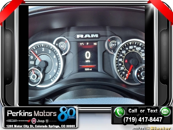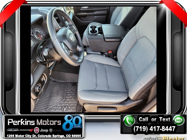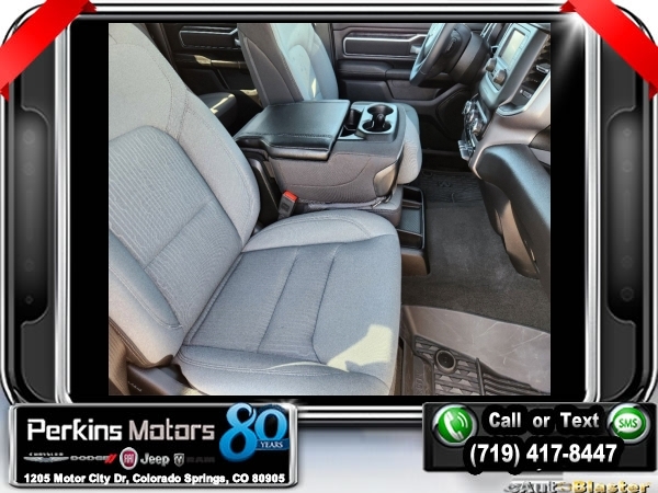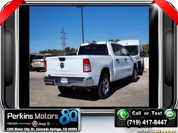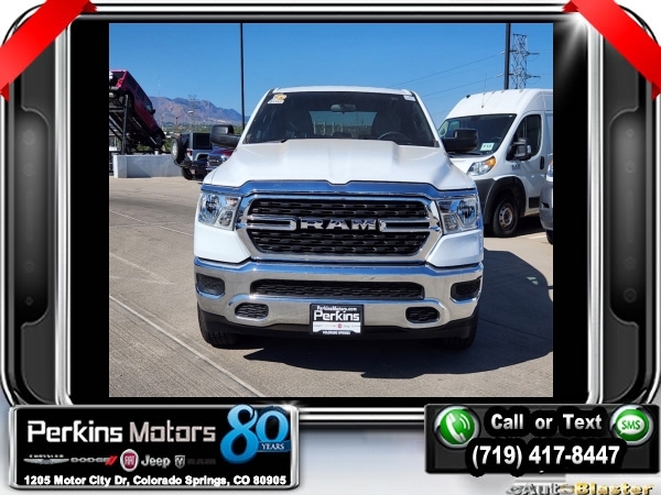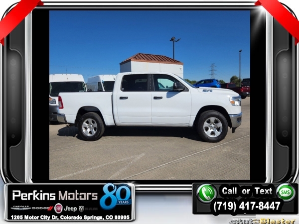 Bright White Clearcoat 4WD 3.6L V6 24V VVT 8-Speed Automatic<br><br><br>CARFAX One-Owner. Clean CARFAX.<br><br>Check us out at www.perkinsmotors.com to see our specials! Since opening our doors in 1944, we’ve been proud to serve Colorado Springs, CO, and the surrounding areas of Pueblo, Castle Rock and Denver, CO. Throughout this time of being family owned for 80 years, we’ve maintained a firm commitment to our customers: to offer a wide selection of New Chrysler, Dodge, Fiat, Jeep, and Ram vehicles and quality pre-owned vehicles, and provide a quick, no-hassle car-buying process that ensures everyone drives off the lot satisfied with their purchase.<br><br><br>Quick Order Package 23Z Big Horn (Big Horn Badge), 115V Auxiliary Power Outlet, 3 Rear Seat Head Restraints, 3.21 Rear Axle Ratio, 4 Way Front Headrests, 4-Wheel Disc Brakes, 48V Belt Starter Generator, 6 Speakers, ABS brakes, Air Conditioning, Alloy wheels, AM/FM radio, Brake assist, Bumpers: chrome, Cloth Bench Seat, Compass, Convex Wide-Angle Exterior Mirror Insert, Cruise Control, Delay-off headlights, Driver door bin, Dual front impact airbags, Dual front side impact airbags, Electronic Stability Control, Emergency communication system: RAM Connect, Exterior Mirrors w/Heating Element, For Details, Visit DriveUconnect.com, Front anti-roll bar, Front Center Armrest w/Storage, Front License Plate Bracket, Front reading lights, Front Seat Back Map Pockets, Front wheel independent suspension, Fully automatic headlights, Global Telematics Box Module (TBM), Heated door mirrors, Illuminated entry, Integrated Voice Command w/Bluetooth, Leather steering wheel, Low tire pressure warning, Manufacturer's Statement of Origin, MOPAR Front & Rear Rubber Floor Mats, Occupant sensing airbag, Outside temperature display, Overhead airbag, Overhead console, Panic alarm, ParkView Rear Back-Up Camera, Passenger door bin, Passenger vanity mirror, Power door mirrors, Power steering, Power windows, Radio data system, Radio: Uconnect 3 w/5 Display, RAM Grille Badge - Chrome, Rear 60/40 Folding Seat, Rear anti-roll bar, Rear seat center armrest, Rear step bumper, Remote keyless entry, Split folding rear seat, Steering wheel mounted audio controls, Tachometer, Telescoping steering wheel, Tilt steering wheel, Traction control, Trip computer, Variably intermittent wipers, Voltmeter, and Wheels: 18 x 8 Cast-Aluminum PainteD.