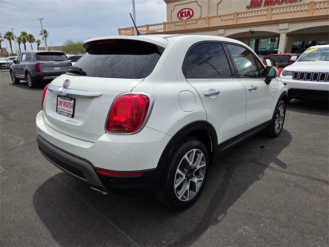 Recent Arrival!Odometer is 40039 miles below market average!22/31 City/Highway MPGWhite 2016 Fiat 500X Trekking FWD 9-Speed 948TE Automatic 2.4L I4 MultiAirIf you don't drive here, you can't save here!Awards: * 2016 IIHS Top Safety Pick+, Top Safety Pick+Price may not include recon fee. 3.734 Final Drive Ratio, 4-Wheel Disc Brakes, 6 Speakers, ABS brakes, Air Conditioning, Alloy wheels, AM/FM radio: SiriusXM, Anti-whiplash front head restraints, Brake assist, Bumpers: body-color, Delay-off headlights, Driver door bin, Driver vanity mirror, Dual front impact airbags, Dual front side impact airbags, Electronic Stability Control, Four wheel independent suspension, Front anti-roll bar, Front Bucket Seats, Front Center Armrest, Front fog lights, Front reading lights, Fully automatic headlights, Heated door mirrors, Illuminated entry, Knee airbag, Leather steering wheel, Low tire pressure warning, Occupant sensing airbag, Outside temperature display, Overhead airbag, Overhead console, Passenger door bin, Passenger vanity mirror, Power door mirrors, Power steering, Power windows, Premium Cloth Bucket Seats, Radio data system, Radio: Uconnect 5.0, Rear anti-roll bar, Rear window defroster, Rear window wiper, Remote keyless entry, Security system, Speed control, Speed-sensing steering, Split folding rear seat, Spoiler, Steering wheel mounted audio controls, Tachometer, Telescoping steering wheel, Tilt steering wheel, Traction control, Trip computer, Turn signal indicator mirrors, Variably intermittent wipers, and Wheels: 17" x 7.0" Aluminum (WFC)