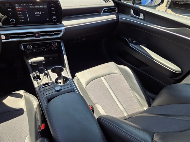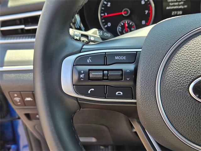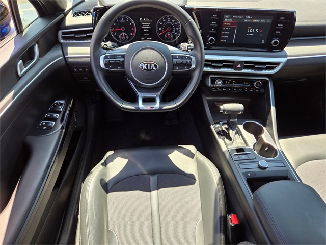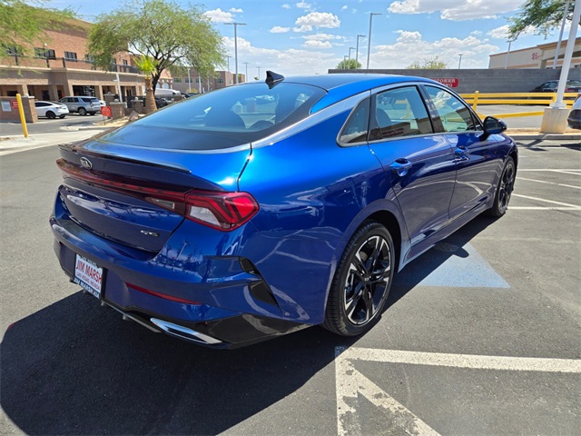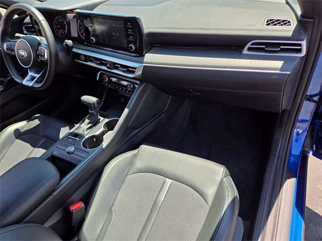 Priced below KBB Fair Purchase Price!Odometer is 23891 miles below market average!Sapphire Blue 2021 Kia K5 GT-Line AWD 8-Speed Automatic 1.6L I4 DGIIf you don't drive here, you can't save here!Price may not include recon fee. 4-Wheel Disc Brakes, 6 Speakers, ABS brakes, Air Conditioning, Alloy wheels, Apple CarPlay & Android Auto, Auto High-beam Headlights, Automatic temperature control, Brake assist, Bumpers: body-color, Cargo Net, Carpeted Floor Mats, Cloth/Leatherette Seat Trim, Delay-off headlights, Driver door bin, Driver vanity mirror, Dual front impact airbags, Dual front side impact airbags, Electronic Stability Control, Four wheel independent suspension, Front anti-roll bar, Front Bucket Seats, Front Center Armrest, Front dual zone A/C, Front fog lights, Front reading lights, Fully automatic headlights, Heated door mirrors, Illuminated entry, Knee airbag, Low tire pressure warning, Occupant sensing airbag, Outside temperature display, Overhead airbag, Overhead console, Panic alarm, Passenger door bin, Passenger vanity mirror, Power door mirrors, Power driver seat, Power steering, Power windows, Radio data system, Rear anti-roll bar, Rear seat center armrest, Rear side impact airbag, Rear window defroster, Remote keyless entry, Security system, Speed control, Speed-sensing steering, Split folding rear seat, Spoiler, Sport steering wheel, Steering wheel mounted audio controls, Tachometer, Telescoping steering wheel, Tilt steering wheel, Traction control, Trip computer, Turn signal indicator mirrors, Variably intermittent wipers, and Wheels: 7.5J x 18" Graphite Machined Finish Alloy.