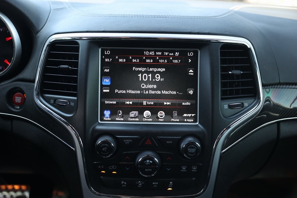BELOW AVERAGE ODOMETER, FRESH OIL CHANGE, NEW FILTERS, NEW WIPERS, Grand Cherokee SRT, 4D Sport Utility, SRT HEMI 6.4L V8 MDS, 8-Speed Automatic, 4WD, 19 Speakers High Performance Audio, 7 & 4 Pin Wiring Harness, 825 Watt Amplifier, Adaptive suspension, Alloy wheels, Class IV Receiver Hitch, Compass, Exterior Parking Camera Rear, Front dual zone A/C, Front fog lights, Heated front seats, Heated rear seats, Knee airbag, Low tire pressure warning, Memory seat, Navigation System, Overhead airbag, Power Liftgate, Spoiler, SRT High Performance Audio, Trailer Tow Group IV, Wheels: 20" x 10.0" Polished 5 Spoke.Clean CARFAX.Awards: * 2014 IIHS Top Safety Pick