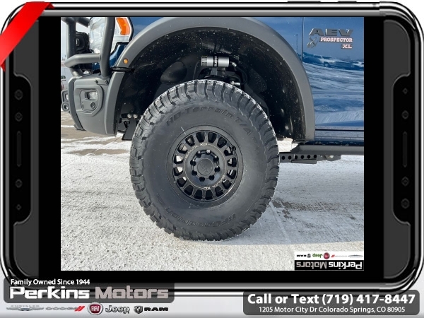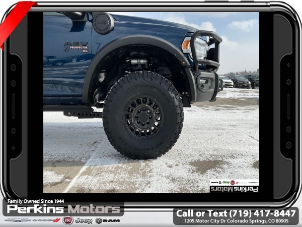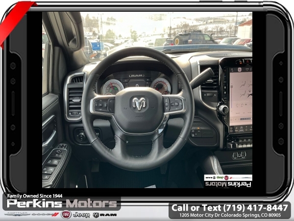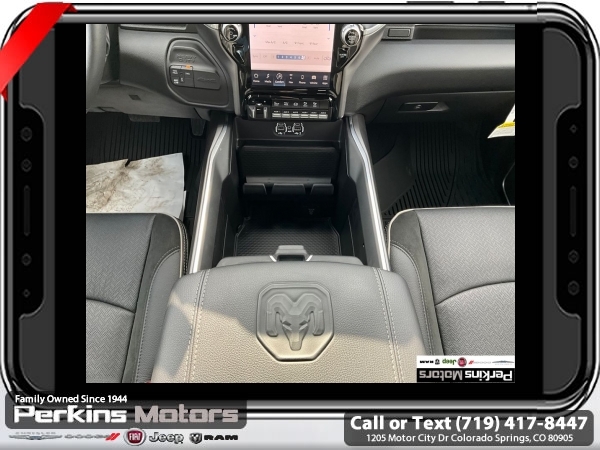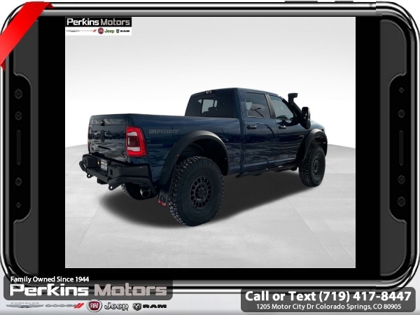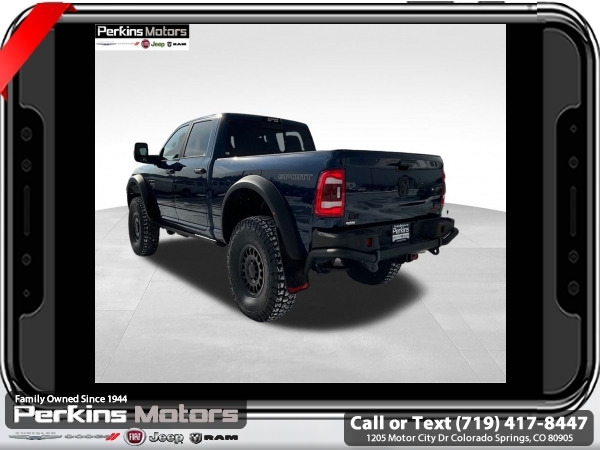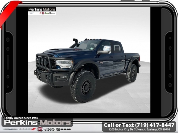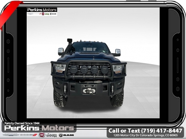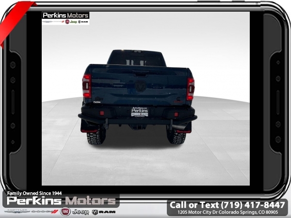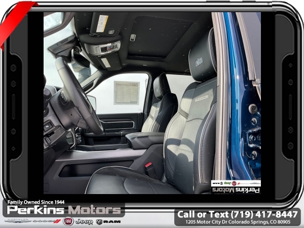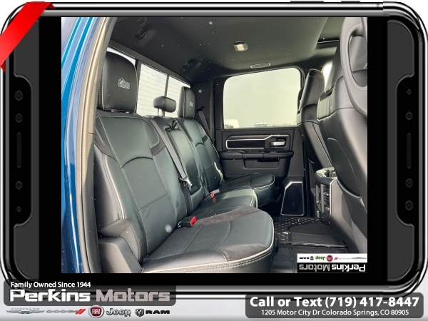 Factory MSRP: $87,115 Patriot Blue Pearlcoat 2024 Ram 3500 Laramie AEV 4WD 6-Speed Automatic Cummins 6.7L I6 Turbodiesel<br><br>Check us out at www.perkinsmotors.com to see our specials! Since opening our doors in 1944, we’ve been proud to serve Colorado Springs, CO, and the surrounding areas of Pueblo, Castle Rock and Denver, CO. Throughout this time of being family owned for 80 years, we’ve maintained a firm commitment to our customers: to offer a wide selection of New Chrysler, Dodge, Fiat, Jeep, and Ram vehicles and quality pre-owned vehicles, and provide a quick, no-hassle car-buying process that ensures everyone drives off the lot satisfied with their purchase.<br><br>Bed Utility Group (LED Bed Lighting, MOPAR Deployable Bed Step, and MOPAR Spray In Bedliner), Laramie Level 1 Equipment Group (12 Touchscreen Display, 18 x 8 Polished Aluminum Wheels, 4G LTE Wi-Fi Hot Spot, Alexa Built-In, Apple CarPlay, Auto Dimming Exterior Passenger Mirror, Blind Spot & Cross Path Detection, Center Hub, Connected Travel & Traffic Services, Connectivity - US/Canada, Disassociated Touchscreen Display, Exterior Mirrors Courtesy Lamps, Exterior Mirrors w/Heating Element, Exterior Mirrors w/Supplemental Signals, Foam Bottle Insert (Door Trim Panel), For Details Visit DriveUconnect.com, For More Info, Call 800-643-2112, Front LED Fog Lamps, Global Telematics Box Module (TBM), Google Android Auto, GPS Antenna Input, GPS Navigation, HD Radio, Integrated Voice Command w/Bluetooth, LED Reflector Headlamps, Mirror Running Lights, Off-Road Information Pages, ParkSense Front/Rear Park Assist System, Power Adjust Mirrors, Power Adjustable Pedals w/Memory, Power Heat Fold Memory Telescopic Mirrors, Power Telescoping Mirrors, Power-Adjustable Convex Aux Mirrors, Radio: Uconnect 5 Nav w/12.0 Display, Selectable Tire Fill Alert, SiriusXM Radio Service, SiriusXM w/360L, and Trailer Tow Pages), Protection Group, Quick Order Package 2HH Laramie, Safety Group (Adaptive Cruise Control w/Stop, Adaptive Steering System, and Full Speed Forward Collision Warning Plus), Snow Chief Group (Auxiliary Switches Prep, Clearance Lamps, and I/P Mounted Auxiliary Switches), Sport Appearance Package (20 x 8 Polished Aluminum Wheels, Sport Decal, and Sport Performance Hood), 10 Speakers, 115V Auxiliary Rear Power Outlet, 2 Way Rear Headrest Seat, 220 Amp Alternator, 3.73 Axle Ratio, 4 Way Front Headrests, 4-Wheel Disc Brakes, 5th Wheel/Gooseneck Towing Prep Group, 8.4 Touchscreen Display, ABS brakes, Active Noise Control System, Air Conditioning, Alloy wheels, AM/FM radio: SiriusXM with 360L, Apple CarPlay/Android Auto, Auto Level Rear Air Suspension, Auto-dimming Rear-View mirror, Automatic temperature control, Brake assist, Bumpers: body-color, Compass, Cruise Control, CTR Stop Lamp w/Cargo View Camera, Delay-off headlights, Driver door bin, Driver vanity mirror, Dual Alternators Rated At 440 Amps, Dual front impact airbags, Dual front side impact airbags, Electronic Stability Control, Electronically Controlled Throttle, Folding Flat Load Floor Storage, Front anti-roll bar, Front Center Armrest w/Storage, Front dual zone A/C, Front License Plate Bracket, Front reading lights, Front Seat Back Map Pockets, Fully automatic headlights, Garage door transmitter, Heated door mirrors, Heated Front Seats, Heated front seats, Heated Steering Wheel, Heated steering wheel, High Back Seats, Illuminated entry, Integrated Center Stack Radio, Leather steering wheel, Leather Trim 40/20/40 Bench Seat, Low tire pressure warning, Manufacturer's Statement of Origin, MOPAR Front & Rear Rubber Floor Mats, Navigation System, Occupant sensing airbag, Outside temperature display, Overhead airbag, Overhead console, Panic alarm, ParkView Sale price includes all manufacture's incentives and dealer discounts. Sale price not available on lease or compatible with special APR. $7542 - 2024 National Minimum Employee Pricing Discount . Exp. 06/02/2025 Price includes $45,000 in dealer added a