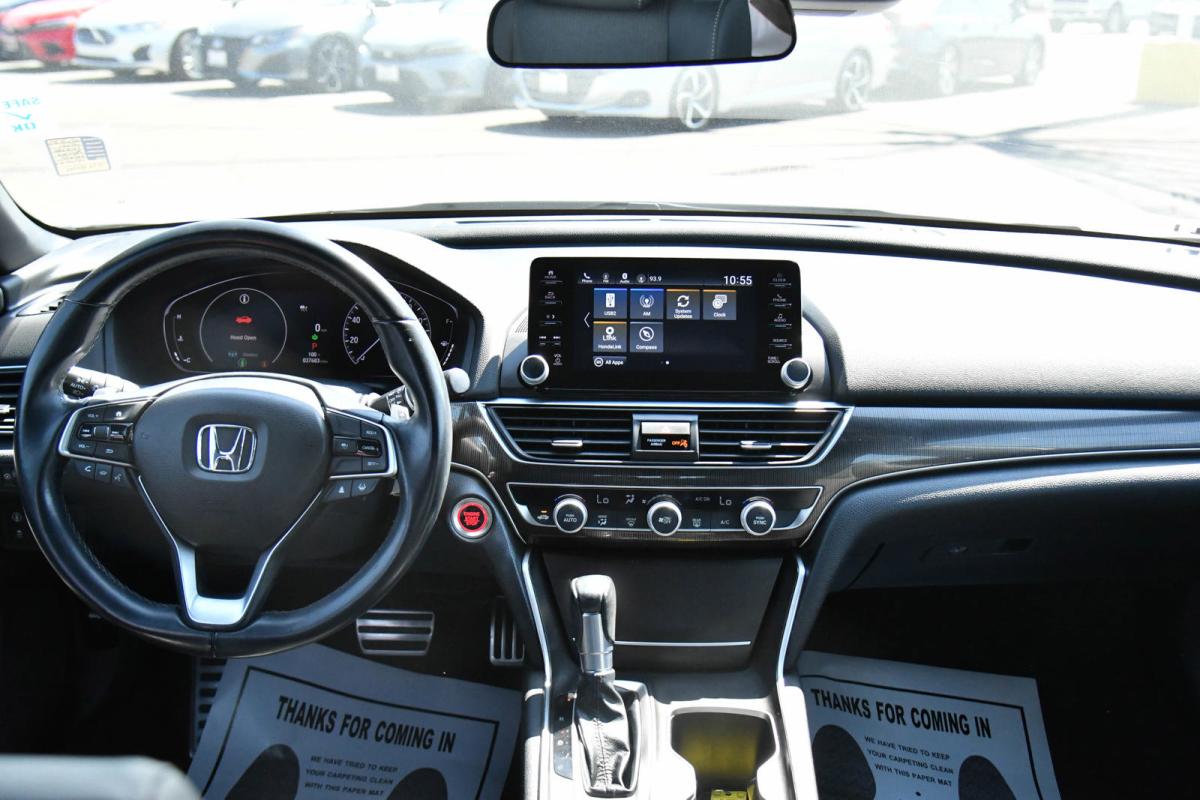 Delivers 35 Highway MPG and 29 City MPG! This Honda Accord Sedan boasts a Intercooled Turbo Regular Unleaded I-4 1.5 L/91 engine powering this Variable transmission. Wheels: 19 Machine-Finished Alloy w/Black Inserts, Vehicle Stability Assist (VSA) Electronic Stability Control (ESC), Valet Function.*This Honda Accord Sedan Features the Following Options *Trunk Rear Cargo Access, Trip Computer, Transmission: Continuously Variable -inc: sport mode and paddle shifters, Tires: 235/40R19 AS, Strut Front Suspension w/Coil Springs, Steel Spare Wheel, Speed Sensitive Variable Intermittent Wipers, Side Impact Beams, Seats w/Leatherette Back Material, Remote Releases -Inc: Power Cargo Access.