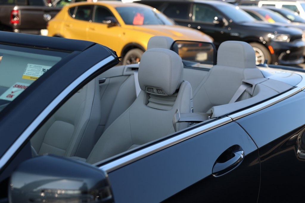 BELOW AVERAGE ODOMETER, FRESH OIL CHANGE, NEW FILTERS, NEW WIPERS, E 550, 2D Convertible, 4.7L V8 DGI DOHC 32V Twin Turbocharged, 7-Speed Automatic, RWD, 18" AMG® Twin 5-Spoke Alloy Wheels, 8 Speakers, Active Cruise Control, Auto tilt-away steering wheel, Auto-dimming door mirrors, Auto-dimming Rear-View mirror, CD player, Convertible roof lining, DVD-Audio, Front dual zone A/C, Heated front seats, Knee airbag, Leather Upholstery, Low tire pressure warning, Memory seat, Power driver seat, Radio: COMAND® AM/FM/WB/In-Dash DVD/CD Player, Security system, Steering wheel mounted audio controls.Awards: * 2013 IIHS Top Safety Pick