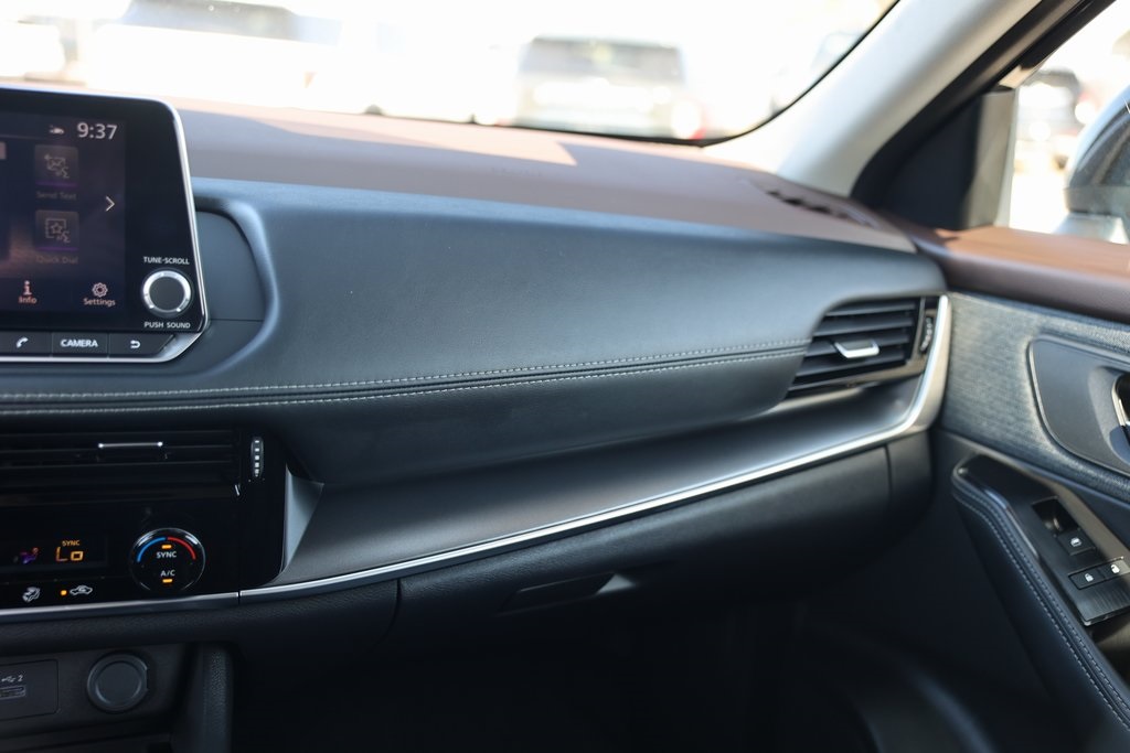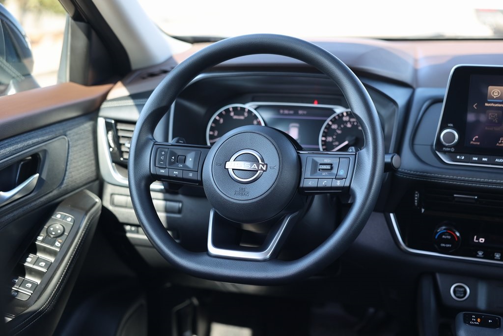 Super Black 2023 Nissan Rogue SV FWD CVT with Xtronic 1.5L I3 Turbocharged DOHC 12V LEV3-ULEV50 201hp 18" Aluminum Alloy Wheels, 6 Speakers, Air Conditioning, Brake assist, Electronic Stability Control, Fully automatic headlights, NissanConnect featuring Apple CarPlay and Android Auto, Power driver seat, Radio data system, Rear Parking Sensors, Spoiler.Odometer is 13384 miles below market average! 30/37 City/Highway MPG