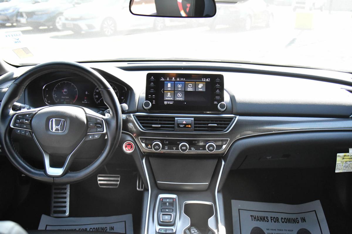 Delivers 32 Highway MPG and 22 City MPG! This Honda Accord Sedan boasts a Intercooled Turbo Regular Unleaded I-4 2.0 L/122 engine powering this Automatic transmission. Wheels: 19 Machine-Finished Alloy w/Black Inserts, Vehicle Stability Assist (VSA) Electronic Stability Control (ESC), Valet Function.*This Honda Accord Sedan Comes Equipped with These Options *Trunk Rear Cargo Access, Trip Computer, Transmission: 10-Speed Automatic -inc: Shift-By-Wire (SBW), paddle shifters and sport mode indicator, Transmission w/Driver Selectable Mode, Tires: 235/40R19 AS, Strut Front Suspension w/Coil Springs, Steel Spare Wheel, Speed Sensitive Variable Intermittent Wipers, Side Impact Beams, Seats w/Leatherette Back Material.