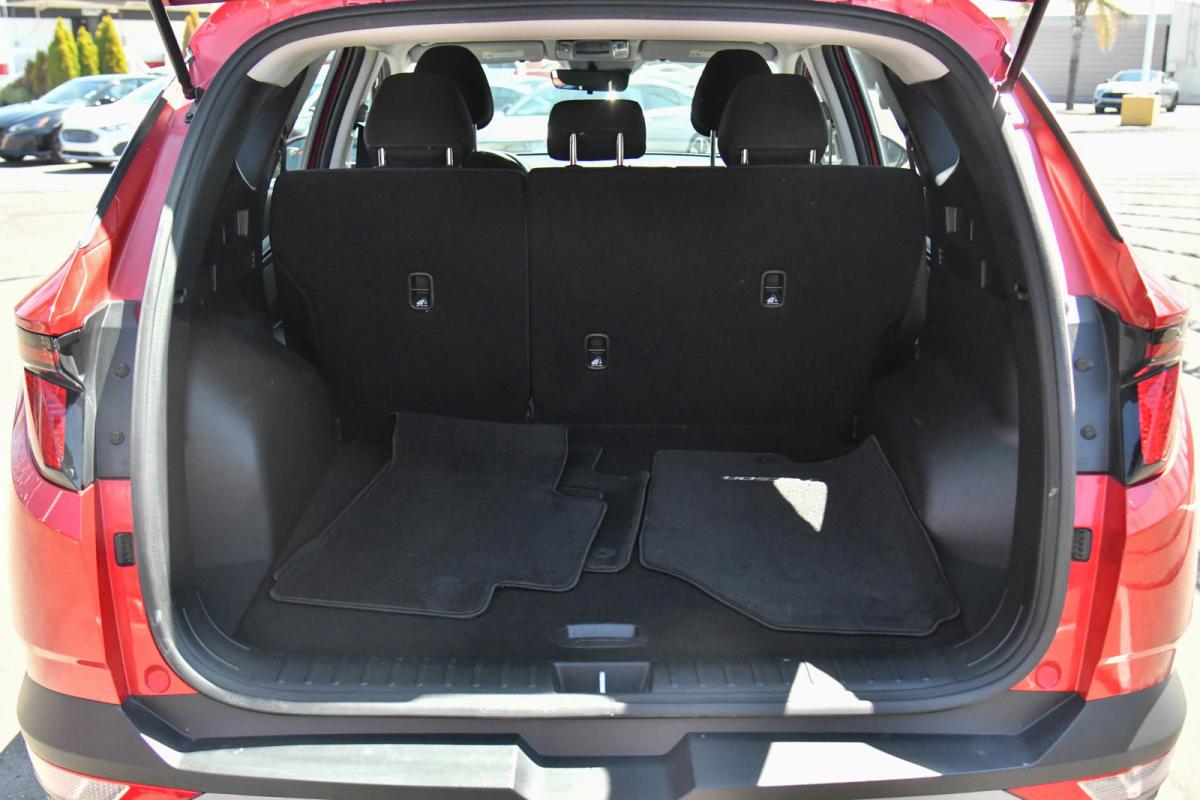 Delivers 33 Highway MPG and 26 City MPG! This Hyundai Tucson boasts a Regular Unleaded I-4 2.5 L/152 engine powering this Automatic transmission. OPTION GROUP 01 -inc: standard equipment, FRONT AND REAR MUDGUARDS, CARPETED FLOOR MATS.*This Hyundai Tucson Comes Equipped with These Options *CARGO TRAY, CARGO NET, CARGO COVER, CALYPSO RED, BLACK, STAIN & ODOR RESISTANT CLOTH SEAT TRIM, Wheels: 17 x 7.0J Alloy, Variable Intermittent Wipers, Urethane Gear Shifter Material, Trip Computer, Transmission: 8-Speed Automatic w/SHIFTRONIC -inc: drive mode select.