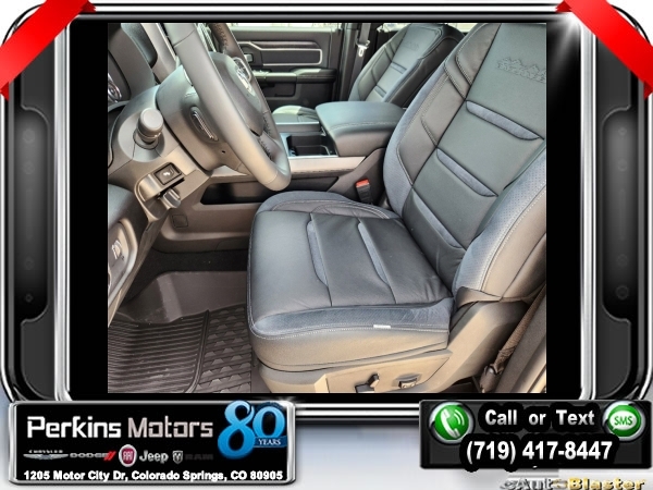 Factory MSRP: $77,150 Diamond Black Crystal Pearlcoat 2024 Ram 2500 Big Horn 4WD 6-Speed Automatic Cummins 6.7L I6 Turbodiesel<br>BADLANDER SUSPENSION LIFT.<br>Check us out at www.perkinsmotors.com to see our specials! Since opening our doors in 1944, we’ve been proud to serve Colorado Springs, CO, and the surrounding areas of Pueblo, Castle Rock and Denver, CO. Throughout this time of being family owned for 80 years, we’ve maintained a firm commitment to our customers: to offer a wide selection of New Chrysler, Dodge, Fiat, Jeep, and Ram vehicles and quality pre-owned vehicles, and provide a quick, no-hassle car-buying process that ensures everyone drives off the lot satisfied with their purchase.<br><br>Bed Utility Group (LED Bed Lighting, MOPAR Deployable Bed Step, and MOPAR Spray In Bedliner), Cold Weather Group (Engine Block Heater and MOPAR Winter Front Grille Cover), Level 2 Equipment Group (115V Auxiliary Front Power Outlet, 12 Touchscreen Display, 2 Way Rear Headrest Seat, 2nd Row In Floor Storage Bins, 4 Way Front Headrests, 40/20/40 Split Bench Seat, 400W Inverter, 4G LTE Wi-Fi Hot Spot, Air Conditioning ATC w/Dual Zone Control, Alexa Built-In, All R1 High Radios, All Radio Equipped Vehicles, Apple CarPlay, Auto Power-Folding Mirrors, Big Horn IP Badge, Black Exterior Mirrors, Blind Spot & Cross Path Detection, Center Hub, Cluster 7.0 TFT Color Display, Connected Travel & Traffic Services, Connectivity - US/Canada, Dampened Tailgate, Disassociated Touchscreen Display, Dual Glove Boxes, Exterior 115V AC Outlet, Exterior Mirrors Courtesy Lamps, Exterior Mirrors w/Heating Element, Exterior Mirrors w/Supplemental Signals, Foam Bottle Insert (Door Trim Panel), Footwell Courtesy Lamp, For Details, Visit DriveUconnect.com, For More Info, Call 800-643-2112, Forward & Reverse Utility Lights, Front Armrest w/Cupholders, Front Center Seat Cushion Storage, Front Fog Lamps, Front Seat Back Map Pockets, Global Telematics Box Module (TBM), Glove Box Lamp, Google Android Auto, GPS Antenna Input, GPS Navigation, HD Radio, Heated Front Seats, Heated Steering Wheel, Integrated Voice Command w/Bluetooth, Leather Wrapped Steering Wheel, LED Tail Lamps, Locking Lower Glove Box, Manual Adjust 4-Way Front Passenger Seat, Media Hub w/2 Charge Only USBs, Mirror Running Lights, Off-Road Information Pages, ParkSense Front/Rear Park Assist System, Power 2-Way Driver Lumbar Adjust, Power Adjust 8-Way Driver Seat, Power Adjust Mirrors, Power Adjustable Convex Aux Mirrors, Power Adjustable Pedals, Power Heated Fold Telescope Mirrors, Power Telescoping Mirrors, Premium Cloth 40/20/40 Bench Seat, Radio: Uconnect 5 Nav w/12.0 Display, Rear 60/40 Folding Seat, Rear Dome w/On/Off Switch Lamp, Rear Power Sliding Window, Rear Window Defroster, Remote Start System, Remote USB Port - Charge Only, Security Alarm, Selectable Tire Fill Alert, SiriusXM Radio Service, SiriusXM w/360L, Steering Wheel Mounted Audio Controls, Storage Tray, Sun Visors w/Illuminated Vanity Mirrors, Trailer Tow Pages, Universal Garage Door Opener, and Wheels: 18 x 8.0 Polished Aluminum), Premium Lighting Group (Front LED Fog Lamps and LED Reflector Headlamps), Protection Group (Tow Hooks), Quick Order Package 2HZ Big Horn, Sport Appearance Package (Black Interior Accents, Body Color Door Handles, Body Color Grille Surround, Painted Front Bumper, Painted Rear Bumper, and Sport Decal), 220 Amp Alternator, 3.73 Axle Ratio, 4-Wheel Disc Brakes, 5th Wheel/Gooseneck Towing Prep Group, 6 Speakers, 9 Alpine Speakers w/Subwoofer, ABS brakes, Active Noise Control System, Air Conditioning, Anti-Spin Differential Rear Axle, Bluetooth Handsfree Phone & Audio, Brake assist, Bumpers: chrome, Center Stack Storage Drawer, Clearance Lamps, Cloth 40/20/40 Bench Seat, Compa Sale price includes all manufacture's incentives and dealer discounts. Sale price not available on lease or compatible with special APR. $1000 - 2024 Bonus Cash . Exp. 02/03/2025 Price includes $26,955 in dealer added a