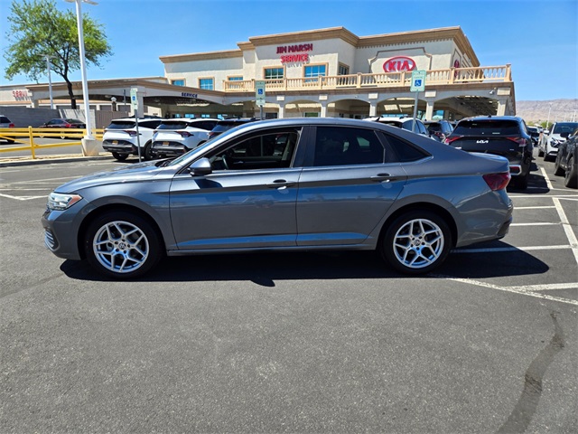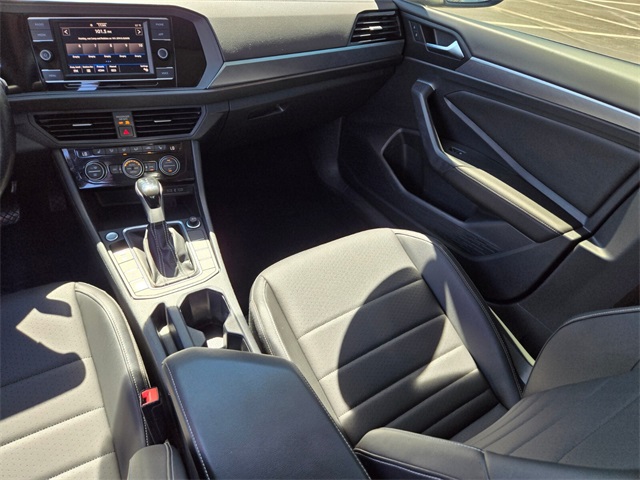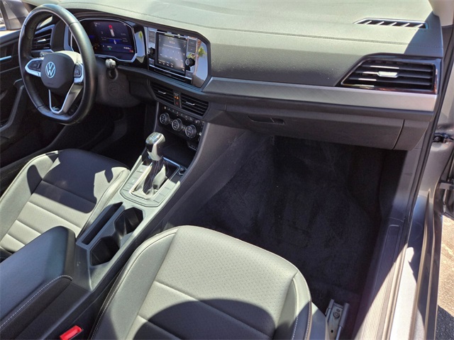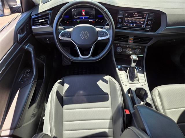 29/40 City/Highway MPG2022 Volkswagen Jetta 1.5T SE FWD 8-Speed Automatic with Tiptronic 1.5L I-4 DI DOHC TurbochargedIf you don't drive here, you can't save here!Price may not include recon fee. 4 Speakers, 4-Wheel Disc Brakes, ABS brakes, Active Blind Spot Monitor, Air Conditioning, Alloy wheels, AM/FM radio, Auto-dimming Rear-View mirror, Automatic temperature control, Brake assist, Bumpers: body-color, Delay-off headlights, Driver door bin, Driver vanity mirror, Dual front impact airbags, Dual front side impact airbags, Electronic Stability Control, Emergency communication system: Car-Net, Exterior Parking Camera Rear, Front anti-roll bar, Front Bucket Seats, Front Center Armrest, Front dual zone A/C, Front wheel independent suspension, Fully automatic headlights, Heated door mirrors, Heated Front Comfort Sport Seats, Heated front seats, Illuminated entry, Leather Shift Knob, Low tire pressure warning, Occupant sensing airbag, Outside temperature display, Overhead airbag, Overhead console, Panic alarm, Passenger door bin, Passenger vanity mirror, Power door mirrors, Power driver seat, Power steering, Power windows, Radio data system, Radio: MIB3 Composition Color w/6.5" Touchscreen, Rain sensing wipers, Rear anti-roll bar, Rear reading lights, Rear seat center armrest, Rear window defroster, Remote keyless entry, Speed control, Speed-sensing steering, Split folding rear seat, Steering wheel mounted audio controls, Tachometer, Telescoping steering wheel, Tilt steering wheel, Traction control, Trip computer, V-Tex Leatherette Seat Trim, Variably intermittent wipers, and Wheels: 17" Twin 5-Spoke Silver Painted Alloy.