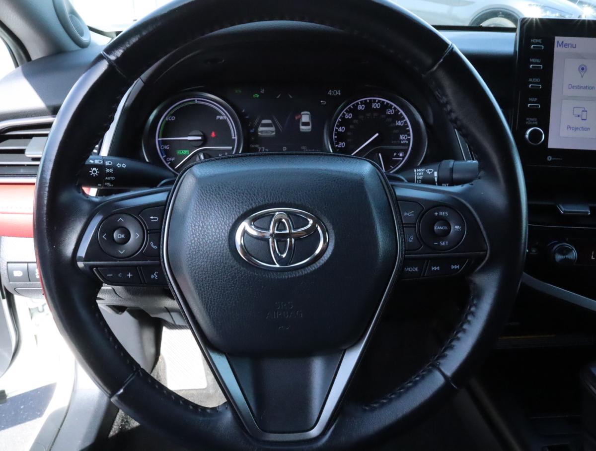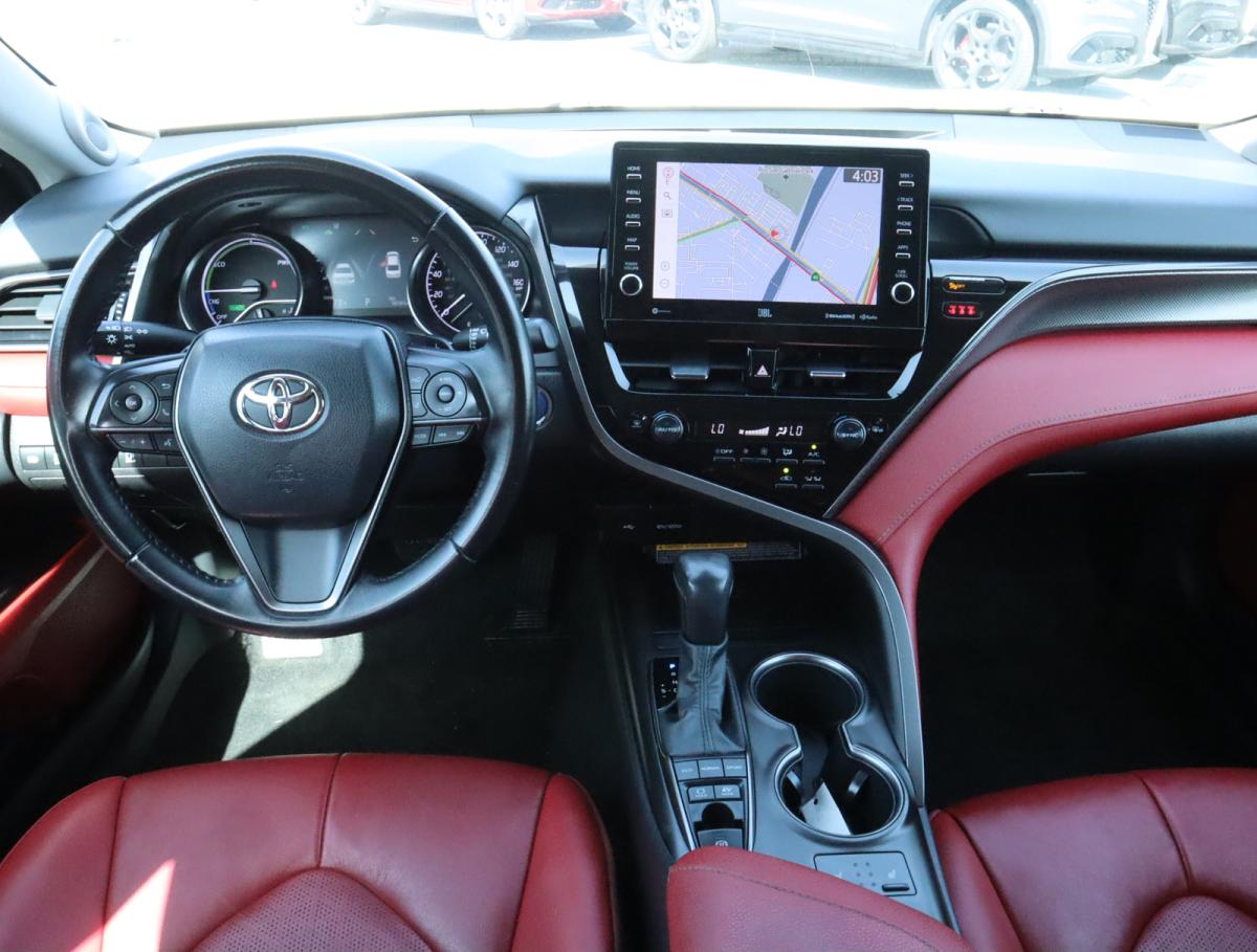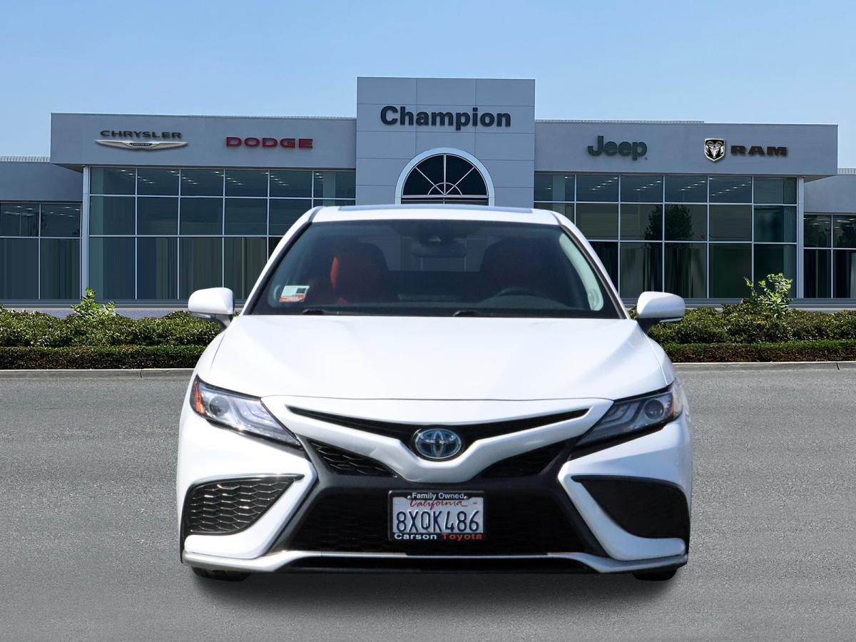 CARFAX One-Owner. Clean CARFAX. Camry Hybrid XSE, 4D Sedan, 2.5L I4 DOHC 16V, eCVT, FWD, Cockpit Red Leather, 6 Speakers, Alloy wheels, AM/FM radio: SiriusXM, Apple CarPlay/Android Auto, Auto High-beam Headlights, Brake assist, Bumpers: body-color, Delay-off headlights, Electronic Stability Control, Emergency communication system: Safety Connect with 1-year trial, Exterior Parking Camera Rear, Four wheel independent suspension, Front Bucket Seats, Front dual zone A/C, Fully automatic headlights, Illuminated entry, Remote keyless entry, Speed control, Spoiler, Steering wheel mounted audio controls, Variably intermittent wipers, Wheels: 8.0J x 19 Machined Finish Alloy. 44/47 City/Highway MPG<br><br>At Champion Chrysler Dodge Jeep Ram we want you to know that all our vehicles are priced at a competitive value position to the market. We use an independent 3rd party software to research internet listings on all vehicles in the market so we can ensure that our prices are the most competitive out there. We do this simply so people choose us when they start searching for their next car.<br><br><br>Here at Champion CDJR we take our Internet Business Very Seriously!<br><br>Shopping at Champion is car buying the way it should be; Fun, Informative, and Fair! Here are our promises:<br><br>* Transparent Pricing and Sales Process- NO GIMMICKS!!<br>*Pressure Free , Efficient, Friendly, and Helpful Sales Staff!<br>*In House Team of Loan and Lease Specialists! Good with numbers, and even better with people! Credit Challenged? Give us a try!<br>* Free Car Washes with any Service!<br>* Massive Inventory For One Stop Shopping!<br>* Certified Factory Service Technicians!<br><br>Champion Chrysler Dodge Jeep Ram has always been locally owned and operated. We live in and support the Orange County Area. We have a very large New and Used car Inventory and 1,000's of Satisfied Customers. But don't take our word for it, see for yourself why by coming in today, or check us out online to see our 5 star google reviews.