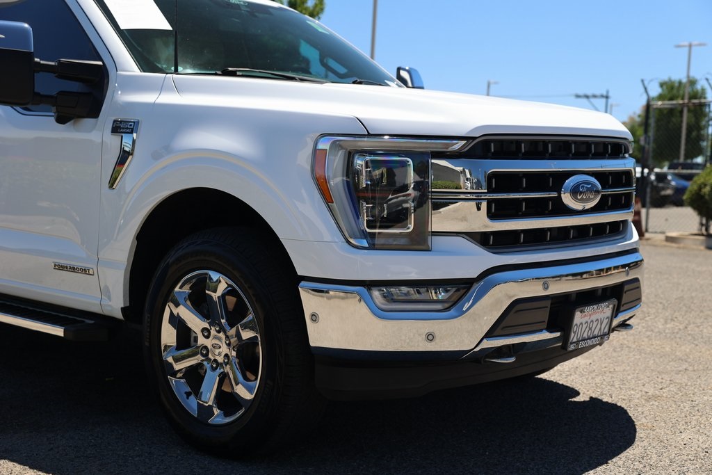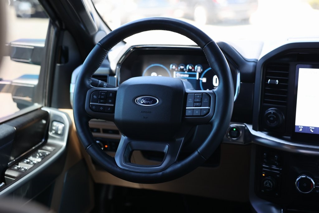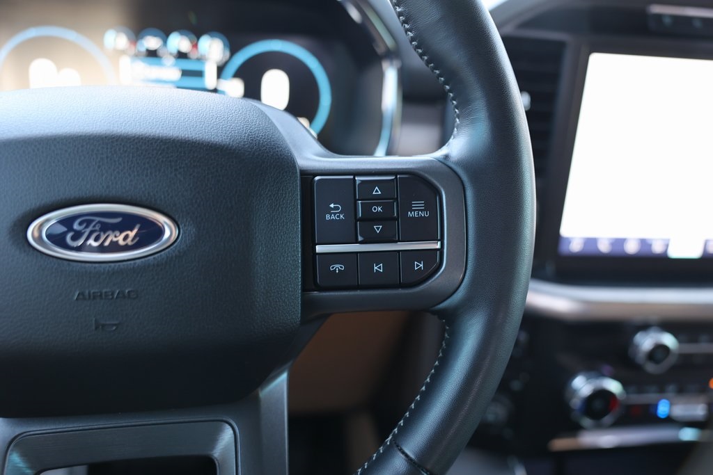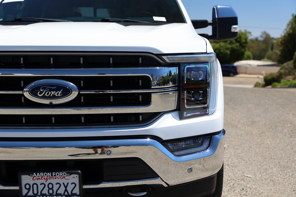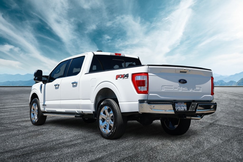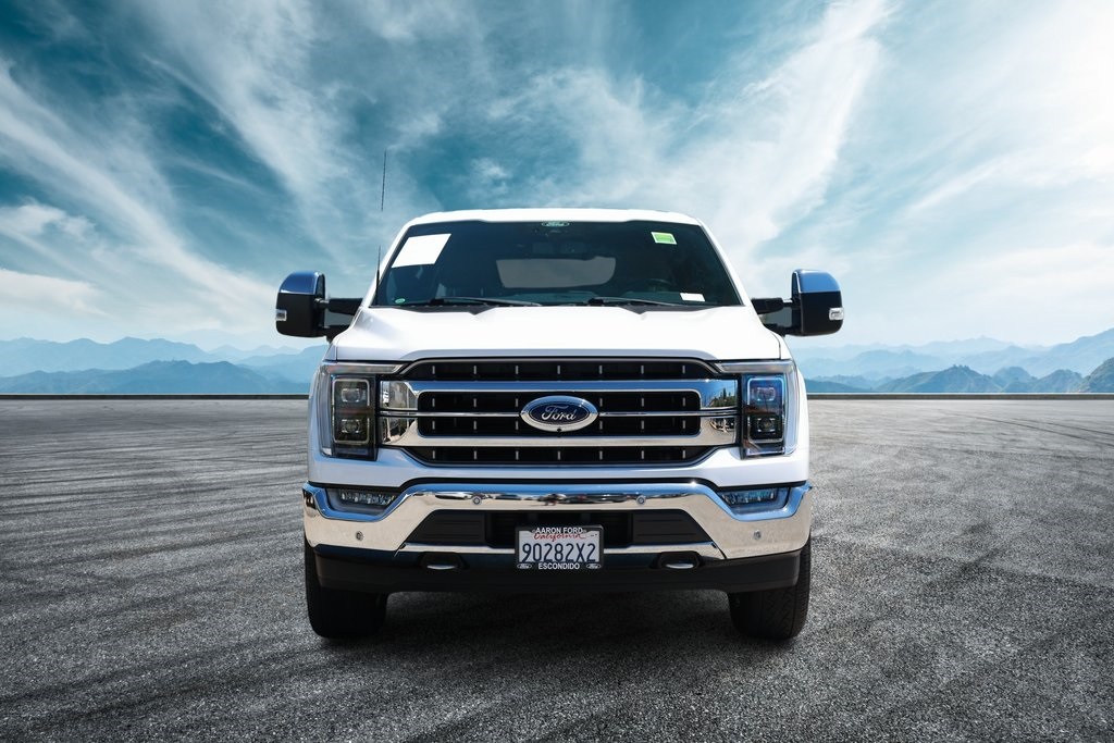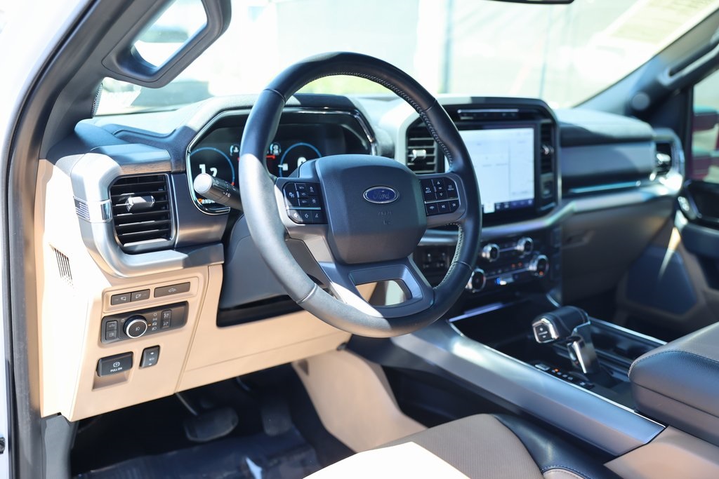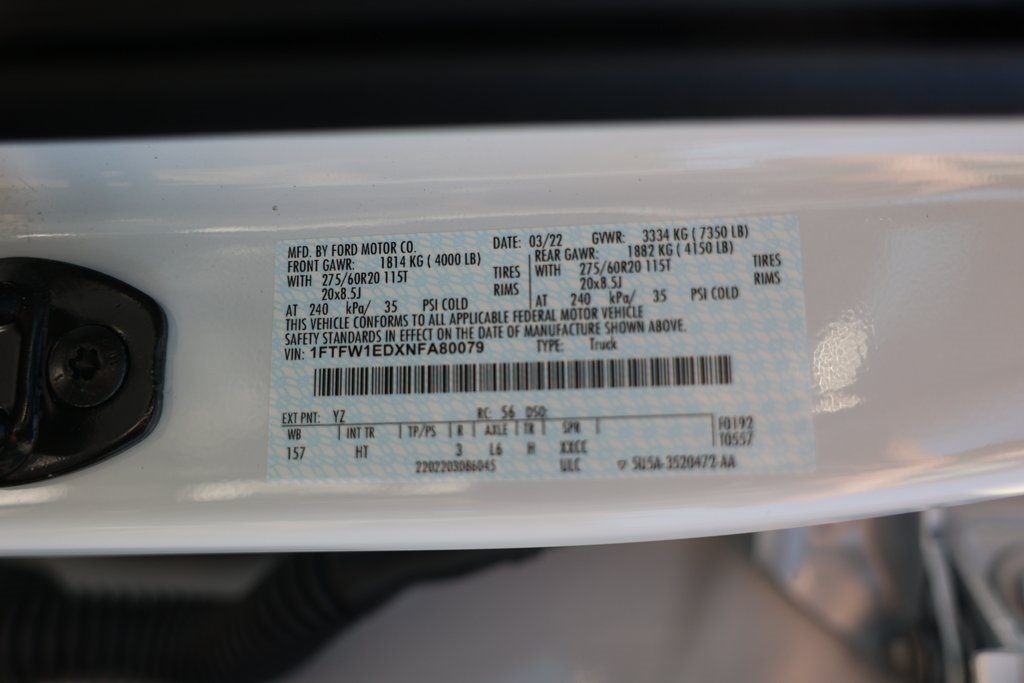 Oxford White 2022 Ford F-150 Lariat 4WD 10-Speed Automatic 3.5L PowerBoost Full-Hybrid V6 3.5L PowerBoost Full-Hybrid V6, 4WD, 2nd Row Heated Seats, 6" Bright Polished Running Board, ABS brakes, Active Park Assist 2.0, Air Conditioning, Alloy wheels, BlueCruise, Brake assist, Chrome 2-Bar Grille w/4 Minor Bars, Chrome Door & Tailgate Handles w/Body-Color Bezel, Chrome Single-Tip Exhaust, Chrome Skull Caps on Exterior Mirrors, Class IV Trailer Hitch Receiver, Compass, Connected Built-In Navigation, Electronic Stability Control, Equipment Group 502A High, Evasive Steering Assist, Extended Range 36 Gallon Fuel Tank, Exterior Parking Camera Rear, Ford Co-Pilot360 Active 2.0, Ford Co-Pilot360 Assist 2.0 (DISC), Front dual zone A/C, Fully automatic headlights, Heated door mirrors, Heated front seats, Heated Steering Wheel, Illuminated entry, Integrated Trailer Brake Controller, Intelligent Adaptive Cruise Control w/Stop & Go, Intersection Assist, Lariat Chrome Appearance Package, Leather-Trimmed Bucket Seats, LED Projector w/Dynamic Bending Headlamps, Low tire pressure warning, Max Trailer Tow Package, Memory seat, Onboard 400W Outlet, Pedal memory, Power Glass Sideview Mirr w/Chrome Skull Caps, Power Tilt/Telescoping Steering Column w/Memory, Pro Trailer Backup Assist, Radio: B&O Sound System by Bang & Olufsen, Rain-Sensing Wipers, Remote keyless entry, Speed Sign Recognition, SYNC 4 w/Enhanced Voice Recognition, Traction control, Universal Garage Door Opener, Wheels: 18" Chrome-Like PVD, Wireless Charging Pad.Recent Arrival!