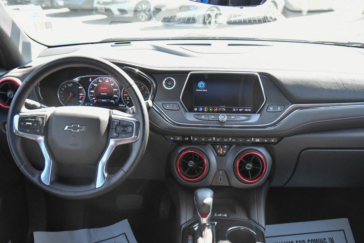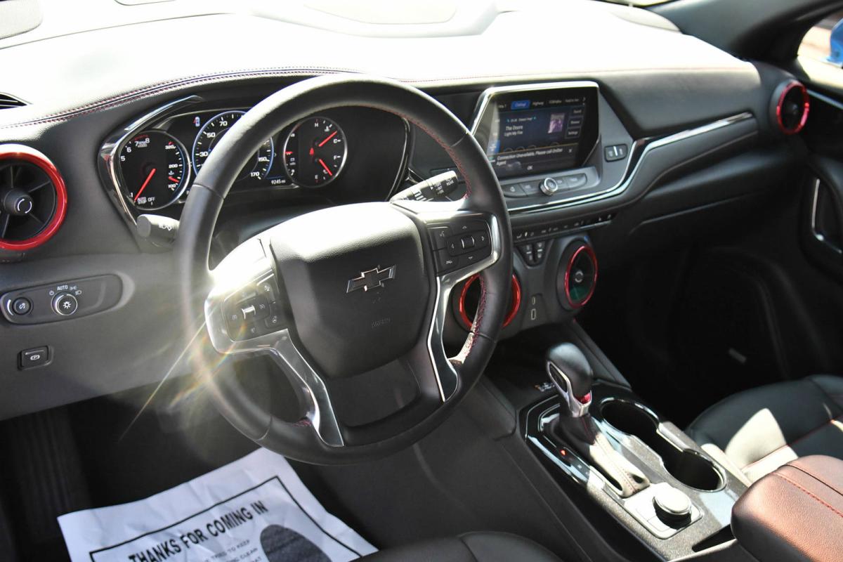 Only 9,232 Miles! Scores 27 Highway MPG and 20 City MPG! This Chevrolet Blazer boasts a Gas V6 3.6L/ engine powering this Automatic transmission. WIRELESS CHARGING, WHEELS, 21 (53.3 CM) GLOSS BLACK ALUMINUM, TRANSMISSION, 9-SPEED AUTOMATIC, ELECTRONICALLY-CONTROLLED with overdrive, includes Driver Shift Control (STD).*This Chevrolet Blazer Features the Following Options *LICENSE PLATE FRONT MOUNTING PACKAGE (will be forced on orders with ship-to states that require a front license plate), ENHANCED CONVENIENCE PACKAGE includes (UQA) Bose premium 8-speaker system, (AAB) memory settings, (KA6) rear outboard heated seats, (KU9) driver and front passenger ventilated seats and (N38) power tilt and telescoping steering column, DRIVER CONFIDENCE II PACKAGE includes (K4C) Wireless Charging, (UV2) HD Surround Vision, (DRZ) Rear Camera Mirror, (KSG) Adaptive Cruise Control, (UGN) Enhanced Automatic Emergency Braking, (HS1) Safety Alert Seat and (T4L) LED headlamps , TIRES, P265/45R21 ALL-SEASON BLACKWALL, SUNROOF, POWER PANORAMIC, TILT-SLIDING WITH POWER SUNSHADE, STEERING COLUMN, POWER TILT AND TELESCOPING, SEATS, VENTILATED DRIVER AND FRONT PASSENGER, SEATS, HEATED, REAR OUTBOARD SEATING POSITIONS, SEATS, FRONT BUCKETS (STD), SAFETY ALERT SEAT.