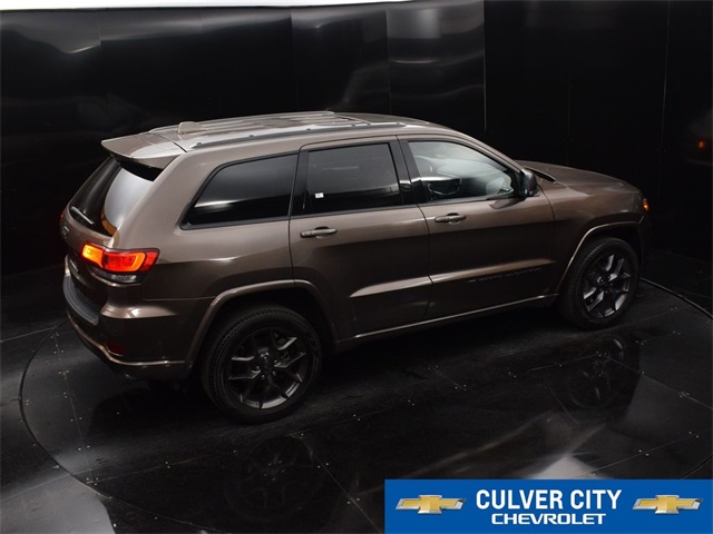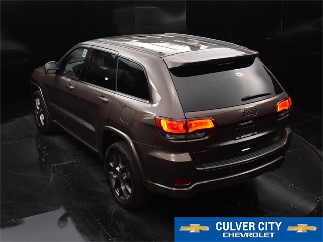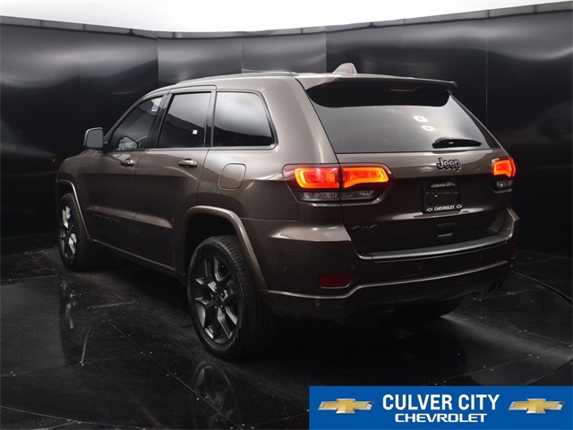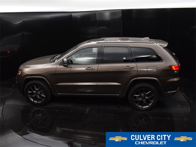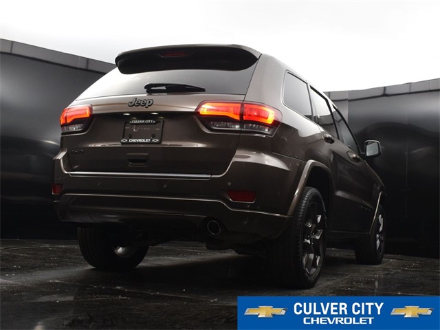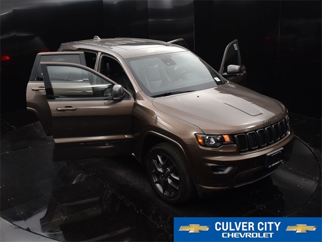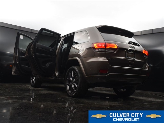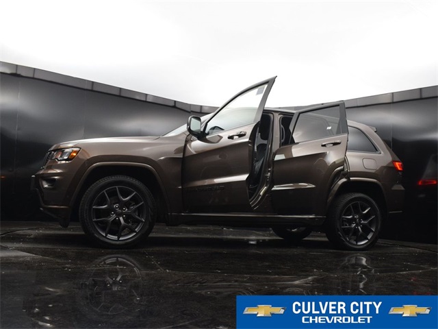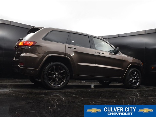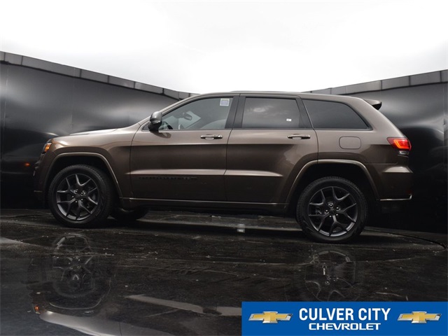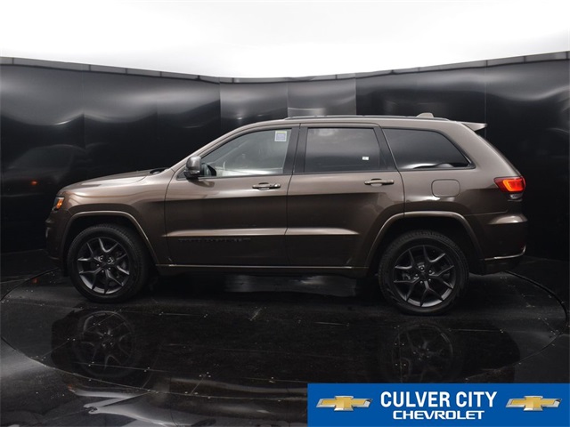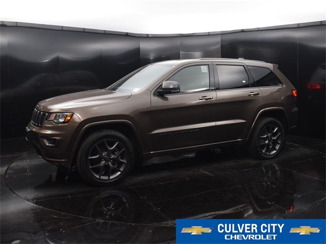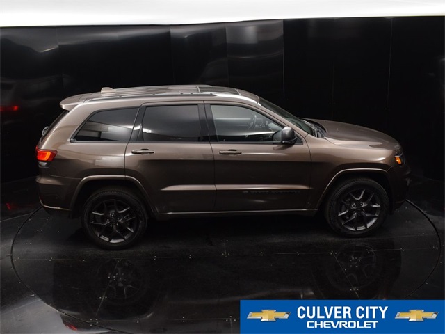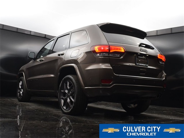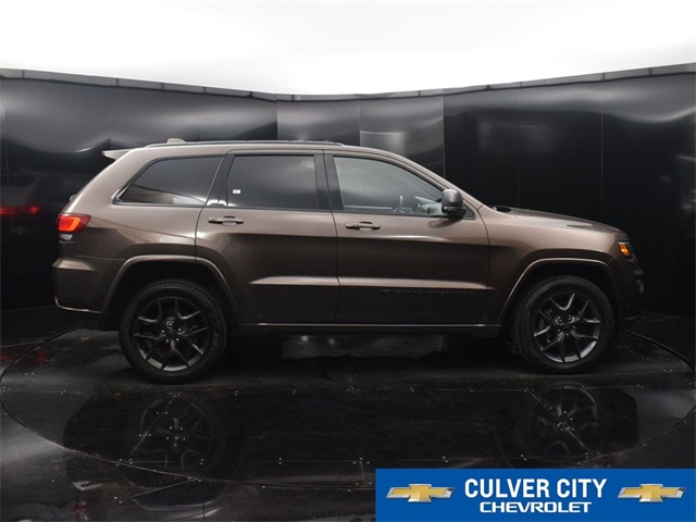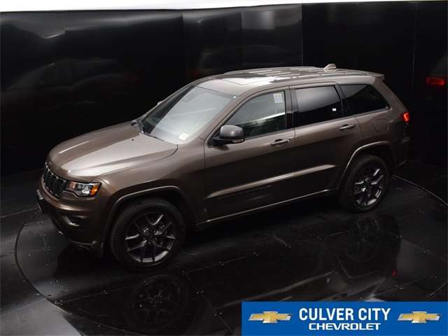 This 2021 Jeep Grand Cherokee 80th Anniversary Edition is a special edition SUV that combines luxury, performance, and heritage in one refined package. Powered by a 3.6L V6 engine producing 295 horsepower, it offers a powerful yet smooth driving experience, whether on highways or off-road trails. This anniversary model stands out with unique 80th Anniversary badging, 20-inch wheels, and a range of premium features such as leather-trimmed seats, a panoramic sunroof, and an 8.4-inch touchscreen infotainment system with Apple CarPlay and Android Auto. Inside, the cabin exudes luxury with heated front and rear seats, a heated steering wheel, and advanced safety features like blind-spot monitoring, lane-keeping assist, and forward collision warning. Celebrating Jeep's legacy, this 2021 Grand Cherokee 80th Anniversary Edition delivers rugged capability with a touch of elegance and cutting-edge technology.At Culver City Chevrolet, our entire team works together to provide you with the ultimate Chevrolet shopping experience. We are family owned and operated, so we treat you just like you are part of our family. We are also very passionate about serving the community in which we work, live and play! From the Little League teams we support, to the next customer that walks in the door, we are committed to doing the right thing. Our goal is to exceed your expectations, deliver the best service possible, and make car shopping fun again. We offer a large inventory of Chevrolet cars, trucks, SUVs and electric vehicles, and an incredible lineup of luxury vehicles for sale as well! Just find the specific vehicle that fits your needs and schedule your test drive by calling 424-216-6027 today. We provide plenty of buying and leasing options for drivers in the Los Angeles area. WE LOOK FORWARD TO BEING THE NEW AND USED CHEVROLET VEHICLE SOURCE FOR YOU IN CULVER CITY!Priced below KBB Fair Purchase Price! 2021 Jeep Grand Cherokee 80th Anniversary Edition Walnut Brown Metallic Clearcoat 3.6L V6 24V VVT 18/25 City/Highway MPG KBB Fair Market Range Low: $31,333CARFAX One-Owner. Odometer is 15987 miles below market average!GPS Tracking System-S.W.A.T. $1995, 4 doors, Alloy Wheels, Android Auto, Apple CarPlay/Android Auto, Automatic, Automatic Parking, Backup Camera, Bluetooth, Brake Assist, CarPlay, Cruise Control, Four-Wheel Drive, Heated Seats, Heated Steering Wheel, Keyless Entry, Lane Departure Warning, Leather Seats, Memory Seat, Multi Zone Climate Control, Navigation System, Parking Sensors, Power Liftgate, Premium Sound System, Rain Sensing Wipers, Satellite Radio, Security System, Stability Control, Steering Wheel Controls, Sunroof/Moonroof, USB Port, 4WD.