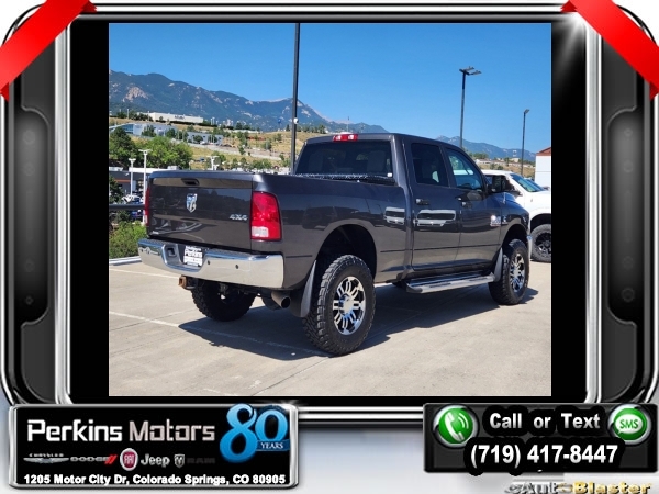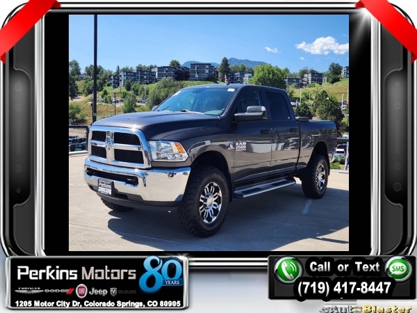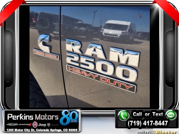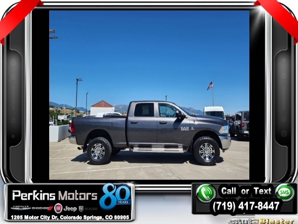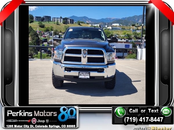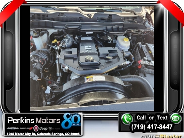 Granite Crystal Metallic Clearcoat 4WD Cummins 6.7L I6 Turbodiesel 6-Speed Automatic<br><br>3.73 Axle Ratio, 5th Wheel/Gooseneck Towing Prep Group, Bright Front Bumper, Bright Grille, Bright Rear Bumper, Carpet Floor Covering, Chrome Appearance Group, Cold Weather Group, Engine Block Heater, Front & Rear Floor Mats, Popular Equipment Group, Protection Group, Quick Order Package 2FA Tradesman, Remote Keyless Entry, SiriusXM Satellite Radio, Wheels: 18 x 8.0 Steel Chrome Clad, Winter Front Grille Cover.<br><br><br>Clean CARFAX.<br><br>Check us out at www.perkinsmotors.com to see our specials! Since opening our doors in 1944, we’ve been proud to serve Colorado Springs, CO, and the surrounding areas of Pueblo, Castle Rock and Denver, CO. Throughout this time of being family owned for 80 years, we’ve maintained a firm commitment to our customers: to offer a wide selection of New Chrysler, Dodge, Fiat, Jeep, and Ram vehicles and quality pre-owned vehicles, and provide a quick, no-hassle car-buying process that ensures everyone drives off the lot satisfied with their purchase.<br><br><br>Chrome Appearance Group (Bright Front Bumper, Bright Grille, Bright Rear Bumper, and Wheels: 18 x 8.0 Steel Chrome Clad), Cold Weather Group (Engine Block Heater and Winter Front Grille Cover), Popular Equipment Group (Carpet Floor Covering, Front & Rear Floor Mats, Remote Keyless Entry, and SiriusXM Satellite Radio), Protection Group, Quick Order Package 2FA Tradesman, 3.73 Axle Ratio, 5th Wheel/Gooseneck Towing Prep Group, 17 x 7.5 Steel Styled Wheels, 180 Amp Alternator, 4-Wheel Disc Brakes, 40/20/40 Split Bench Seat, 5.0 Touchscreen Display, 6 Speakers, ABS brakes, Air Conditioning, AM/FM radio, Anti-Spin Differential Rear Axle, Auto-dimming Rear-View mirror, Black Exterior Mirrors, Brake assist, Center Hub, Charge Only Remote USB Port, Cruise Control, Delay-off headlights, Driver door bin, Dual front impact airbags, Dual front side impact airbags, Electric Shift-On-The-Fly Transfer Case, Electronic Stability Control, Electronically Controlled Throttle, Exterior Mirrors w/Heating Element, Exterior Mirrors w/Supplemental Signals, Front anti-roll bar, Front Center Armrest, Fully automatic headlights, GPS Antenna Input, Heated door mirrors, Heavy Duty Vinyl 40/20/40 Split Bench Seat, Hemi Badge, Integrated Voice Command w/Bluetooth, Locking Tailgate, Low tire pressure warning, Manual Adjust Seats, Manufacturer's Statement of Origin, Media Hub (USB, AUX), Next Generation Engine Controller, Occupant sensing airbag, Overhead airbag, ParkSense Rear Park Assist System, ParkView Rear Back-Up Camera, Passenger door bin, Power Black Trailer Tow Mirrors, Power door mirrors, Power steering, Power windows, Radio data system, Radio: 3.0, Radio: Uconnect 3 w/5 Display, Rear Folding Seat, Rear step bumper, Rear View Day/Night Mirror, Storage Tray, Tachometer, Temperature & Compass Gauge, Tilt steering wheel, Tip Start, Traction control, Trailer Brake Control, Variably intermittent wipers, Vendor Painted Cargo Box Tracking, and Voltmeter.
