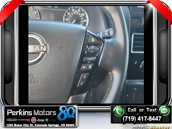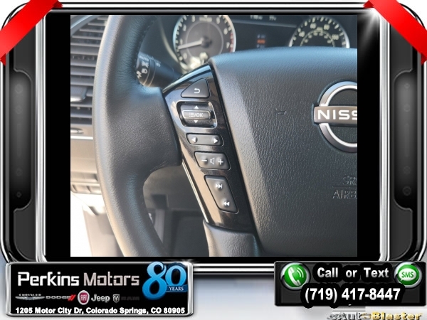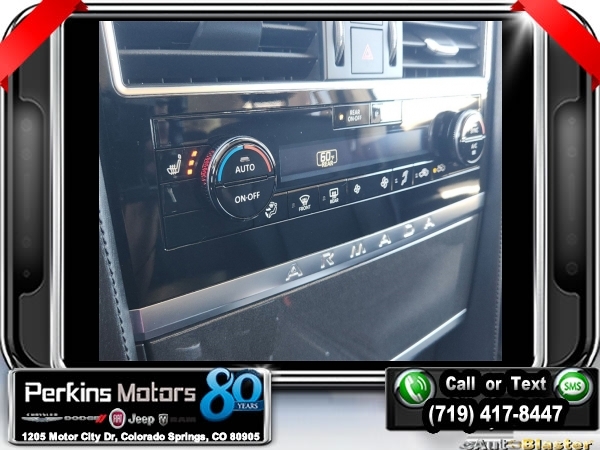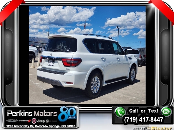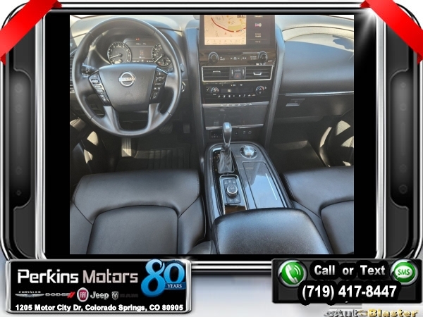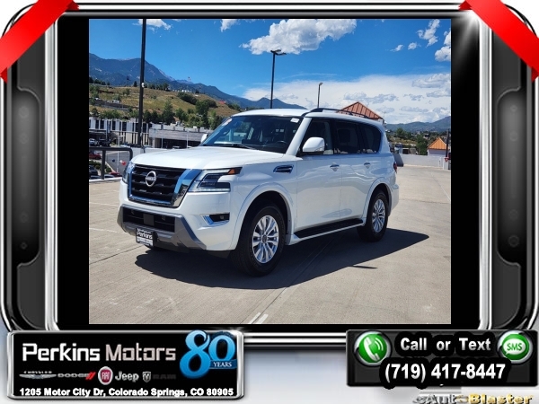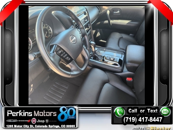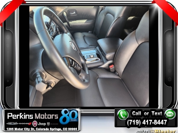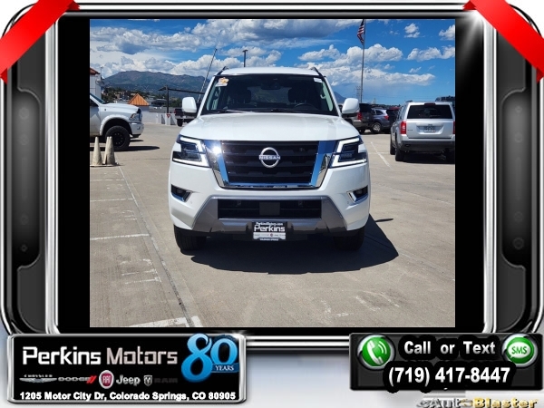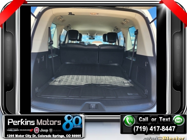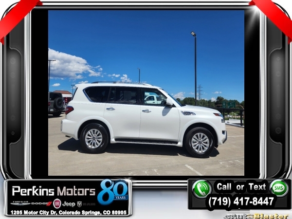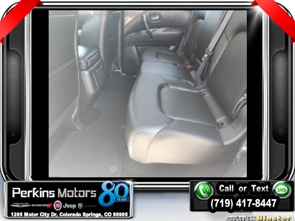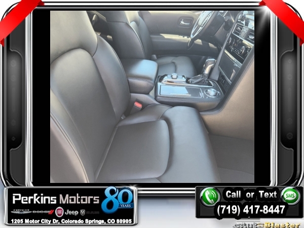 Aspen White Tricoat 4WD 5.6L V8 DOHC 32V LEV3-ULEV125 400hp 7-Speed Automatic<br><br>4WD, Auto-leveling suspension, Automatic temperature control, Brake assist, Cargo Package, Front dual zone A/C, Heated Front Bucket Seats, Leatherette Seat Trim, Navigation System, Radio: NissanConnect w/SiriusXM, Rear air conditioning.<br><br><br>Clean CARFAX.<br><br>Check us out at www.perkinsmotors.com to see our specials! Since opening our doors in 1944, we’ve been proud to serve Colorado Springs, CO, and the surrounding areas of Pueblo, Castle Rock and Denver, CO. Throughout this time of being family owned for 80 years, we’ve maintained a firm commitment to our customers: to offer a wide selection of New Chrysler, Dodge, Fiat, Jeep, and Ram vehicles and quality pre-owned vehicles, and provide a quick, no-hassle car-buying process that ensures everyone drives off the lot satisfied with their purchase.<br><br><br>Cargo Package, 4WD, Auto-leveling suspension, Automatic temperature control, Brake assist, Front dual zone A/C, Heated Front Bucket Seats, Leatherette Seat Trim, Navigation System, Radio: NissanConnect w/SiriusXM, Rear air conditioning, 18 x 8J Alloy Wheels, 2.94 Axle Ratio, 3rd Row Carpeted Floor Mats - Bench Seat, 3rd row seats: split-bench, 4-Wheel Disc Brakes, 6 Speakers, ABS brakes, Air Conditioning, Alloy wheels, AM/FM radio: SiriusXM, Anti-whiplash front head restraints, Auto High-beam Headlights, Auto tilt-away steering wheel, Auto-dimming Rear-View mirror, Bumpers: body-color, Cruise Control, Delay-off headlights, Driver door bin, Driver vanity mirror, Dual front impact airbags, Dual front side impact airbags, Electronic Stability Control, Emergency communication system: NissanConnect Services, Four wheel independent suspension, Front anti-roll bar, Front Bucket Seats, Front Center Armrest, Front fog lights, Front reading lights, Fully automatic headlights, Garage door transmitter, Heated door mirrors, Heated front seats, Illuminated entry, Knee airbag, Leather Shift Knob, Low tire pressure warning, Nissan USB Charging Cable Set, NissanConnect featuring Apple CarPlay and Android Auto, Occupant sensing airbag, Outside temperature display, Overhead airbag, Overhead console, Panic alarm, Passenger door bin, Passenger vanity mirror, Power door mirrors, Power driver seat, Power passenger seat, Power steering, Power windows, Rear anti-roll bar, Rear reading lights, Rear seat center armrest, Rear window defroster, Rear window wiper, Reclining 3rd row seat, Remote keyless entry, Roof rack: rails only, Security system, Speed-sensing steering, Speed-Sensitive Wipers, Split folding rear seat, Spoiler, Steering wheel mounted audio controls, Tachometer, Telescoping steering wheel, Tilt steering wheel, Traction control, Trip computer, Turn signal indicator mirrors, Variably intermittent wipers, and Voltmeter.