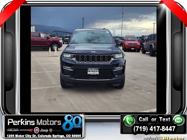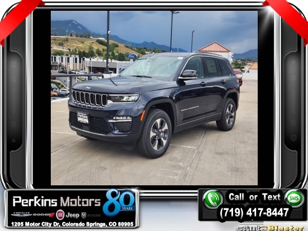 Factory MSRP: $62,880 $15,500 off MSRP! Priced below KBB Fair Purchase Price! Midnight Sky 2024 Jeep Grand Cherokee Base 4xe 4WD 8-Speed Automatic 2.0L I4 DOHC<br>2.0L I4 DOHC, 4WD, ABS brakes, Adaptive Cruise Control, Alloy wheels, Compass, Electronic Stability Control, Front dual zone A/C, Heated door mirrors, Heated front seats, Heated rear seats, Illuminated entry, Low tire pressure warning, Navigation System, ParkView Rear Back-Up Camera, Power Liftgate, Power moonroof, Remote keyless entry, Traction control.<br>Check us out at www.perkinsmotors.com to see our specials! Since opening our doors in 1944, we’ve been proud to serve Colorado Springs, CO, and the surrounding areas of Pueblo, Castle Rock and Denver, CO. Throughout this time of being family owned for 80 years, we’ve maintained a firm commitment to our customers: to offer a wide selection of New Chrysler, Dodge, Fiat, Jeep, and Ram vehicles and quality pre-owned vehicles, and provide a quick, no-hassle car-buying process that ensures everyone drives off the lot satisfied with their purchase.<br><br>2.0L I4 DOHC, 4WD, ABS brakes, Adaptive Cruise Control, Alloy wheels, Compass, Electronic Stability Control, Front dual zone A/C, Heated door mirrors, Heated front seats, Heated rear seats, Illuminated entry, Low tire pressure warning, Navigation System, ParkView Rear Back-Up Camera, Power Liftgate, Power moonroof, Remote keyless entry, Traction control, 10 Speakers, 3.70 Rear Axle Ratio, 4-Wheel Disc Brakes, Air Conditioning, AM/FM radio: SiriusXM with 360L, Anti-whiplash front head restraints, Audio memory, Auto High-beam Headlights, Automatic temperature control, Brake assist, Bumpers: body-color, Capri Leatherette Seats, Cruise Control, Delay-off headlights, Driver door bin, Driver vanity mirror, Dual front impact airbags, Dual front side impact airbags, Four wheel independent suspension, Front anti-roll bar, Front Bucket Seats, Front Center Armrest w/Storage, Front fog lights, Front reading lights, Fully automatic headlights, Garage door transmitter, Heated steering wheel, Heavy Duty Suspension, Knee airbag, Memory seat, Occupant sensing airbag, Outside temperature display, Overhead airbag, Overhead console, Panic alarm, Passenger door bin, Passenger vanity mirror, Power door mirrors, Power driver seat, Power passenger seat, Power steering, Power windows, Radio data system, Radio: Uconnect 5 Nav w/10.1 Display, Rear anti-roll bar, Rear reading lights, Rear window defroster, Rear window wiper, Roof rack: rails only, Security system, Speed-Sensitive Wipers, Split folding rear seat, Spoiler, Steering wheel mounted audio controls, Tachometer, Telescoping steering wheel, Tilt steering wheel, Trip computer, Turn signal indicator mirrors, Variably intermittent wipers, Voltmeter, and Wheels: 18 x 8 Fully Painted Aluminum. Sale price includes all manufacture's incentives and dealer discounts. Sale price not available on lease or compatible with special APR. $3750 - Federal EV Tax Credit. Exp. 12/31/2024 $7500 - 2024 National Retail Consumer Cash . Exp. 10/31/2024