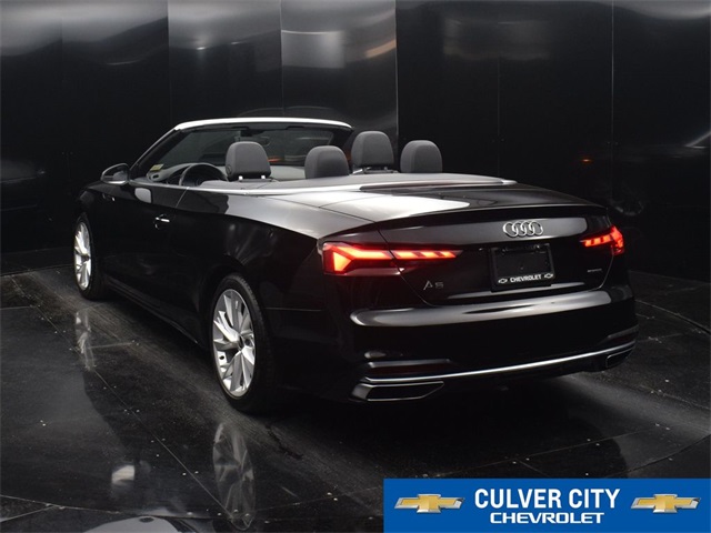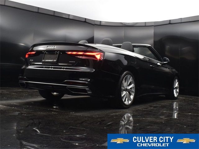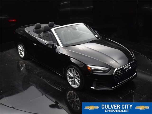 Recent Arrival!Experience luxury and performance with this stunning black 2022 Audi A5 45 Premium quattro convertible. Featuring a sleek, eye-catching design and equipped with a 7-Speed Automatic S tronic transmission, this convertible offers a smooth, responsive driving experience. The sophisticated quattro all-wheel drive ensures exceptional handling and stability, while the premium interior provides a blend of comfort and style with high-quality materials and advanced technology. Whether cruising with the top down or enjoying a spirited drive, this Audi A5 combines elegance and performance in a truly captivating package.At Culver City Chevrolet, our entire team works together to provide you with the ultimate Chevrolet shopping experience. We are family owned and operated, so we treat you just like you are part of our family. We are also very passionate about serving the community in which we work, live and play! From the Little League teams we support, to the next customer that walks in the door, we are committed to doing the right thing. Our goal is to exceed your expectations, deliver the best service possible, and make car shopping fun again. We offer a large inventory of Chevrolet cars, trucks, SUVs and electric vehicles, and an incredible lineup of luxury vehicles for sale as well! Just find the specific vehicle that fits your needs and schedule your test drive by calling 424-216-6027 today. We provide plenty of buying and leasing options for drivers in the Los Angeles area. WE LOOK FORWARD TO BEING THE NEW AND USED CHEVROLET VEHICLE SOURCE FOR YOU IN CULVER CITY!2022 Audi A5 45 Premium quattro Brilliant Black/Black Roof quattro 2.0L 4-Cylinder TFSI 23/31 City/Highway MPG 23/31 City/Highway MPG KBB Fair Market Range Low: $31,804CARFAX One-Owner.Convertible, quattro, Black Leather, ABS brakes, Alloy wheels, Compass, Electronic Stability Control, Front Bucket Seats, Front Center Armrest, Front dual zone A/C, Heated door mirrors, Heated Front Bucket Seats, Heated front seats, Illuminated entry, Low tire pressure warning, Power passenger seat, Remote keyless entry, Split folding rear seat, Traction control.