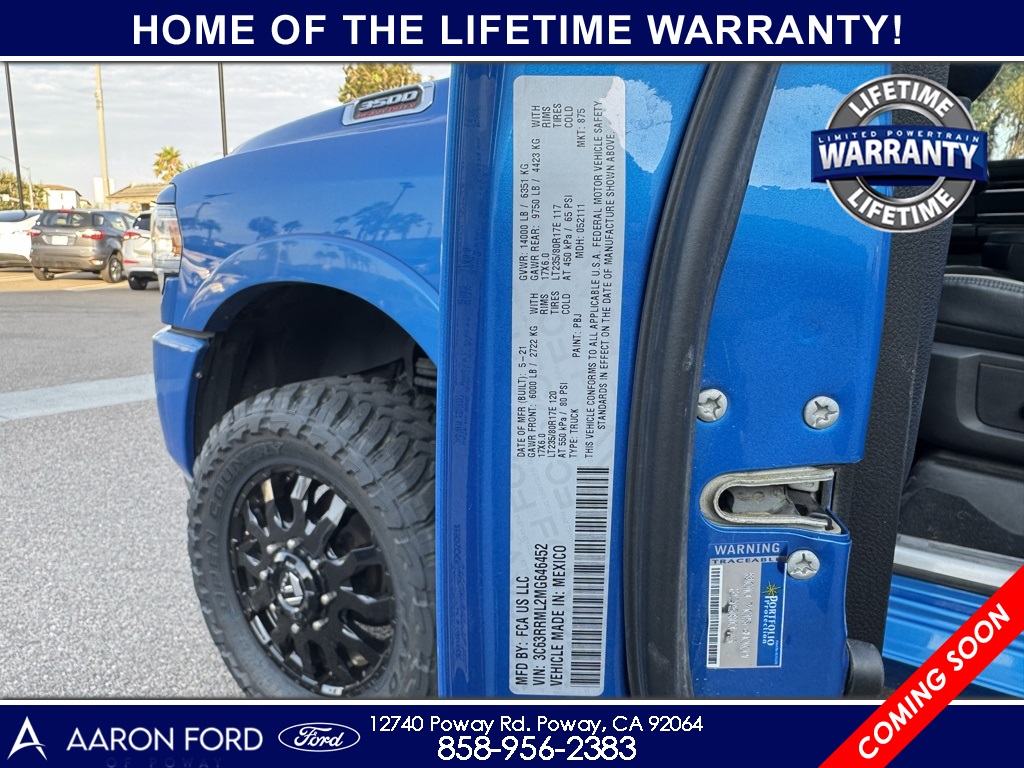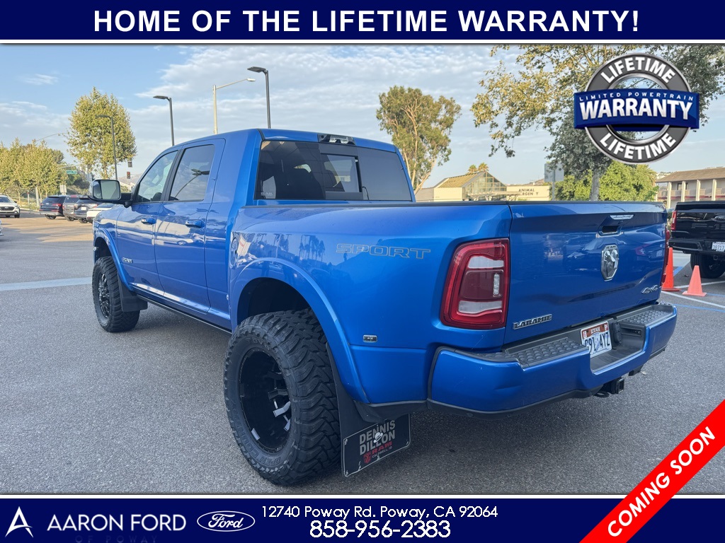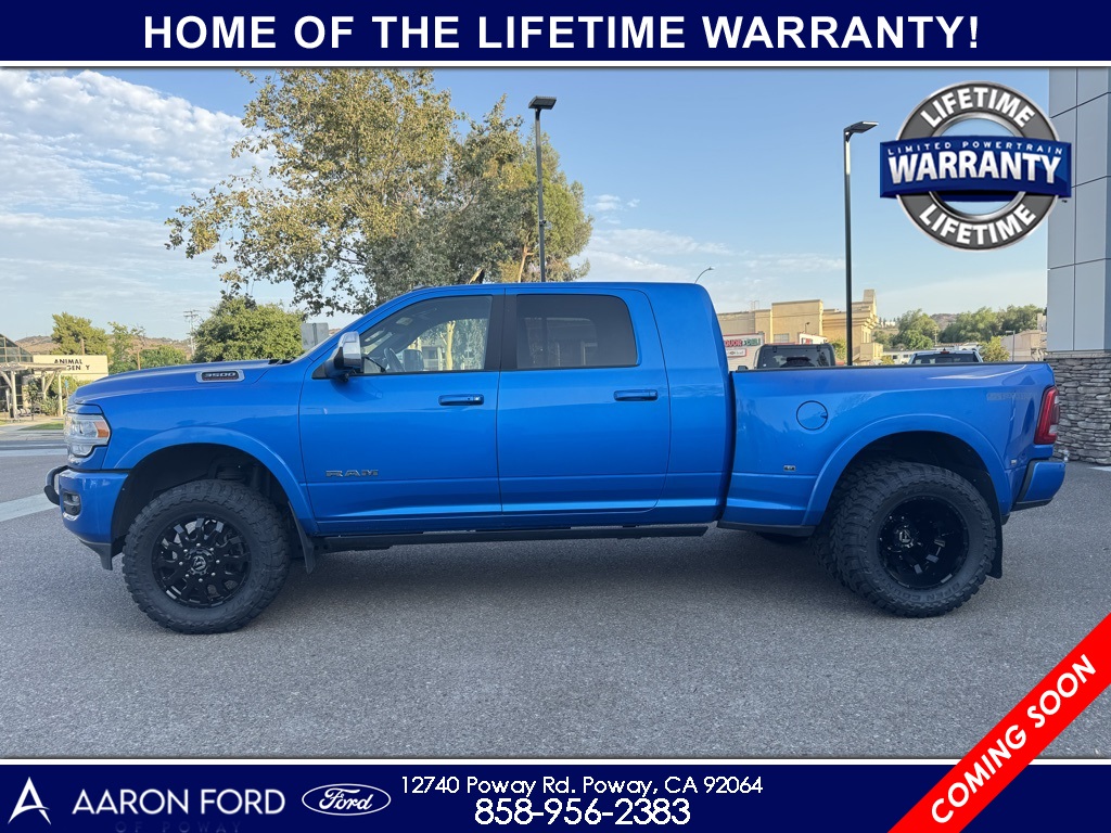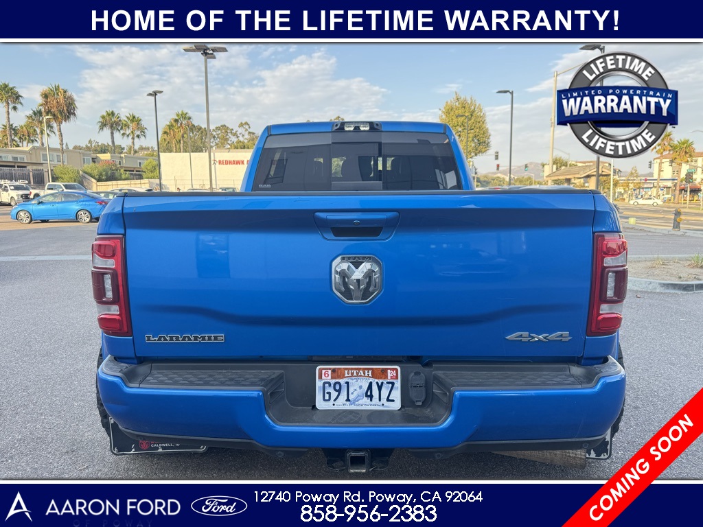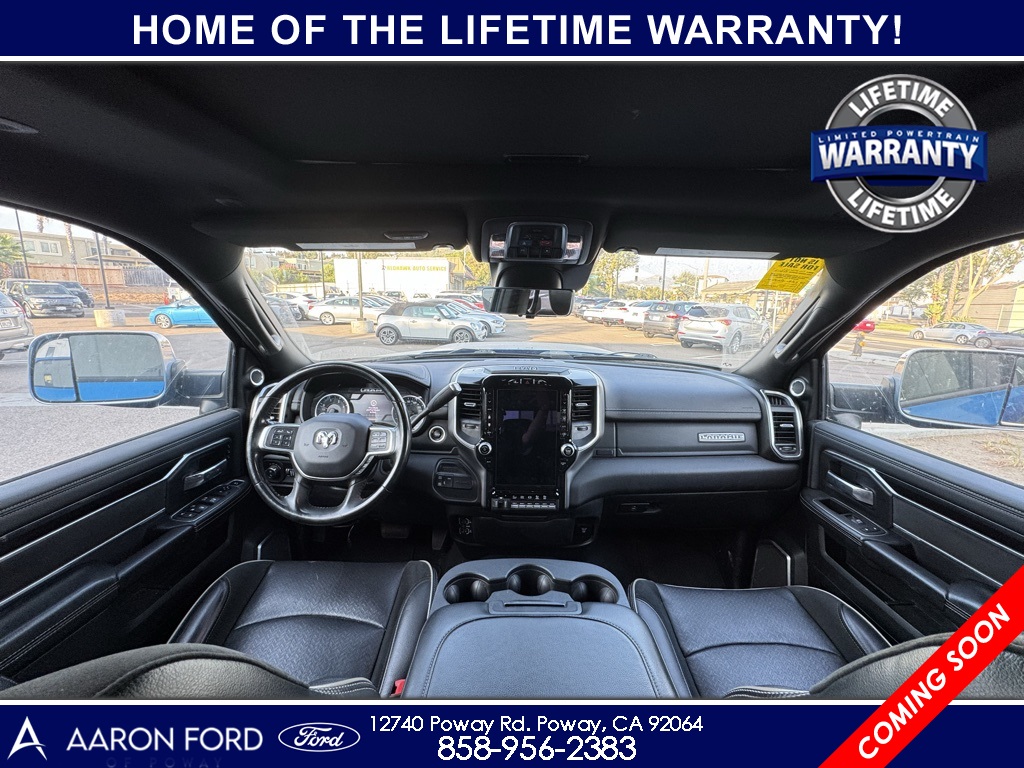 1-Year SiriusXM Guardian Trial, 17 Speaker harman kardon Premium Sound, 4G LTE Wi-Fi Hot Spot, 5-Year SiriusXM Traffic Service, 5-Year SiriusXM Travel Link Service, 5th Wheel/Gooseneck Towing Prep Group, 8.4" Touchscreen Display, Adaptive Cruise Control w/Stop, Adaptive Steering System, Air Conditioning, Air Suspension Decal, Apple CarPlay, Auto High Beam Headlamp Control, Auto Level Rear Air Suspension, Black Interior Accents, Body Color Door Handles, Body Color Grille Surround, Brake assist, CTR Stop Lamp w/Cargo View Camera, Digital Rearview Mirror, Disassociated Touchscreen Display, Electronic Stability Control, Exterior Mirrors w/Memory, Foam Bottle Insert (Door Trim Panel), For Details Visit DriveUconnect.com, Full Speed Forward Collision Warning Plus, Fully automatic headlights, Google Android Auto, GPS Antenna Input, GPS Navigation, HD Radio, Heated Second Row Seats, Integrated Center Stack Radio, Integrated Voice Command w/Bluetooth, Lane Keep Assist, Laramie Level B Equipment Group, Mirror-Mounted Aux Reverse Lamps, Off-Road Information Pages, Painted Front Bumper, Painted Rear Bumper, ParkView Rear Back-Up Camera, Power Adjustable Convex Aux Mirrors, Power Adjustable Pedals w/Memory, Power Chrome Tow Mirrors w/Convex Spotter & Memory, Power Sunroof, Quick Order Package 21H Laramie, Radio: Uconnect 4C Nav w/8.4" Display, Radio/Driver Seat/Mirrors/Pedals Memory, Rain Sensitive Windshield Wipers, Remote Tailgate Release, Safety Group B, Selectable Tire Fill Alert, SiriusXM Satellite Radio, SiriusXM Traffic Plus, SiriusXM Travel Link, Sport Appearance Package, Sport Decal, Surround View Camera System, Towing Technology Group B, Trailer Reverse Guidance, Ventilated Front Seats.Odometer is 12733 miles below market average!To see more quality vehicles like this one right just click on AaronFordofPoway.com or dial (858) 748-1400.Awards: * JD Power Initial Quality Study (IQS)