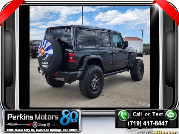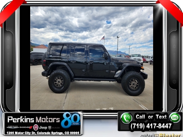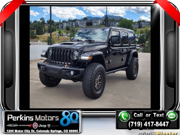Black Clearcoat 4WD SRT HEMI 6.4L V8 MDS 8-Speed Automatic<br><br>7 & 4 Pin Wiring Harness, 9 Speakers, Automatic temperature control, Body Color 3-Piece Hard Top, Class II Receiver Hitch, Freedom Panel Storage Bag, No Soft Top, Power Top Quarter Window Storage Bag, Quick Order Package 27X, Radio: Uconnect 4C Nav w/8.4 Display, Rear Window Defroster, Rear Window Wiper/Washer, Removable Rear Quarter Windows, Sky 1-Touch Power Top, Trailer Tow Package.<br><br>Certified. FCA US LLC Certified Pre-Owned Details:<br><br> * Warranty Deductible: $100<br> * Transferable Warranty<br> * Powertrain Limited Warranty: 84 Month/100,000 Mile (whichever comes first) from original in-service date<br> * Roadside Assistance<br> * 125 Point Inspection<br> * Limited Warranty: 3 Month/3,000 Mile (whichever comes first) after new car warranty expires or from certified purchase date<br> * Includes First Day Rental, Car Rental Allowance, and Trip Interruption Benefits. SiriusXM 3 month trial subscription<br> * Vehicle History<br><br><br>Clean CARFAX.<br><br>Check us out at www.perkinsmotors.com to see our specials! Since opening our doors in 1944, we’ve been proud to serve Colorado Springs, CO, and the surrounding areas of Pueblo, Castle Rock and Denver, CO. Throughout this time of being family owned for 80 years, we’ve maintained a firm commitment to our customers: to offer a wide selection of New Chrysler, Dodge, Fiat, Jeep, and Ram vehicles and quality pre-owned vehicles, and provide a quick, no-hassle car-buying process that ensures everyone drives off the lot satisfied with their purchase.<br><br><br>Quick Order Package 27X, Trailer Tow Package (7 & 4 Pin Wiring Harness and Class II Receiver Hitch), FCA US LLC Certified Pre-Owned Certified, 9 Speakers, Automatic temperature control, Body Color 3-Piece Hard Top, Freedom Panel Storage Bag, No Soft Top, Power Top Quarter Window Storage Bag, Radio: Uconnect 4C Nav w/8.4 Display, Rear Window Defroster, Rear Window Wiper/Washer, Removable Rear Quarter Windows, Sky 1-Touch Power Top, 3.73 Rear Axle Ratio, 4-Wheel Disc Brakes, ABS brakes, Air Conditioning, Alloy wheels, AM/FM radio: SiriusXM, Apple CarPlay/Android Auto, Auto High-beam Headlights, Auto-dimming Rear-View mirror, Brake assist, Compass, Cruise Control, Delay-off headlights, Driver door bin, Driver vanity mirror, Dual front impact airbags, Dual front side impact airbags, Electronic Stability Control, Emergency communication system: SiriusXM Guardian, Front anti-roll bar, Front Bucket Seats, Front Center Armrest w/Storage, Front dual zone A/C, Front fog lights, Front reading lights, Fully automatic headlights, Garage door transmitter, Glass rear window, Heated door mirrors, Heated front seats, Heated steering wheel, Illuminated entry, Integrated roll-over protection, Leather Shift Knob, Leather steering wheel, Leather Trimmed Bucket Seats, Low tire pressure warning, Navigation System, Occupant sensing airbag, Outside temperature display, Panic alarm, ParkView Rear Back-Up Camera, Passenger door bin, Passenger vanity mirror, Power door mirrors, Power steering, Power windows, Radio data system, Rear anti-roll bar, Rear reading lights, Rear seat center armrest, Rear window defroster, Rear window wiper, Remote keyless entry, Rubicon 392 Suspension, Security system, Split folding rear seat, Steering wheel mounted audio controls, Tachometer, Telescoping steering wheel, Tilt steering wheel, Traction control, Trip computer, Variably intermittent wipers, Voltmeter, and Wheels: 17 x 7.5 Beadlock Capable.