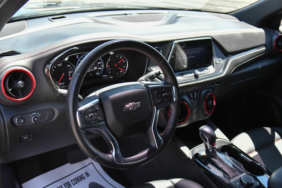 Only 19,888 Miles! Delivers 27 Highway MPG and 19 City MPG! This Chevrolet Blazer boasts a Gas V6 3.6L/ engine powering this Automatic transmission. WHEELS, 20 (50.8 CM) DARK ANDROID MACHINED-FACE ALUMINUM (STD), TRANSMISSION, 9-SPEED AUTOMATIC, ELECTRONICALLY-CONTROLLED with overdrive, includes Driver Shift Control (STD), TRAILERING EQUIPMENT includes (V08) heavy-duty cooling system and (CTT) Hitch Guidance Also includes (PZ8) Hitch View and (V08) heavy-duty cooling.).*This Chevrolet Blazer Comes Equipped with These Options *LICENSE PLATE FRONT MOUNTING PACKAGE (will be forced on orders with ship-to states that require a front license plate) , TIRES, P235/55R20 ALL-SEASON BLACKWALL (STD), SEATS, FRONT BUCKETS (STD), RS PREFERRED EQUIPMENT GROUP Includes Standard Equipment, NOT EQUIPPED WITH REAR PARK ASSIST see dealer for details (Vehicles built prior to December 20, 2021, include Rear Park Assist. Certain vehicles built on or after December 20, 2021, will be forced to include (00Y) Not Equipped with Rear Park Assist, which removes Rear Park Assist. See the window label for the features on a specific vehicle.), LPO, WHEEL LOCKS, BRIGHT includes 4 locks and 1 key, JET BLACK, PERFORATED LEATHER-APPOINTED SEAT TRIM, HITCH GUIDANCE WITH HITCH VIEW, HITCH GUIDANCE, ENGINE, 3.6L V6, SIDI, DOHC WITH VARIABLE VALVE TIMING (VVT) and Active Fuel Management with Stop/Start (308 hp [229 kW] @ 6600 rpm, 270 lb-ft of torque [366 N-m] @ 5000 rpm) (STD).