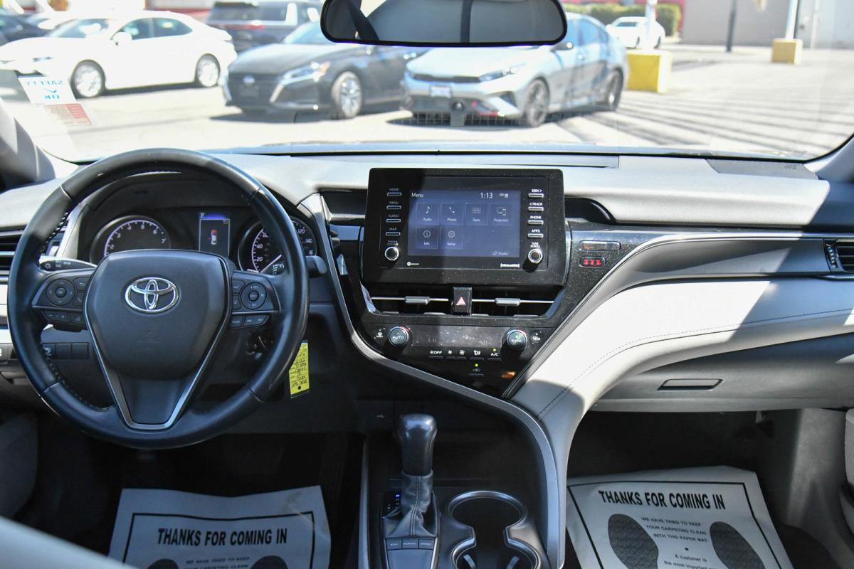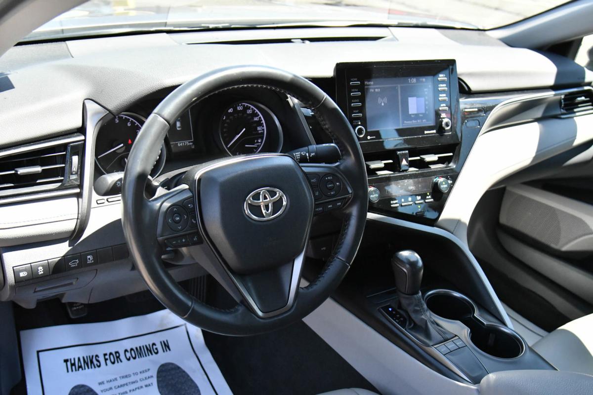 Delivers 39 Highway MPG and 28 City MPG! This Toyota Camry delivers a Regular Unleaded I-4 2.5 L/152 engine powering this Automatic transmission. Variable Intermittent Wipers, Urethane Gear Shifter Material, Trunk Rear Cargo Access.*This Toyota Camry Comes Equipped with These Options *Trip Computer, Transmission: 8-Speed Direct Shift ECT-i Automatic -inc: sequential shift mode and paddle shifters, Toyota Safety Sense (TSS) 2.5+, Tires: 235/45R18 AS, Tire Pressure Monitor System (TPMS) Tire Specific Low Tire Pressure Warning, Strut Front Suspension w/Coil Springs, Steel Spare Wheel, Single Stainless Steel Exhaust w/Polished Tailpipe Finisher, Side Impact Beams, Seats w/Leatherette Back Material.