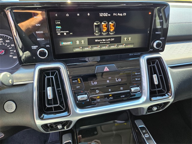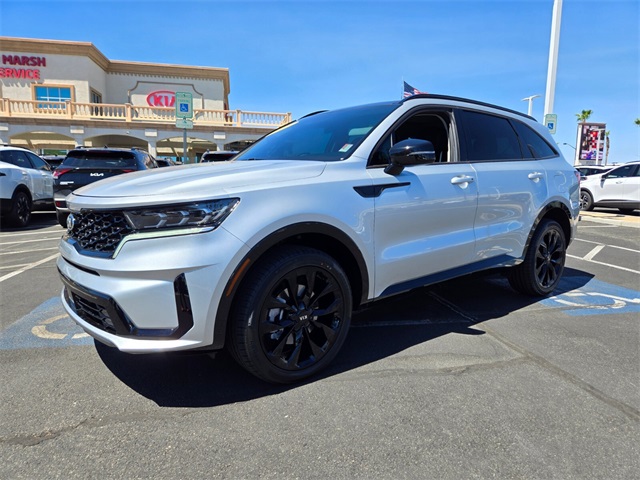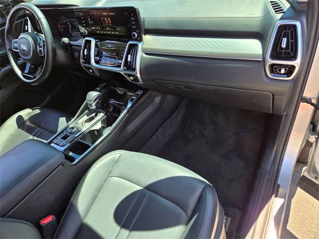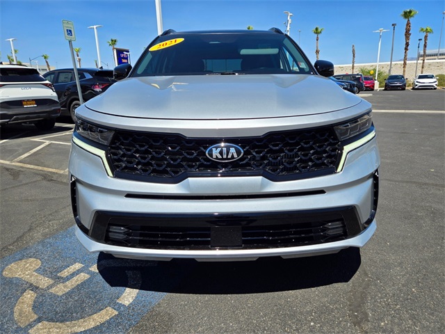 Priced below KBB Fair Purchase Price!Odometer is 20019 miles below market average!21/28 City/Highway MPGSparkling Silver 2021 Kia Sorento SX AWD 8-Speed DCT 2.5L I4 DGI Turbocharged DOHC 16V LEV3-ULEV70 281hp AWD.If you don't drive here, you can't save here!Price may not include recon fee. AWD, 3.316 Axle Ratio, 3rd row seats: split-bench, 4-Wheel Disc Brakes, ABS brakes, Air Conditioning, Alloy wheels, AM/FM radio: SiriusXM, Apple CarPlay & Android Auto, Auto High-beam Headlights, Automatic temperature control, Brake assist, Bumpers: body-color, Carpeted Floor Mats, Delay-off headlights, Driver door bin, Driver vanity mirror, Dual front impact airbags, Dual front side impact airbags, Electronic Stability Control, Emergency communication system: UVO link, Four wheel independent suspension, Front anti-roll bar, Front Bucket Seats, Front Center Armrest, Front dual zone A/C, Front fog lights, Front reading lights, Fully automatic headlights, Heated door mirrors, Heated front seats, Illuminated entry, Knee airbag, Leather steering wheel, Low tire pressure warning, Navigation System, Occupant sensing airbag, Outside temperature display, Overhead airbag, Overhead console, Panic alarm, Passenger door bin, Passenger vanity mirror, Power door mirrors, Power driver seat, Power Liftgate, Power moonroof, Power passenger seat, Power steering, Power windows, Radio data system, Rear air conditioning, Rear anti-roll bar, Rear reading lights, Rear window defroster, Rear window wiper, Remote keyless entry, Security system, Smart Key w/ Push Button and Remote Start, Speed control, Speed-sensing steering, Split folding rear seat, Spoiler, Steering wheel mounted audio controls, Tachometer, Telescoping steering wheel, Tilt steering wheel, Traction control, Trip computer, Turn signal indicator mirrors, and Variably intermittent wipers.