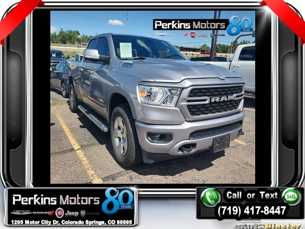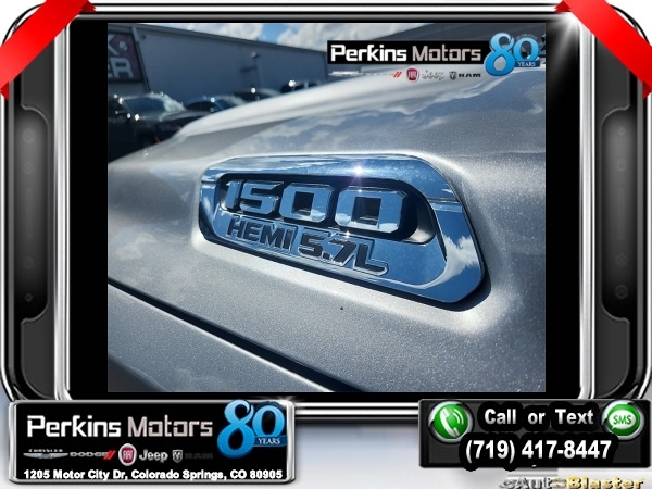Billet Silver Metallic Clearcoat 4WD HEMI 5.7L V8 Multi Displacement VVT 8-Speed Automatic<br><br>3.92 Rear Axle Ratio, 4G LTE Wi-Fi Hot Spot, 8.4 Touchscreen Display, All Plant-Installed Decals, Apple CarPlay, Auto-Dimming Exterior Driver Mirror, Auto-Dimming Rear-View Mirror, Big Horn Badge, Big Horn Level 1 Equipment Group, Black Exterior Mirrors, Black Interior Accents, Black Premium Power Mirrors, Bluetooth Handsfree Phone & Audio, Body Color Exterior Mirrors, Body Color Front Bumper, Body Color Premium Power Mirrors, Body Color Rear Bumper w/Step Pads, Bridgestone Brand Tires, Class IV Receiver Hitch, Connectivity - US/Canada, Convex Wide-Angle Mirror Insert, Deluxe Cloth Bucket Seats, Exterior Mirrors Courtesy Lamps, Exterior Mirrors w/Heating Element, Exterior Mirrors w/Supplemental Signals, For Details, Visit DriveUconnect.com, For More Info, Call 800-643-2112, Global Telematics Box Module (TBM), Glove Box Lamp, Google Android Auto, GPS Antenna Input, Grille Surround 1 Body Color Texture 2 Black, Integrated Center Stack Radio, Power 2-Way Driver Lumbar Adjust, Power 8-Way Driver Seat, Power Adjustable Pedals, Power-Folding Mirrors, Protection Group, Quick Order Package 25Z Big Horn, Radio: Uconnect 5 W w/8.4 Display, Rear Dome w/On/Off Switch Lamp, Rear Power Sliding Window, Rear Window Defroster, SiriusXM Radio Service, SiriusXM Satellite Radio, Sport Appearance Package, Sport Appearance Package (DISC), Sport Decal, Sun Visors w/Illuminated Vanity Mirrors, Tow Hooks, Universal Garage Door Opener, USB Host Flip.<br><br>Certified. FCA US LLC Certified Pre-Owned Details:<br><br> * Transferable Warranty<br> * Includes First Day Rental, Car Rental Allowance, and Trip Interruption Benefits. SiriusXM 3 month trial subscription.<br> * Warranty Deductible: $100<br> * Vehicle History<br> * Roadside Assistance<br> * Powertrain Limited Warranty: 84 Month/100,000 Mile (whichever comes first) from original in-service date<br> * 125 Point Inspection<br> * Limited Warranty: 3 Month/3,000 Mile (whichever comes first) after new car warranty expires or from certified purchase date<br><br><br>CARFAX One-Owner. Clean CARFAX.<br><br>Check us out at www.perkinsmotors.com to see our specials! Since opening our doors in 1944, we’ve been proud to serve Colorado Springs, CO, and the surrounding areas of Pueblo, Castle Rock and Denver, CO. Throughout this time of being family owned for 80 years, we’ve maintained a firm commitment to our customers: to offer a wide selection of New Chrysler, Dodge, Fiat, Jeep, and Ram vehicles and quality pre-owned vehicles, and provide a quick, no-hassle car-buying process that ensures everyone drives off the lot satisfied with their purchase.<br><br><br>Big Horn Level 1 Equipment Group (4G LTE Wi-Fi Hot Spot, 8.4 Touchscreen Display, Apple CarPlay, Auto-Dimming Exterior Driver Mirror, Auto-Dimming Rear-View Mirror, Black Exterior Mirrors, Black Premium Power Mirrors, Bluetooth Handsfree Phone & Audio, Class IV Receiver Hitch, Connectivity - US/Canada, Convex Wide-Angle Mirror Insert, Exterior Mirrors Courtesy Lamps, Exterior Mirrors w/Heating Element, Exterior Mirrors w/Supplemental Signals, For Details, Visit DriveUconnect.com, For More Info, Call 800-643-2112, Global Telematics Box Module (TBM), Glove Box Lamp, Google Android Auto, GPS Antenna Input, Integrated Center Stack Radio, Power 2-Way Driver Lumbar Adjust, Power 8-Way Driver Seat, Power Adjustable Pedals, Power-Folding Mirrors, Radio: Uconnect 5 W w/8.4 Display, Rear Dome w/On/Off Switch Lamp, Rear Power Sliding Window, Rear Window Defroster, SiriusXM Radio Service, SiriusXM Satellite Radio, Sun Visors w/Illuminated Vanity Mirrors, Universal Garage Door Opener, and USB Host Flip), Protection Group (Tow Hooks), Quick Order Package 25Z Big Horn (Big Horn Badge), Sport Appearance Package (All Plant-Installed Decals, Black Interior Accents, Body Color Exterior Mirrors, Body Color Front Bumper, Body Color Premium Power Mirrors, Body Color R