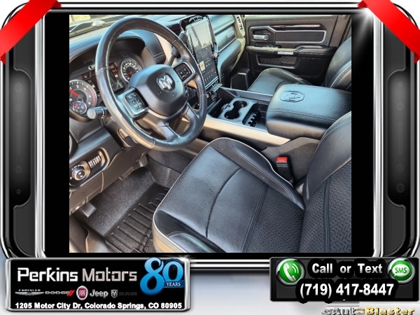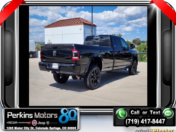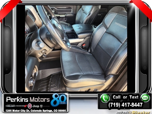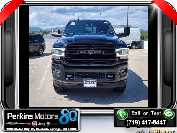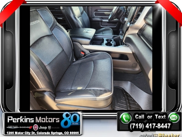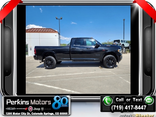 Diamond Black Crystal Pearlcoat 4WD I6 Aisin 6-Speed Automatic<br><br>1-Year SiriusXM Guardian Trial, 17 Speaker High Performance Audio, 2nd Row In Floor Storage Bins, 5-Year SiriusXM Traffic Service, 5-Year SiriusXM Travel Link Service, Auto High Beam Headlamp Control, Black Appearance Package, Black Exterior Mirrors, Black Exterior Truck Badging, Black Headlamp Bezels, Black Interior Accents, Black Ram Head Tailgate Badge, Black Tail Lamp Bezels, Blind Spot & Cross Path Detection, Body Color Door Handles, Body Color Grille Surround, CTR Stop Lamp w/Cargo View Camera, Disassociated Touchscreen Display, Exterior Mirrors w/Memory, Foam Bottle Insert (Door Trim Panel), For Details Visit DriveUconnect.com, Gloss Black Grille Billets/Accents, GPS Navigation, HD Radio, Heated Second Row Seats, Laramie Level 2 Equipment Group, Media Hub w/2 Charge Only USBs, Mirror-Mounted Aux Reverse Lamps, Painted Front Bumper, Painted Rear Bumper, Power Adjustable Convex Aux Mirrors, Power Adjustable Pedals w/Memory, Power Black Tow Mirrors w/Convex Spotter & Memory, Power Chrome Tow Mirrors w/Convex Spotter & Memory, Power Sunroof, Quick Order Package 21H Laramie, Radio: Uconnect 4C Nav w/8.4 Display, Radio/Driver Seat/Mirrors/Pedals Memory, Rain Sensitive Windshield Wipers, Ramcharger Wireless Charging Pad, Remote Tailgate Release, Single Disc Remote CD Player, SiriusXM Traffic Plus, SiriusXM Travel Link, Surround View Camera System, Towing Technology Group, Trailer Reverse Guidance, Ventilated Front Seats, Wheels: 20 x 8.0 Black Painted Aluminum.<br><br>Certified. FCA US LLC Certified Pre-Owned Details:<br><br> * 125 Point Inspection<br> * Transferable Warranty<br> * Includes First Day Rental, Car Rental Allowance, and Trip Interruption Benefits. SiriusXM 3 month trial subscription.<br> * Vehicle History<br> * Warranty Deductible: $100<br> * Roadside Assistance<br> * Powertrain Limited Warranty: 84 Month/100,000 Mile (whichever comes first) from original in-service date<br> * Limited Warranty: 3 Month/3,000 Mile (whichever comes first) after new car warranty expires or from certified purchase date<br><br><br>CARFAX One-Owner. Clean CARFAX.<br><br>Check us out at www.perkinsmotors.com to see our specials! Since opening our doors in 1944, we’ve been proud to serve Colorado Springs, CO, and the surrounding areas of Pueblo, Castle Rock and Denver, CO. Throughout this time of being family owned for 80 years, we’ve maintained a firm commitment to our customers: to offer a wide selection of New Chrysler, Dodge, Fiat, Jeep, and Ram vehicles and quality pre-owned vehicles, and provide a quick, no-hassle car-buying process that ensures everyone drives off the lot satisfied with their purchase.<br><br><br>Black Appearance Package (Black Exterior Mirrors, Black Exterior Truck Badging, Black Headlamp Bezels, Black Interior Accents, Black Ram Head Tailgate Badge, Black Tail Lamp Bezels, Body Color Door Handles, Body Color Grille Surround, Exterior Mirrors w/Memory, Gloss Black Grille Billets/Accents, Mirror-Mounted Aux Reverse Lamps, Painted Front Bumper, Painted Rear Bumper, Power Adjustable Convex Aux Mirrors, Power Black Tow Mirrors w/Convex Spotter & Memory, Wheels: 20 x 8.0 Black Painted Aluminum, and Black Wheel Center Hub), Laramie Level 2 Equipment Group (1-Year SiriusXM Guardian Trial, 17 Speaker High Performance Audio, 2nd Row In Floor Storage Bins, 5-Year SiriusXM Traffic Service, 5-Year SiriusXM Travel Link Service, Auto High Beam Headlamp Control, Blind Spot & Cross Path Detection, Disassociated Touchscreen Display, Foam Bottle Insert (Door Trim Panel), For Details Visit DriveUconnect.com, GPS Navigation, HD Radio, Heated Second Row Seats, Media Hub w/2 Charge Only USBs, Power Adjustable Pedals w/Memory, Power Chrome Tow Mirrors w/Convex Spotter & Memory, Radio: Uconnect 4C Nav w/8.4 Display, Radio/Driver Seat/Mirrors/Pedals Memory, Rain Sensitive Windshield Wipers, Ramcharger Wireless Charging Pad, Remote Tailgate Release, Si