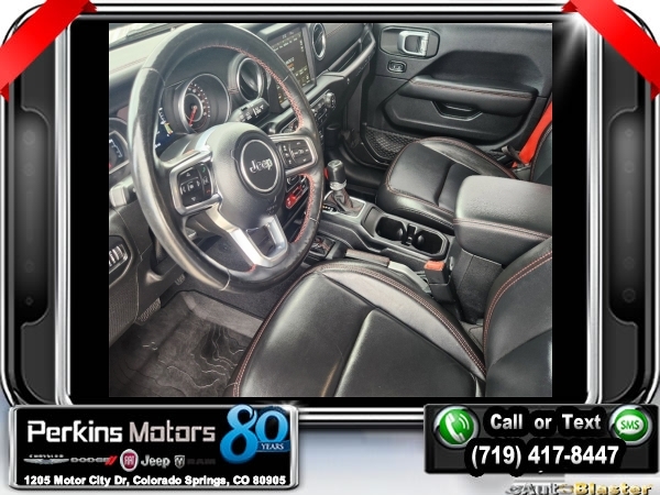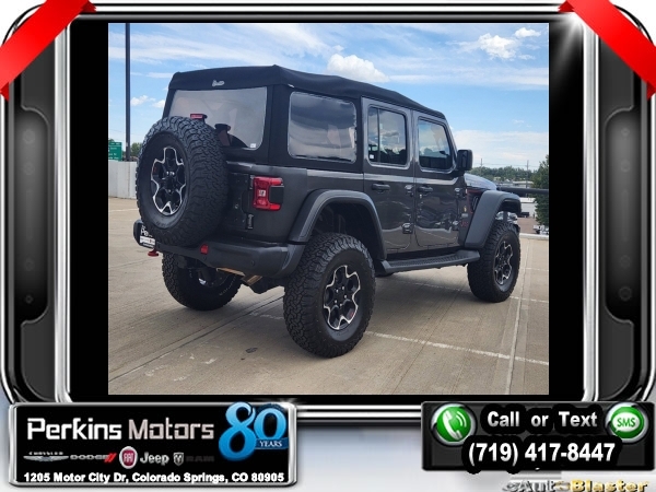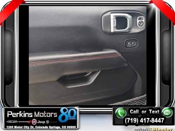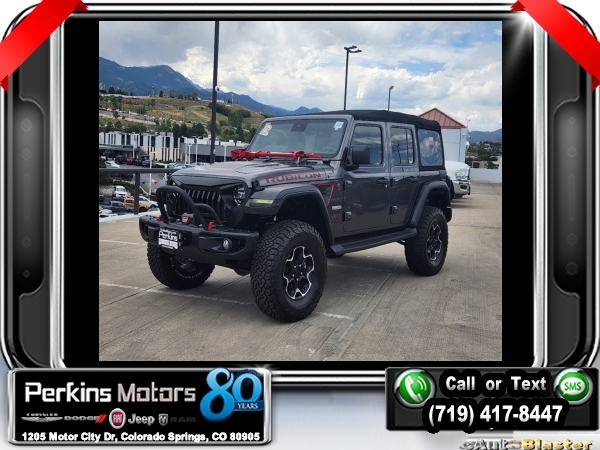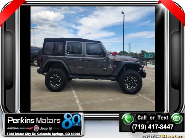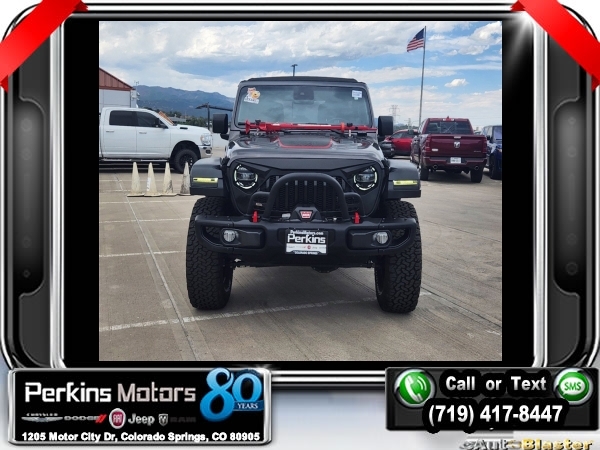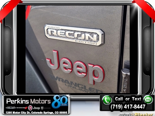 Granite Crystal Metallic Clearcoat 4WD 2.0L I4 DOHC 8-Speed Automatic<br><br>1-Year SiriusXM Guardian Trial, 240 Amp Alternator, 4.10 Rear Axle Ratio, 4G LTE Wi-Fi Hot Spot, 5-Year SiriusXM Traffic Service, 5-Year SiriusXM Travel Link Service, 7 & 4 Pin Wiring Harness, 700 Amp Maintenance Free Battery, 8.4 Radio & Premium Audio Group, 8.4 Touchscreen Display, Advanced Brake Assist, Advanced Safety Group, Alpine Premium Audio System, Auto-Dimming Rear-View Mirror, Auxiliary Switches, Black/Body Color Grille, Blind Spot & Cross Path Detection, Class II Receiver Hitch, Cold Weather Group, Emergency/Assistance Call, For Details, Visit DriveUconnect.com, Full Speed Forward Collision Warning Plus, GPS Navigation, HD Radio, Heated Front Seats, Heated Steering Wheel, Jeep Trail Rated Kit, LED Lighting Group, LED Taillamps, MOPAR Bumper Hoop, MOPAR Hinge-Gate Reinforcement, ParkSense Rear Park Assist System, Quick Order Package 28Y Recon, Radio: Uconnect 4C Nav w/8.4 Display, Recon Badge, Recon Decals, Recon Package, Red Seat Belts, Safety Group, SiriusXM Traffic Plus, SiriusXM Travel Link, Steel Bumper Group, Trailer Tow & HD Electrical Group, Wheels: 17 x 7.5 Machined/Painted Black, Wrapped I/P Bezels w/Red Stitch.<br><br><br>Clean CARFAX.<br><br>Check us out at www.perkinsmotors.com to see our specials! Since opening our doors in 1944, we’ve been proud to serve Colorado Springs, CO, and the surrounding areas of Pueblo, Castle Rock and Denver, CO. Throughout this time of being family owned for 80 years, we’ve maintained a firm commitment to our customers: to offer a wide selection of New Chrysler, Dodge, Fiat, Jeep, and Ram vehicles and quality pre-owned vehicles, and provide a quick, no-hassle car-buying process that ensures everyone drives off the lot satisfied with their purchase.<br><br><br>8.4 Radio & Premium Audio Group (1-Year SiriusXM Guardian Trial, 4G LTE Wi-Fi Hot Spot, 5-Year SiriusXM Traffic Service, 5-Year SiriusXM Travel Link Service, 8.4 Touchscreen Display, Alpine Premium Audio System, Auto-Dimming Rear-View Mirror, Emergency/Assistance Call, For Details, Visit DriveUconnect.com, GPS Navigation, HD Radio, Radio: Uconnect 4C Nav w/8.4 Display, SiriusXM Traffic Plus, and SiriusXM Travel Link), Advanced Safety Group (Advanced Brake Assist and Full Speed Forward Collision Warning Plus), Cold Weather Group (Heated Front Seats and Heated Steering Wheel), LED Lighting Group (LED Taillamps, Daytime Running Lamps LED Accents, Front LED Fog Lamps, and LED Reflector Headlamps), Quick Order Package 28Y Recon (Black/Body Color Grille, Jeep Trail Rated Kit, MOPAR Bumper Hoop, MOPAR Hinge-Gate Reinforcement, Recon Badge, Recon Decals, Red Seat Belts, Wheels: 17 x 7.5 Machined/Painted Black, and Wrapped I/P Bezels w/Red Stitch), Recon Package, Safety Group (Blind Spot & Cross Path Detection and ParkSense Rear Park Assist System), Steel Bumper Group (Steel Front Bumper and Steel Rear Bumper), Trailer Tow & HD Electrical Group (240 Amp Alternator, 7 & 4 Pin Wiring Harness, 700 Amp Maintenance Free Battery, Auxiliary Switches, and Class II Receiver Hitch), 4.10 Rear Axle Ratio, 4-Wheel Disc Brakes, 8 Speakers, ABS brakes, Air Conditioning, Alloy wheels, AM/FM radio: SiriusXM, Apple CarPlay/Android Auto, Automatic temperature control, Aux Battery, BF Goodrich Brand Tires, Black 3-Piece Hard Top, Brake assist, Compass, Cruise Control, Delay-off headlights, Driver door bin, Driver vanity mirror, Dual front impact airbags, Dual front side impact airbags, Electronic Stability Control, Freedom Panel Storage Bag, Front anti-roll bar, Front Bucket Seats, Front Center Armrest w/Storage, Front dual zone A/C, Front fog lights, Front License Plate Bracket, Front reading lights, Fully automatic headlights, Garage door transmitter, Heated door mirrors, Illuminated entry, Integrated roll-over protection, Leather steering wheel, Low tire pressure warning, MOPAR All-Weather Floor Mats (DISC), MOPAR Hardtop Headliner, No Soft Top, Non-Lock